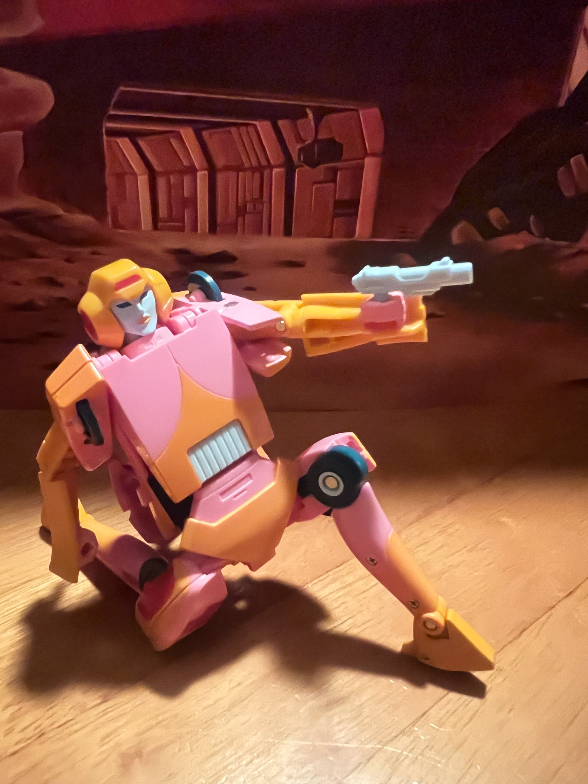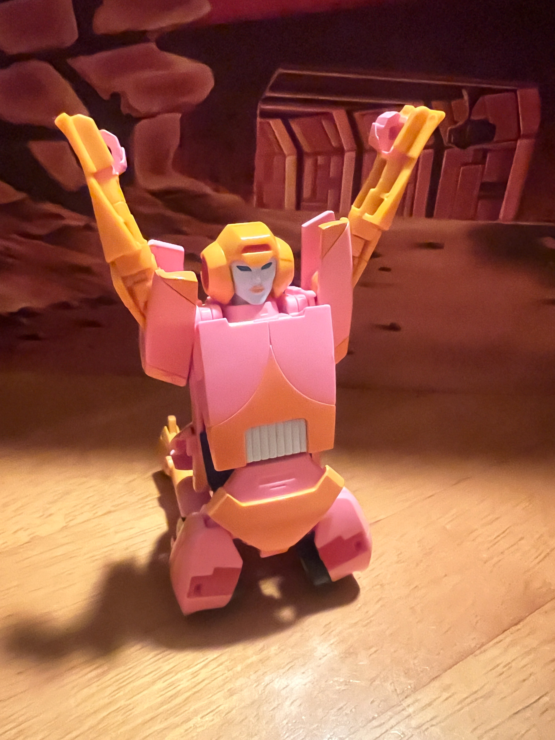 Natuurlijk wil ik graag een G1 Optimus Prime, Bumblebee, Sunstreaker of Ultra Magnus met extra gewrichten, maar de prijzen van Takara hielden mij tot nu toe tegen om Missinglink figuren te kopen. Wat mij eindelijk over de brug hielp was een figuur die nooit eerder is uitgebracht: Missinglink Arcee, letterlijk een missende schakel.