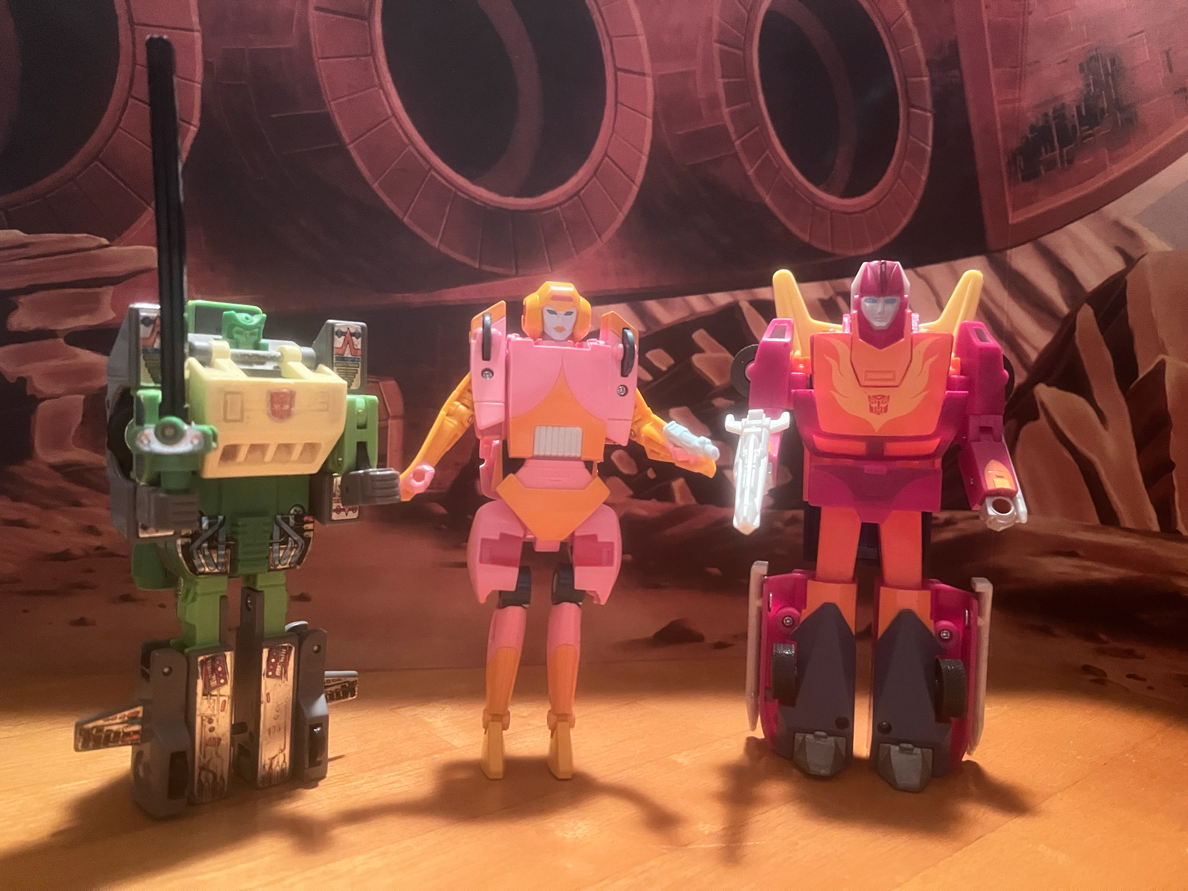 Tijd voor wat groepsfoto's en men weet Arcee heeft heel veel vrienden, net als Smurfin. Detail bij springer hangt altijd zijn propellor zwaard naar beneden, naast Arcee bleef hij opeens omhoog staan.
