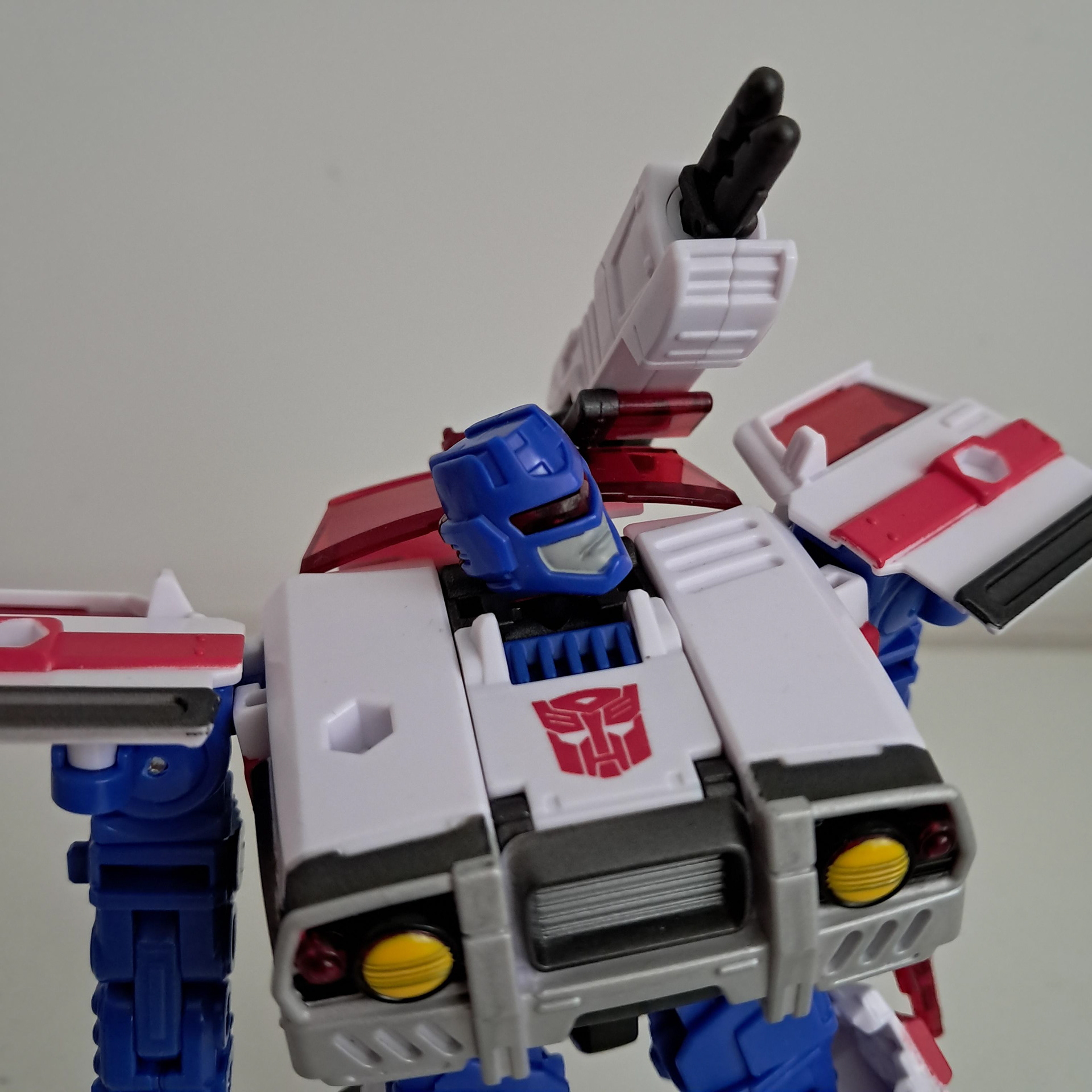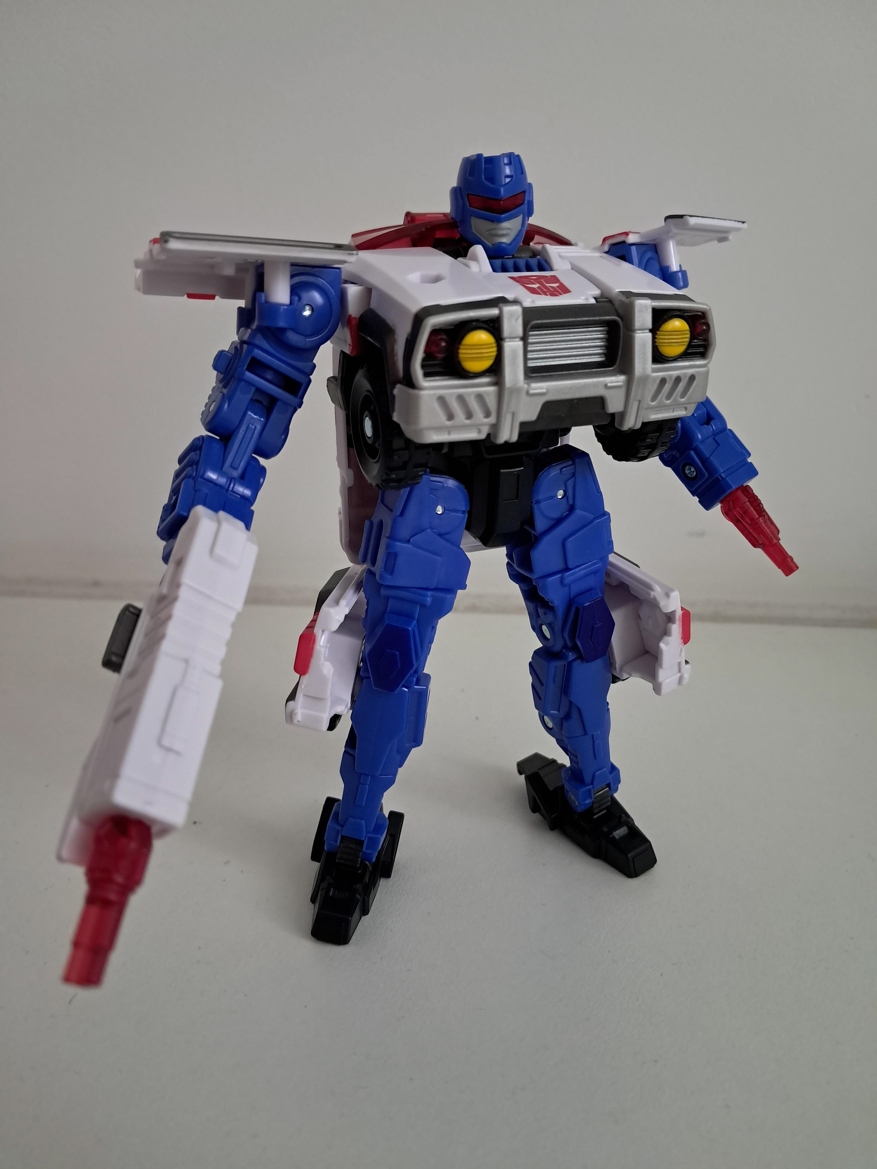 Red Alert komt met een aantal frutstukjes aan die het in ieder geval proberen. Verschillende lopen voor zijn gun, zodat je kan kiezen voor animatie of toy accuraat, die elders in zijn lichaam weg kan proppen. De gun vormt zo een beetje het hoogtepunt van het figuur, die tenminste bevredigend naar voren kan klappen en een flinke handgun kan vormen. Maar het zou al een stuk fijner zijn als zijn grill kon openklappen. Er hoeft geen pizza uit te komen, maar het zou gewoon leuk zijn.