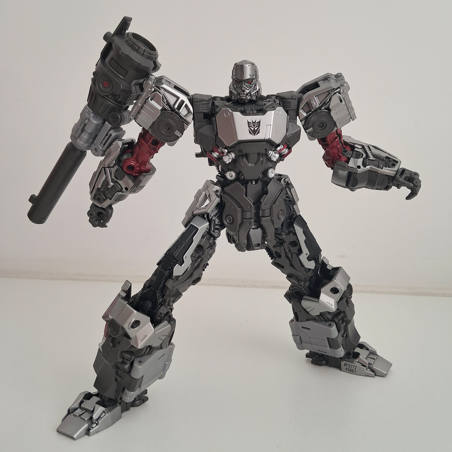 Op eerste gezicht lijkt deze Megatron heel veel goed te maken. De schouders, de borstkas, de emmer op het hoofd, de laarzen en natuurlijk het welbekende Fusion Kanon. Alle klassieke elementen zijn er. Er zit veel premium zilveren verf op, met een pietsie aan rode accenten en eens een keer een duidelijk Decepticon symbool, wat je van de andere Studio Series Megatrons niet kan zeggen.