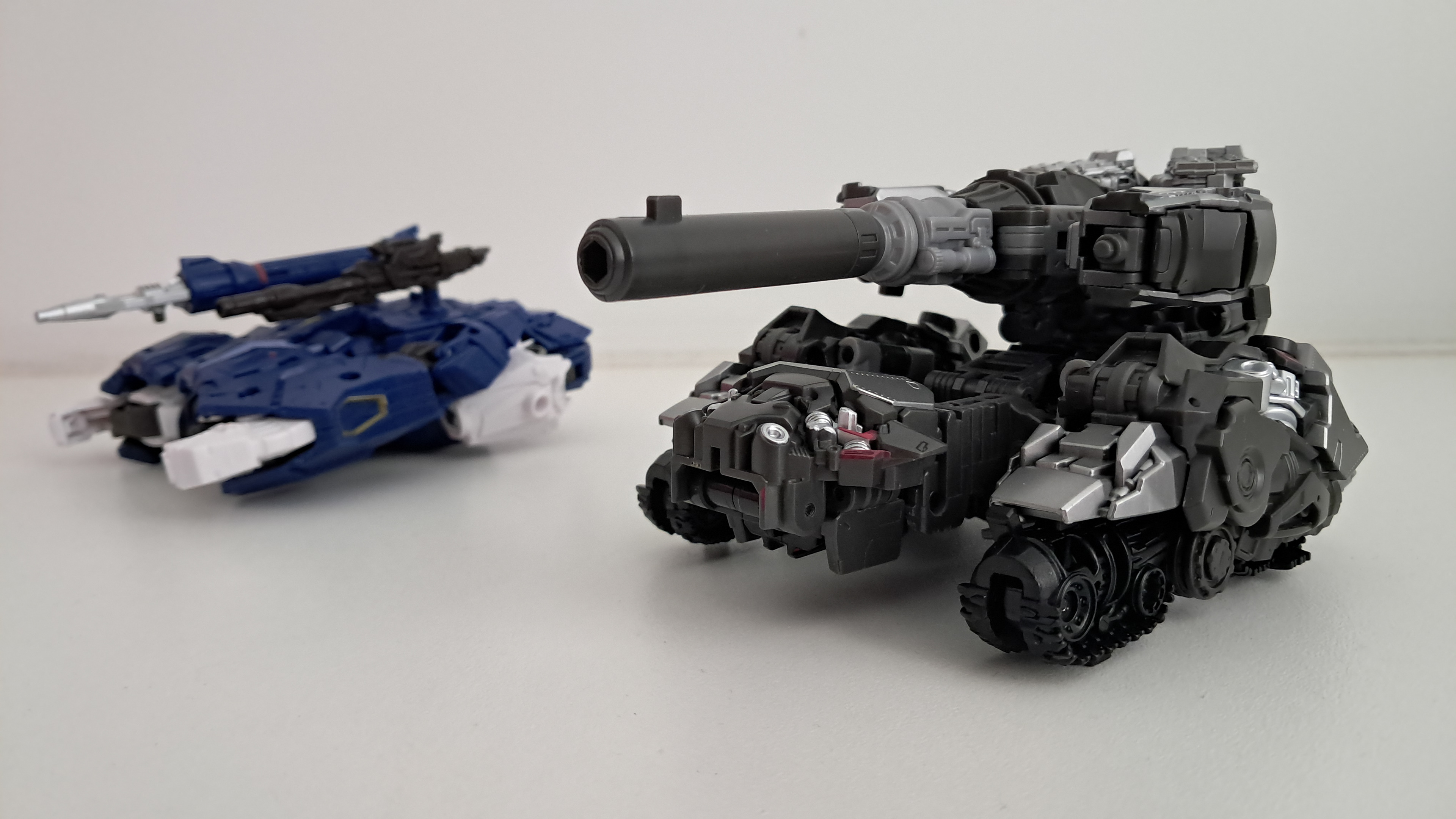 En tja, dan ga je vergelijken met wat je voor de prijs krijgt. Ik noemde al de eerdere Megatrons uit de Studio Series. Maar deze Megatron is een triple changer, dat waren die andere niet. En tegenwoordig zijn triple changers toch de Leader Class prijs waard? Nou ja, in dat geval ga ik deze Megatron dan ook vergelijken met twee eerdere Megatron triple changers.