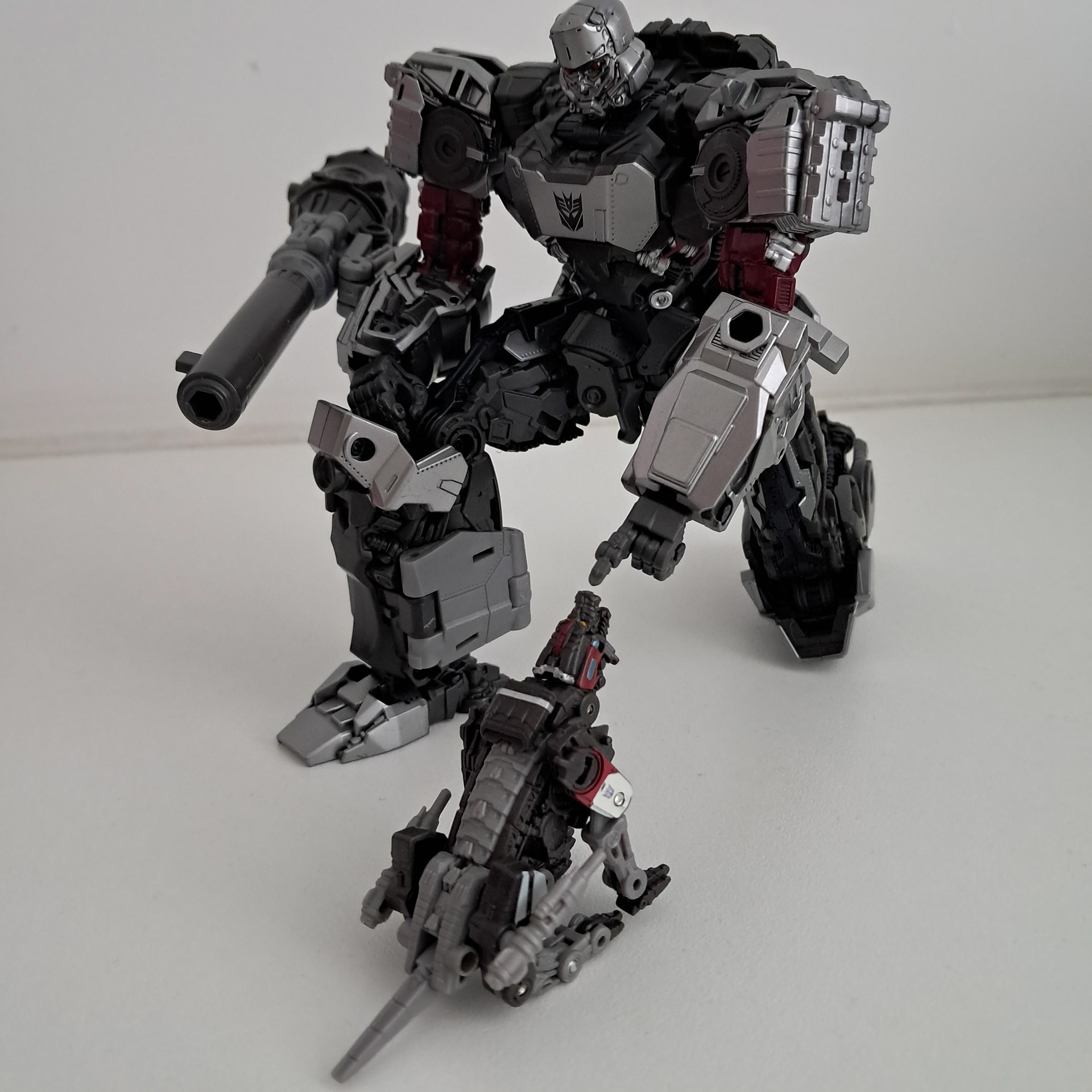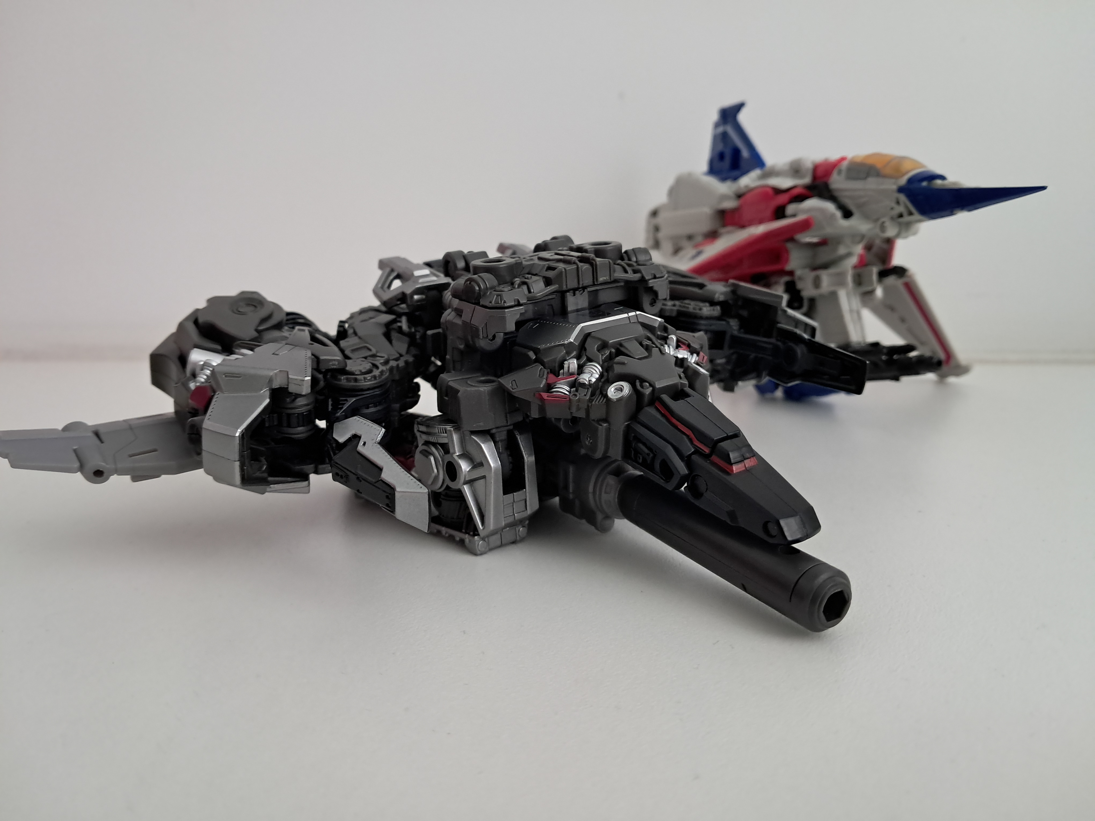 In dat licht gezien zou je dus deze Megatron nog kunnen vergelijken met de Studio Series RotF the Fallen. Ook een leader class met een alt-mode die nergens op slaat en nauwelijks aan elkaar blijft hangen. Maar die had tenminste het fatsoen groot te zijn, met nog wat extra zooi als een staf en een gezicht dat hij aan Prime kan geven.