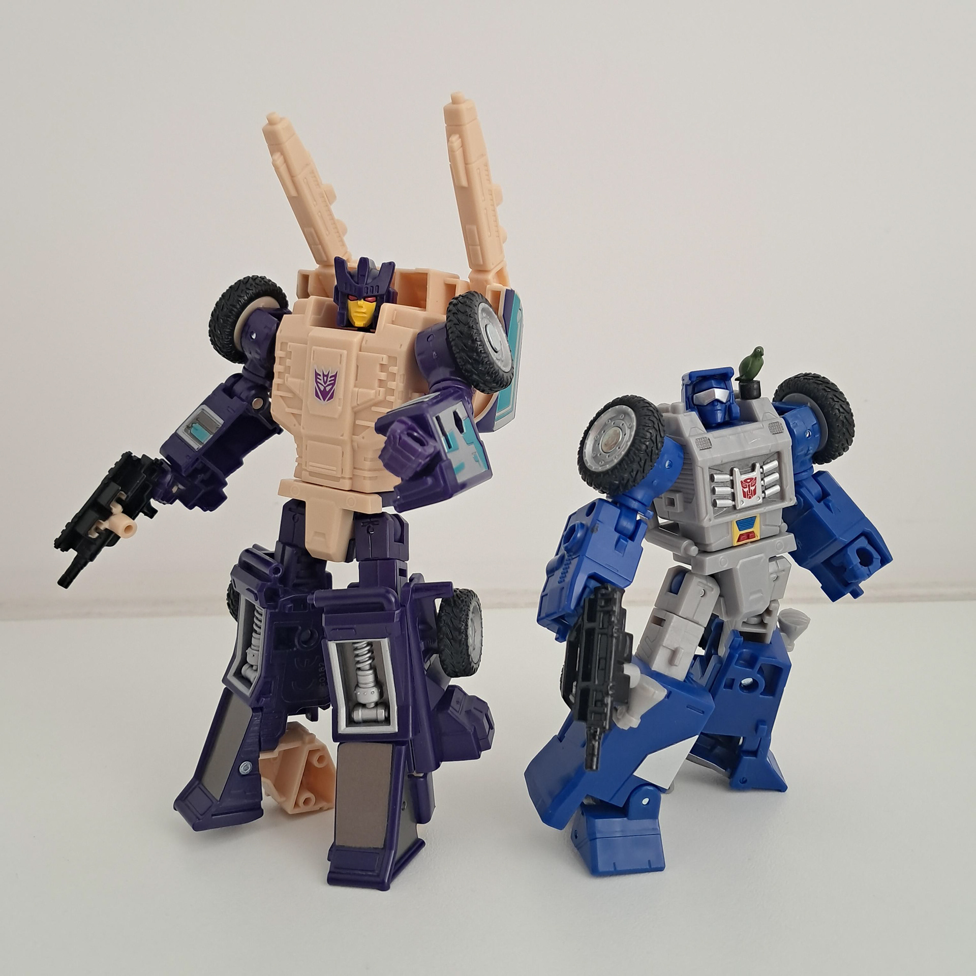 En al deze nieuwe dingen maken van Ruckus een compleet nieuw figuur. Van een mini-bot wordt hij opeens één van de grootste deluxe figuren. Hij heeft veel meer massa en de schouderguns zijn een zeer leuke feature, die je ook los kan maken als aparte guns. Het is enkel jammer dat 1 van de handen bij mijn exemplaar te klein is om de gun vast te houden. Maar de gele kop in de paarse helm voelt zeer G1. Wel zijn de voeten nogal lang voor hem, zodat zijn balans wat minder is, maar het is nog steeds indrukwekkend wat hij doet.