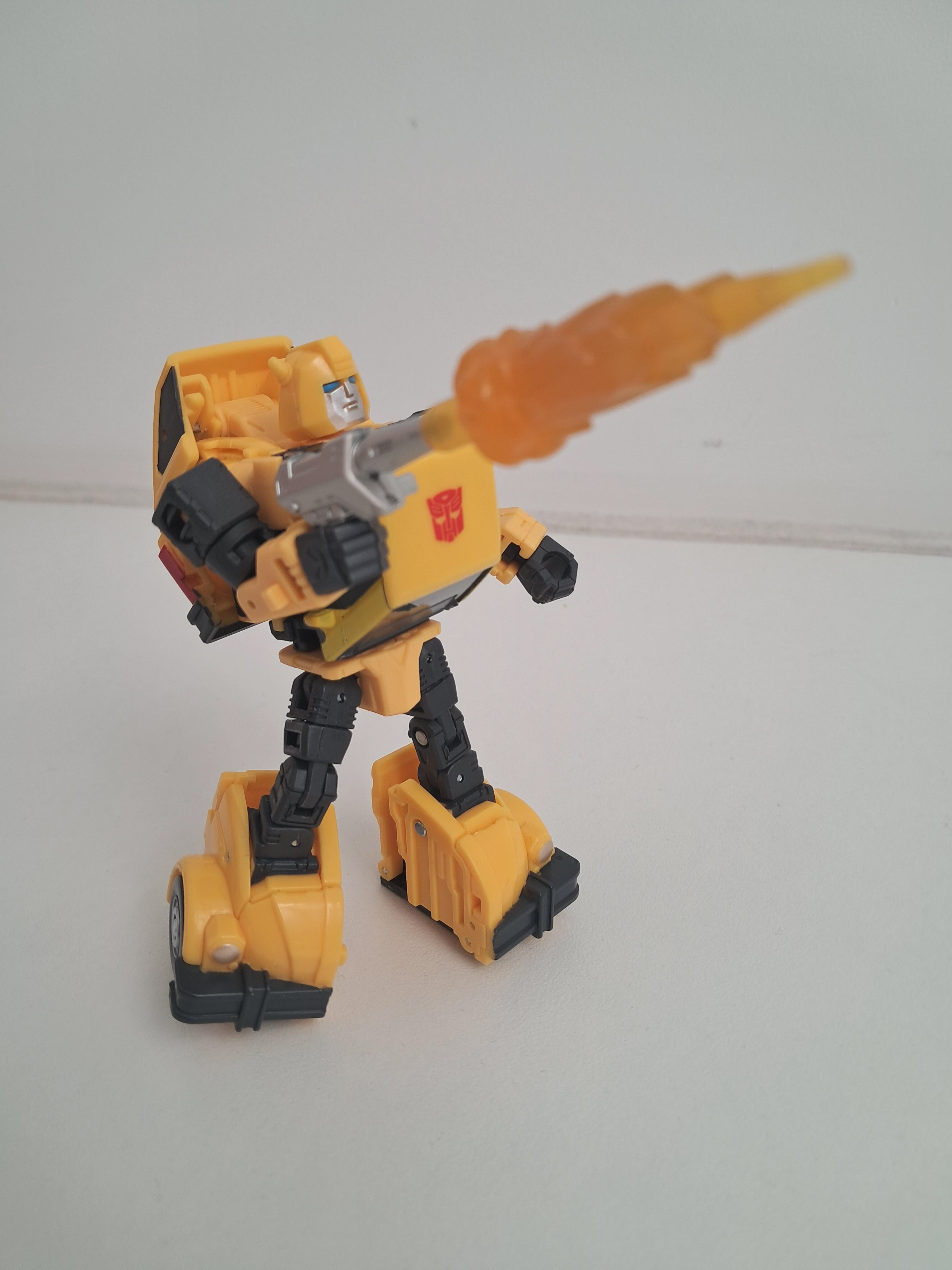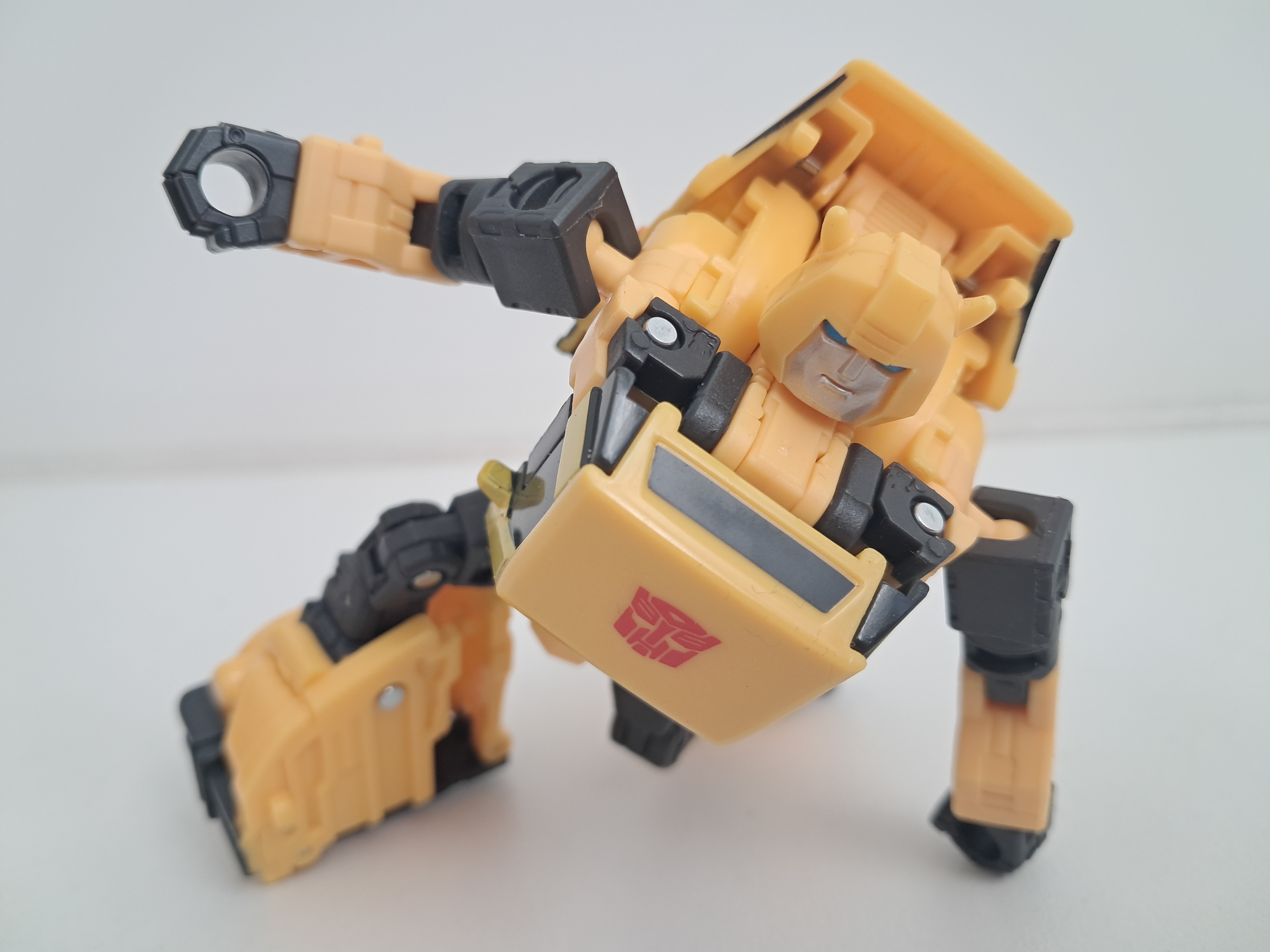 Zijn gezichtsuitdrukking is vlak en plat, de spaarzame details verdwijnen in het geel, het geel op de borstkas bestaat uit geverfd zwart plastic wat er doorheen schijnt, zijn knieën werken twee kanten op en ZIJN FUCKING HOOFD KAN NIET DRAAIEN BIJ MIJN EXEMPLAAR!!!! Ik heb er een tijd over nagedacht dat ik niet eerst iets moest oplossen met Hasbro klantenservice maar fuck dat. Dit is een enorm QC issue naar mijn mening, vooral omdat ik nu voor TF-Robots een filmpje moet maken om te laten zien dat zijn hoofd niet draait. Leuk om te doen terwijl je met 1 hand een telefoon vasthoudt.