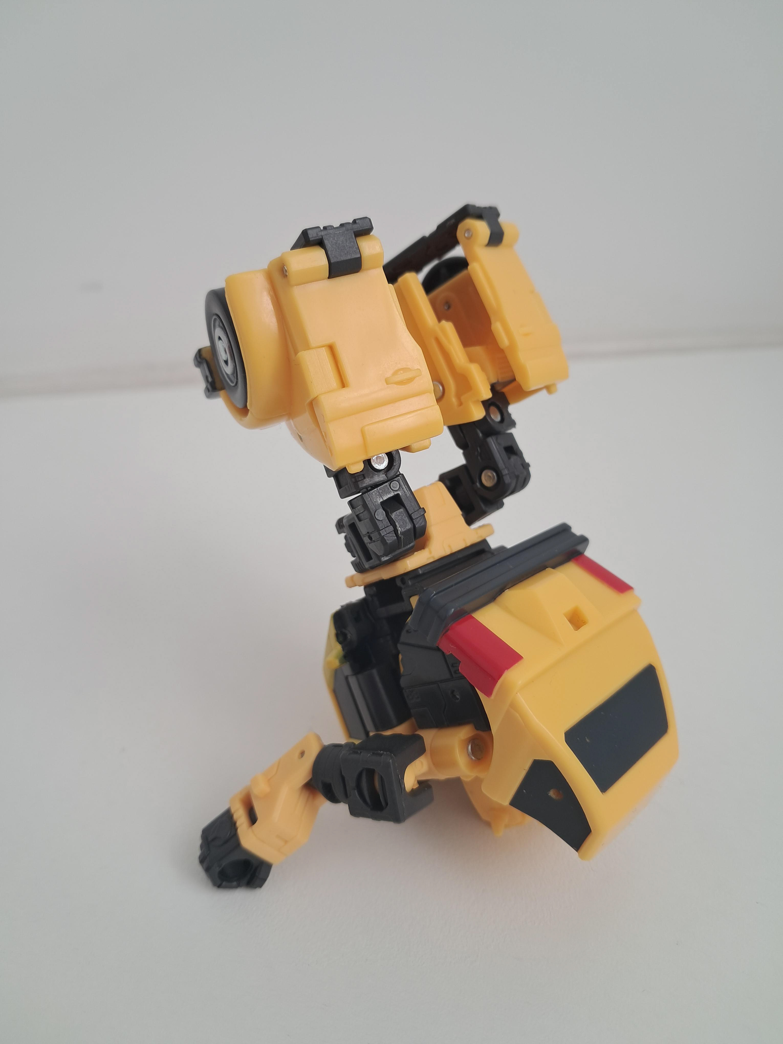 Zet hem tussen wat andere Bee's en je voellt en ziet het verschil in enginering en kwaliteit tussen de figuren. De Netflix mold voelt als een veel betere representatie, al speelt die vals met zijn transformatie. Maar deze Bee voelt gewoon niet als een Bumblebee.