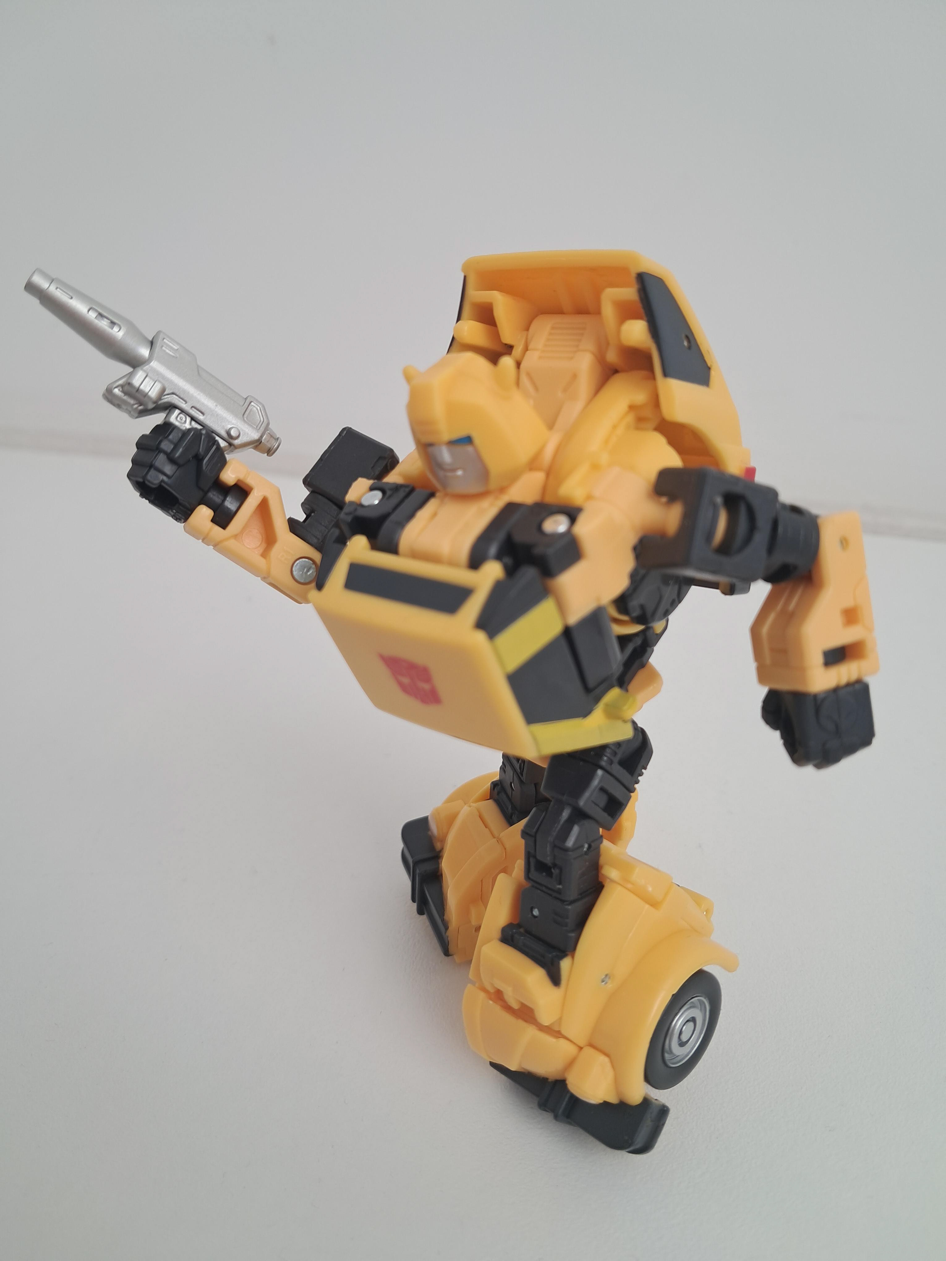 Het ding is immers dat deze Bumblebee zit met een flink gebrek aan accessoires. Je krijgt een lullig pistooltje en dat was het wel. Terwijl dit het meest kleine deluxe figuur ooit is, met een vrij lage parts count.