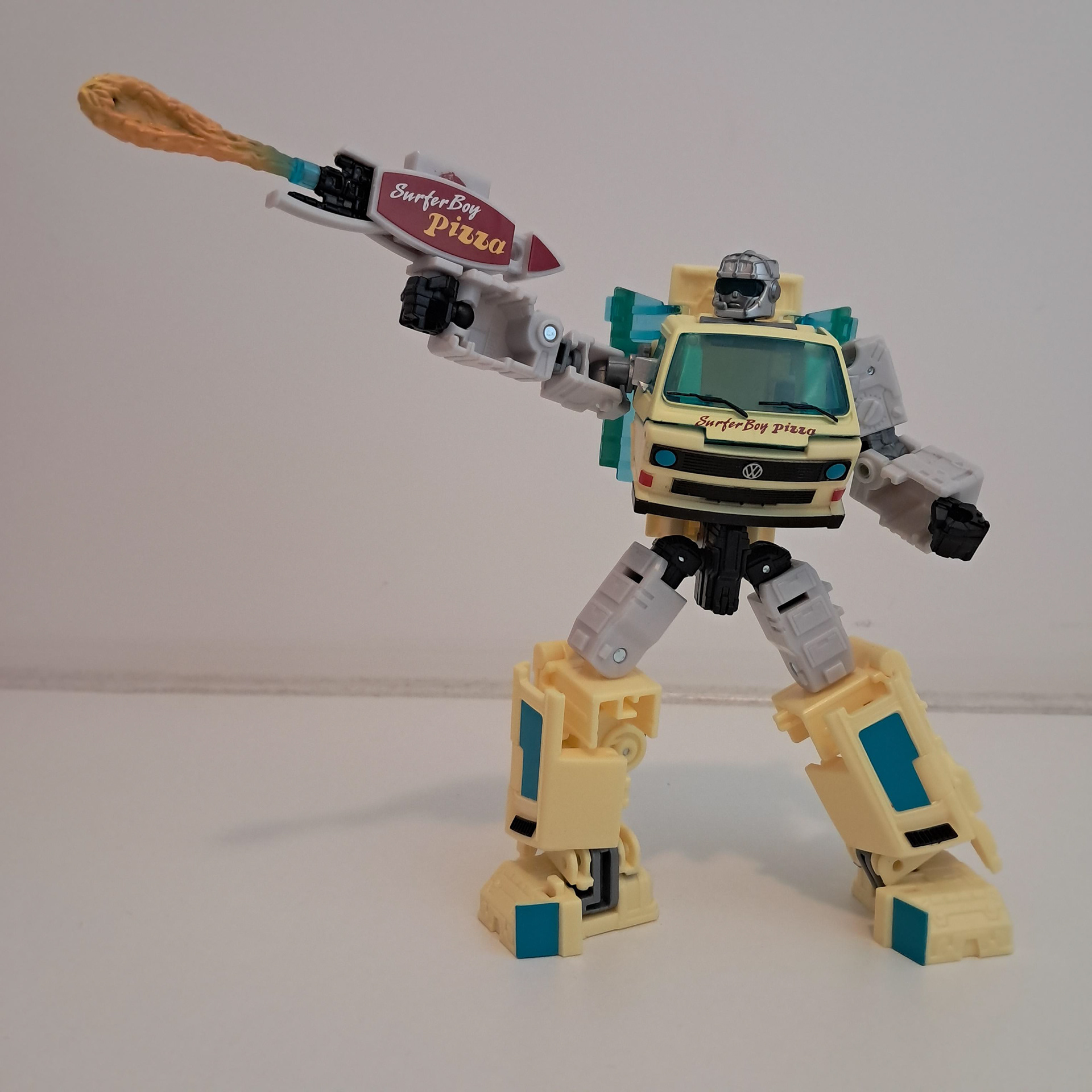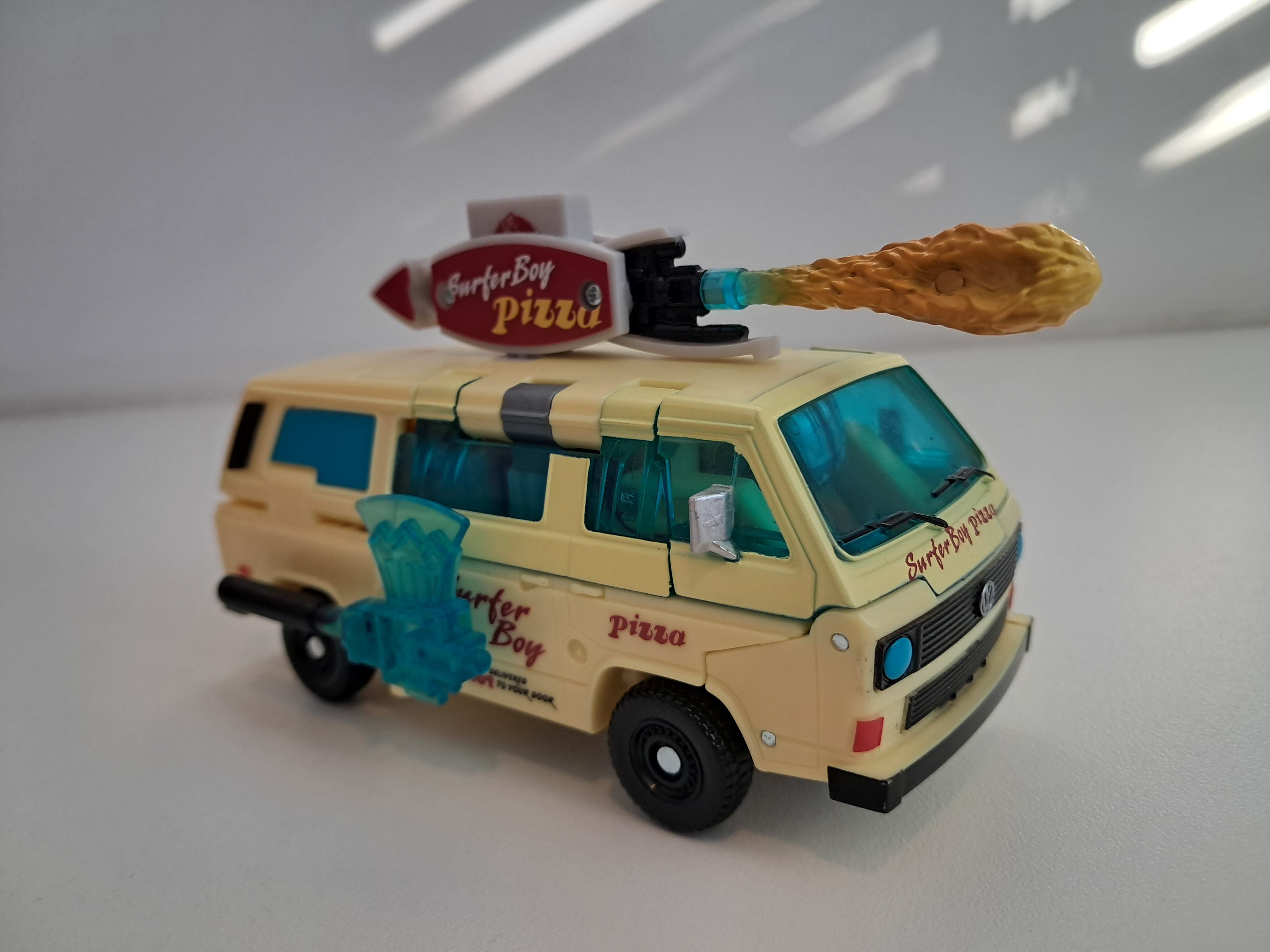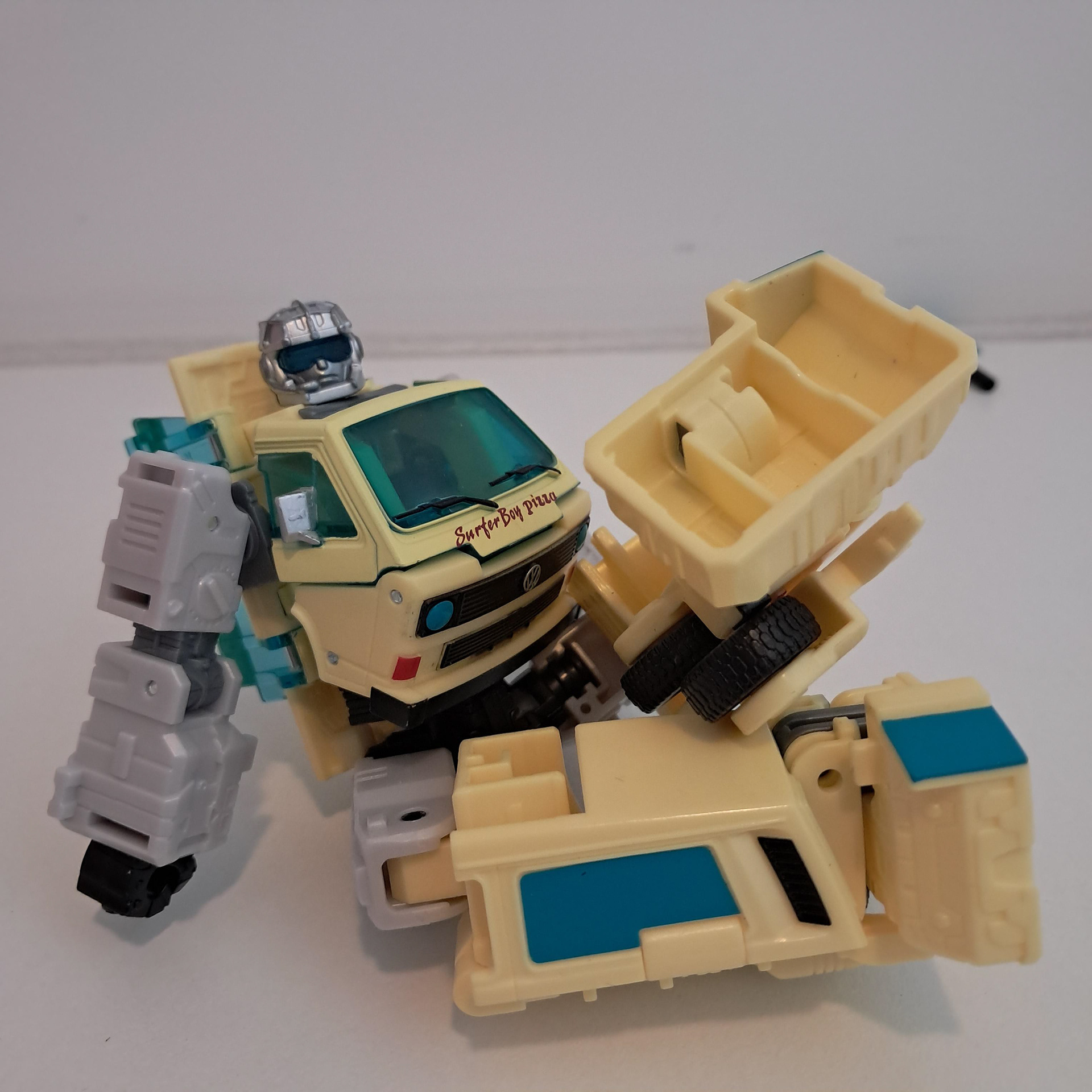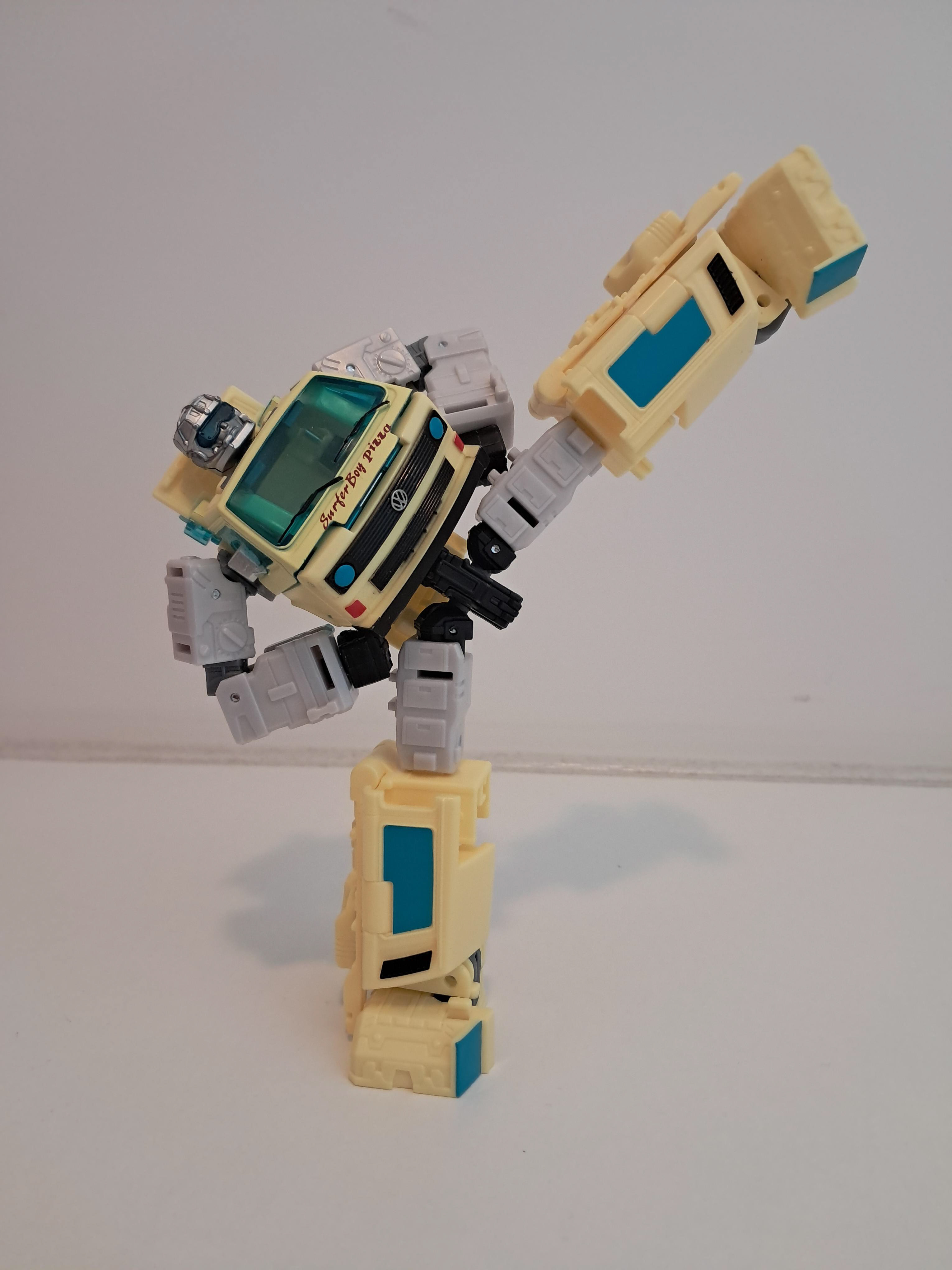 Zo tussen de transformer busjes die ik heb valt nog eens op hoe compact hij is, terwijl de transformatie bijzonder simpel is. Wat foto's verderop kan je zien dat hij even hoog is als robot dan Party Wallop. Er is op gekke momenten veel moeite in dit ding gestoken en in andere momenten totaal niet en ik heb geen idee waar het op slaat.