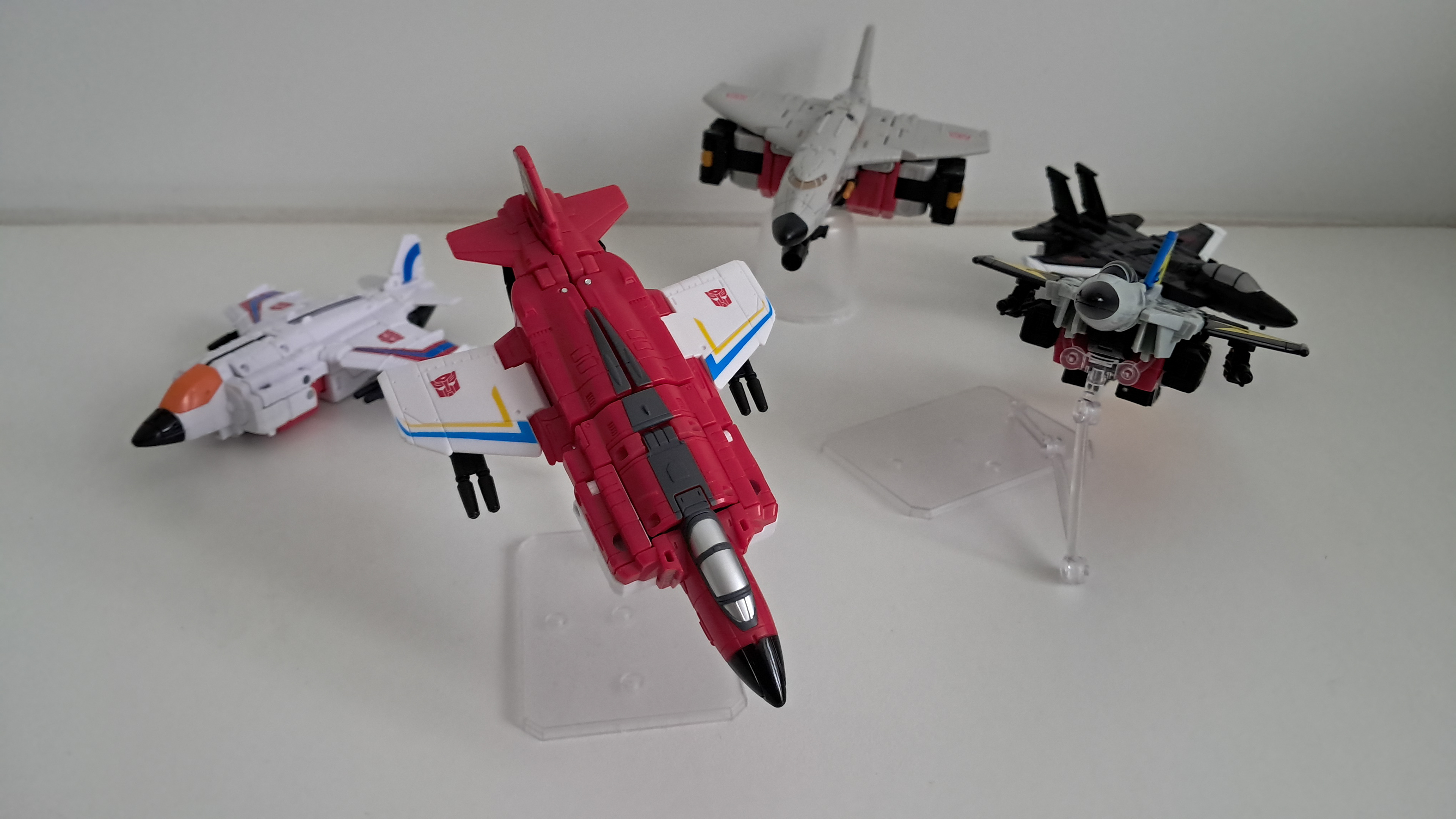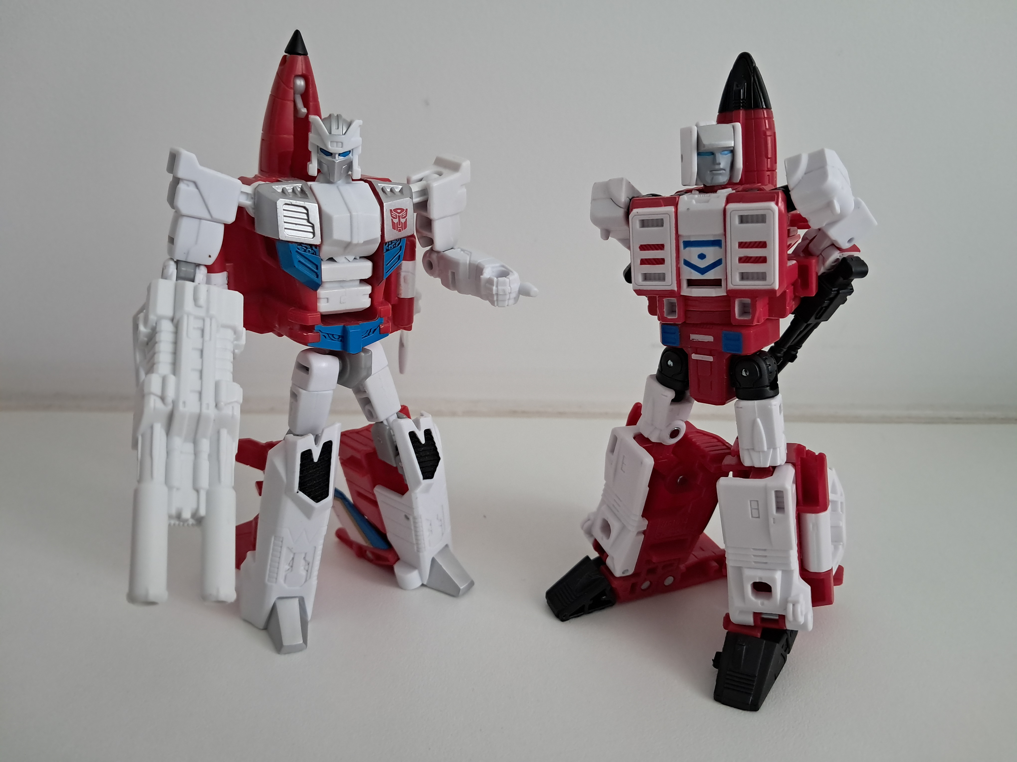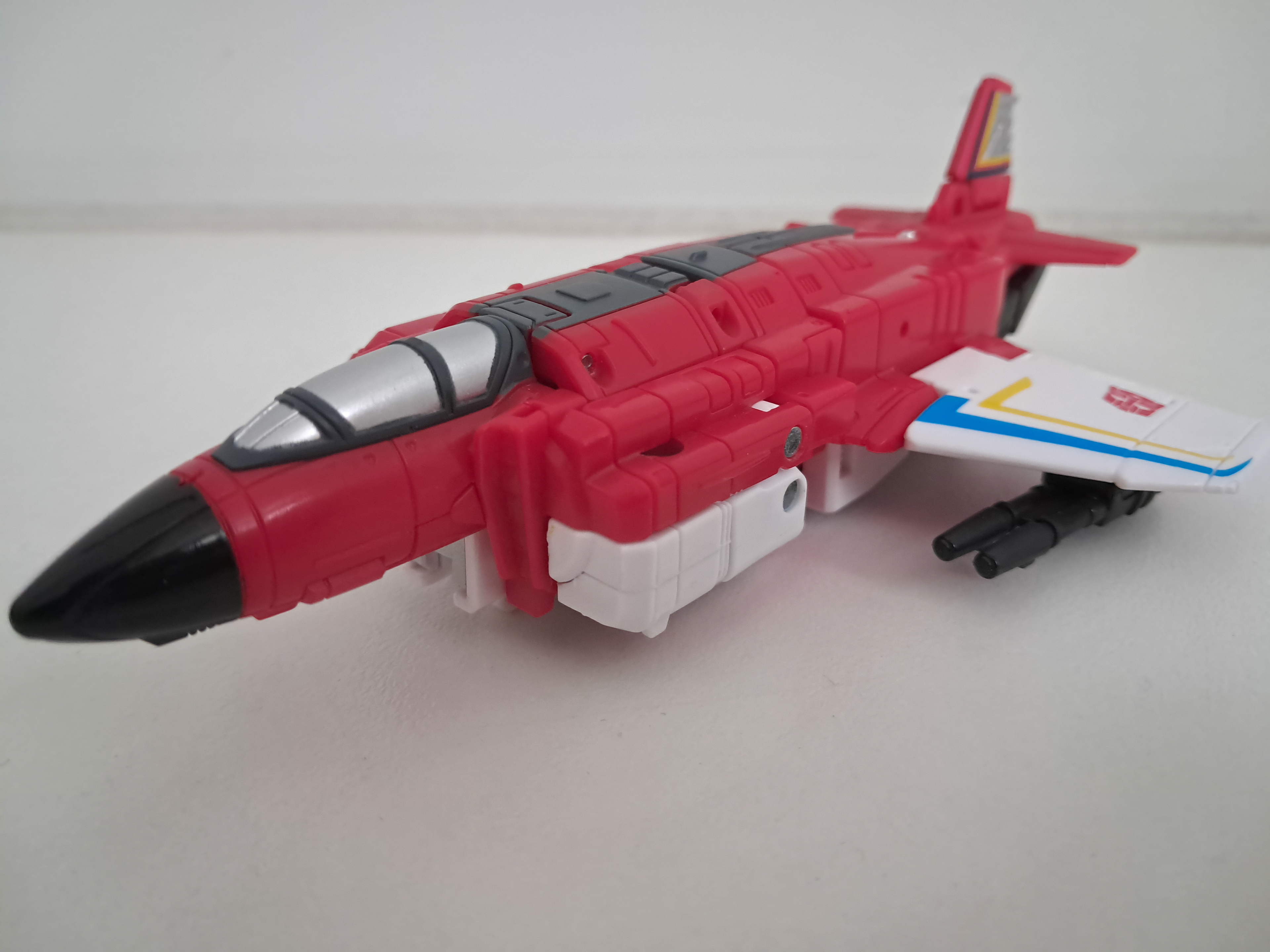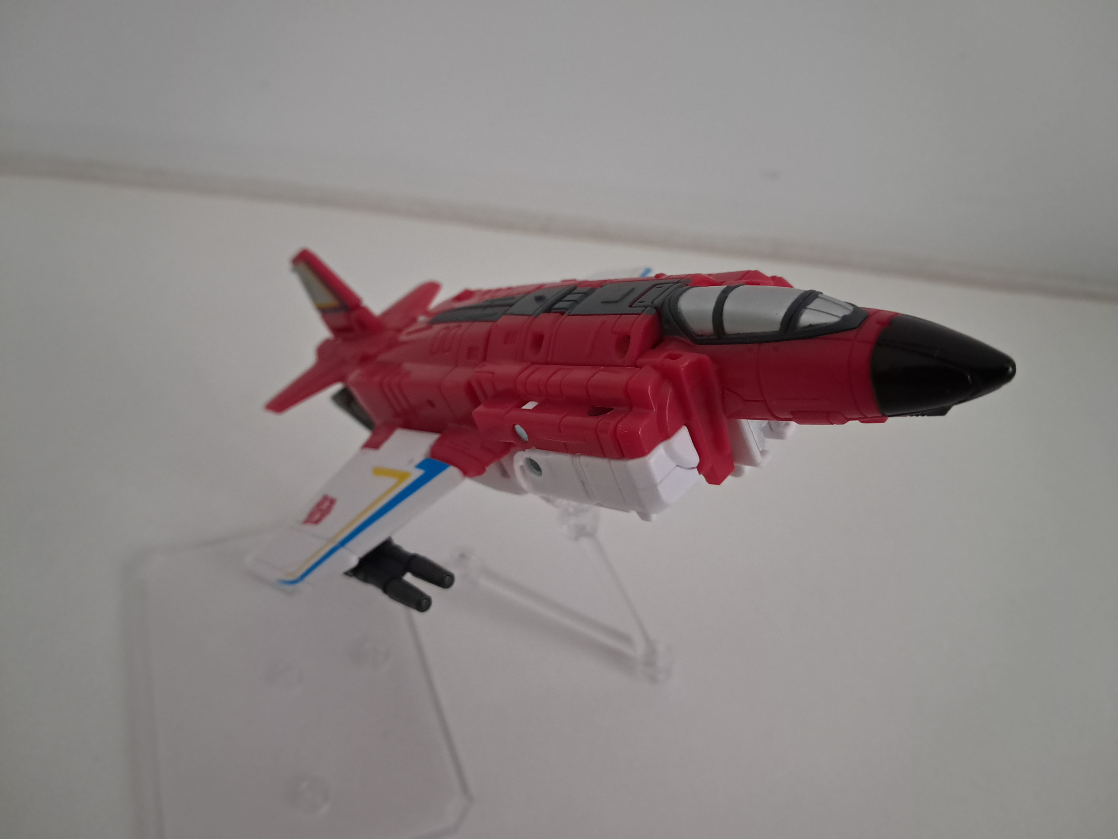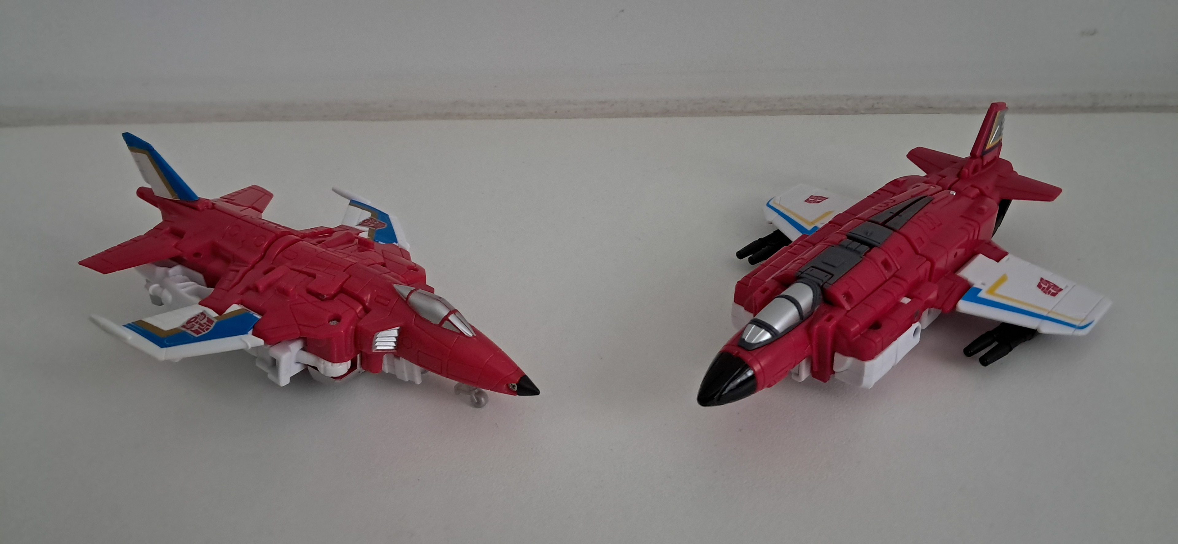 En toch... het is dat de Titans Return versie er duidelijk op achteruit gaat, met lastige joints, armen die onder het vliegtuig hangen en meer gedoe. Maar als los figuur heeft die toch een stuk betere uitstraling, met zijn kleine vleugeltjes en goede kleurverdeling. Het maakt hem toch alsnog interessanter.