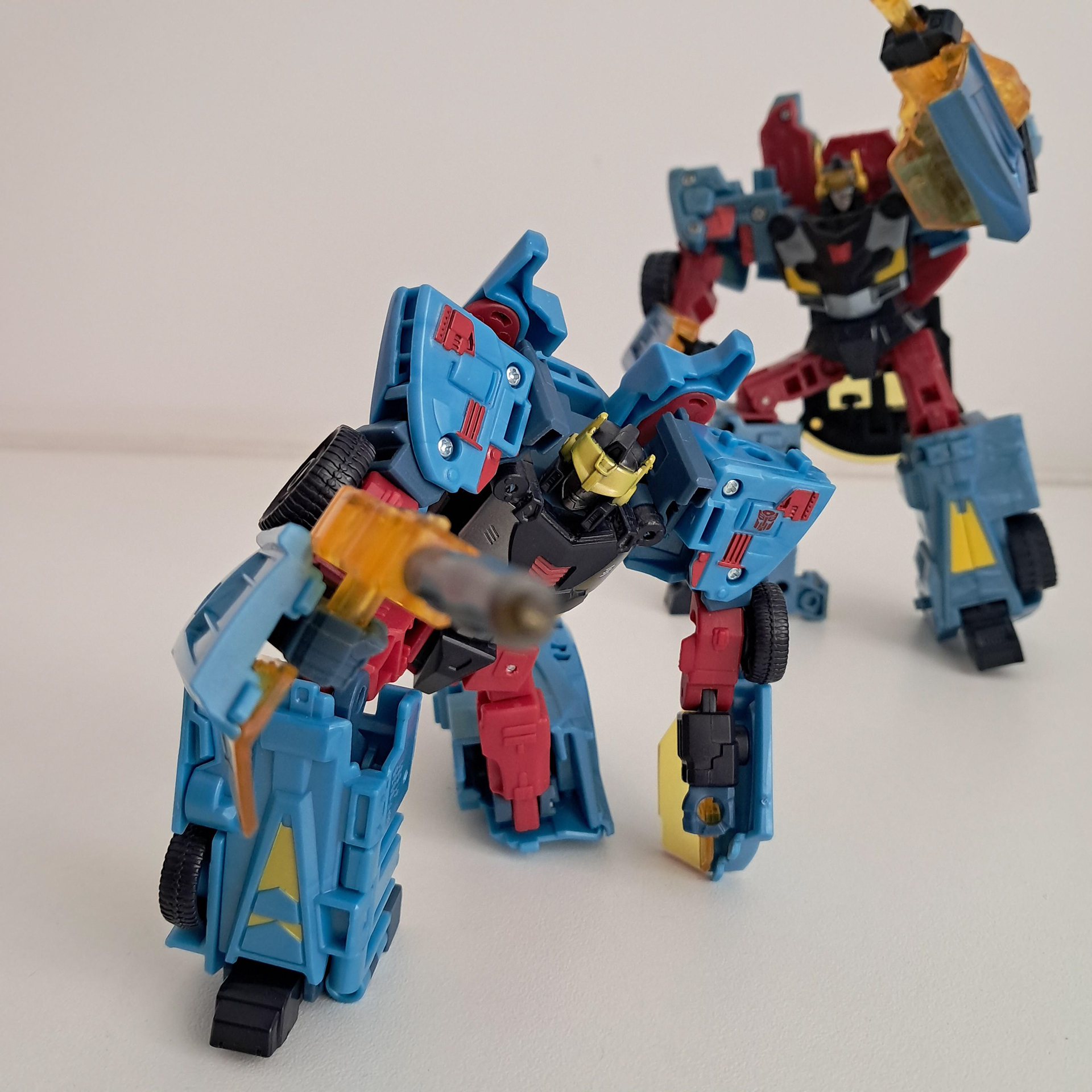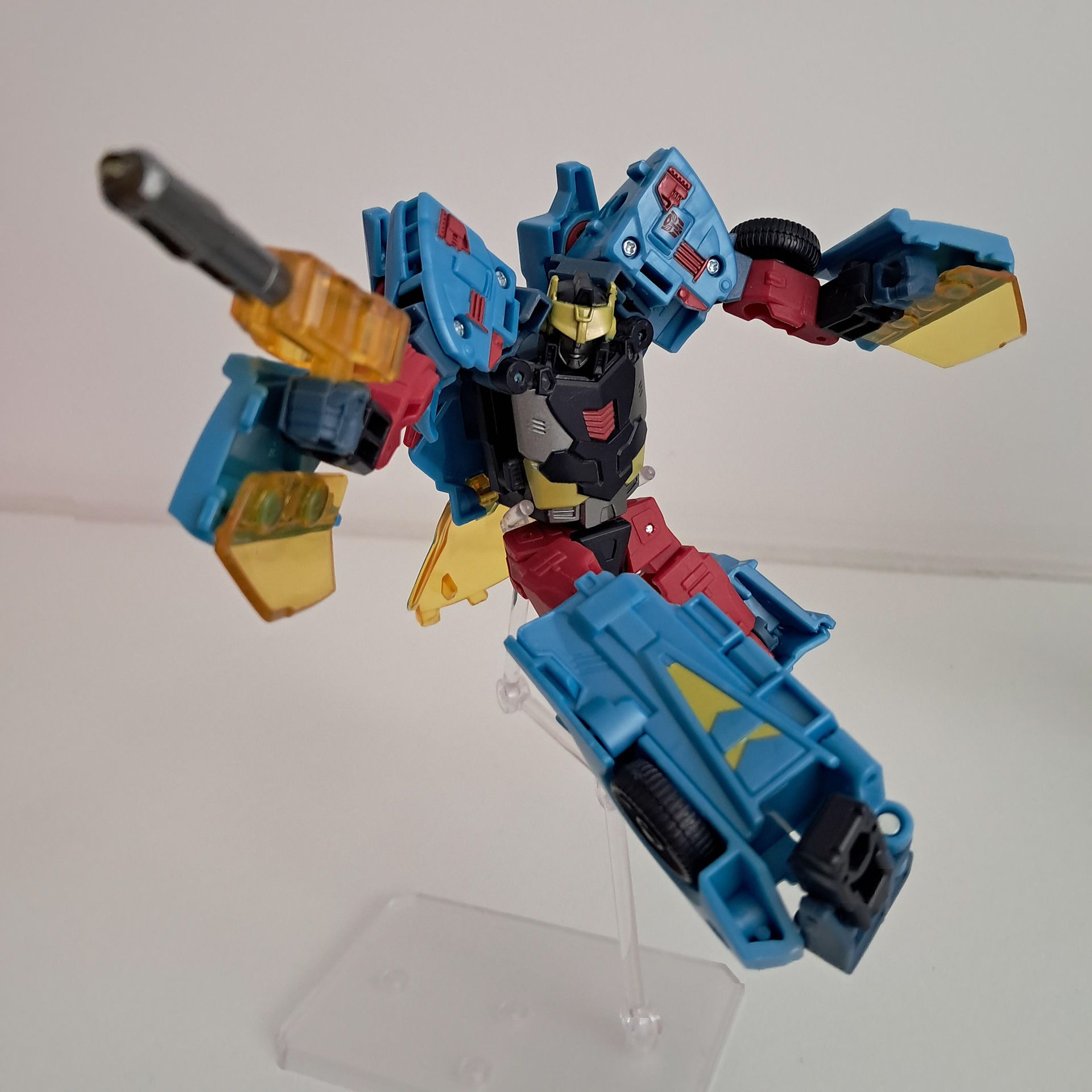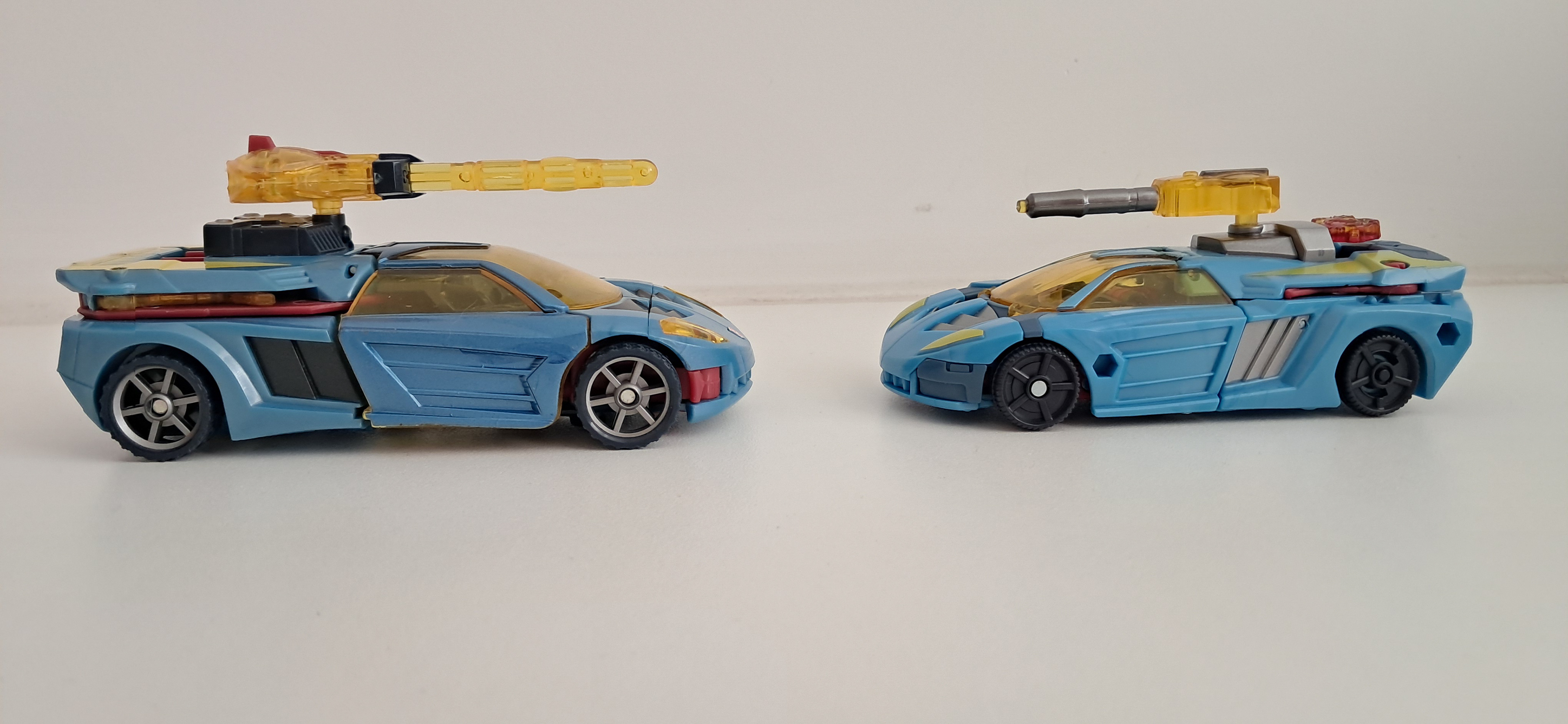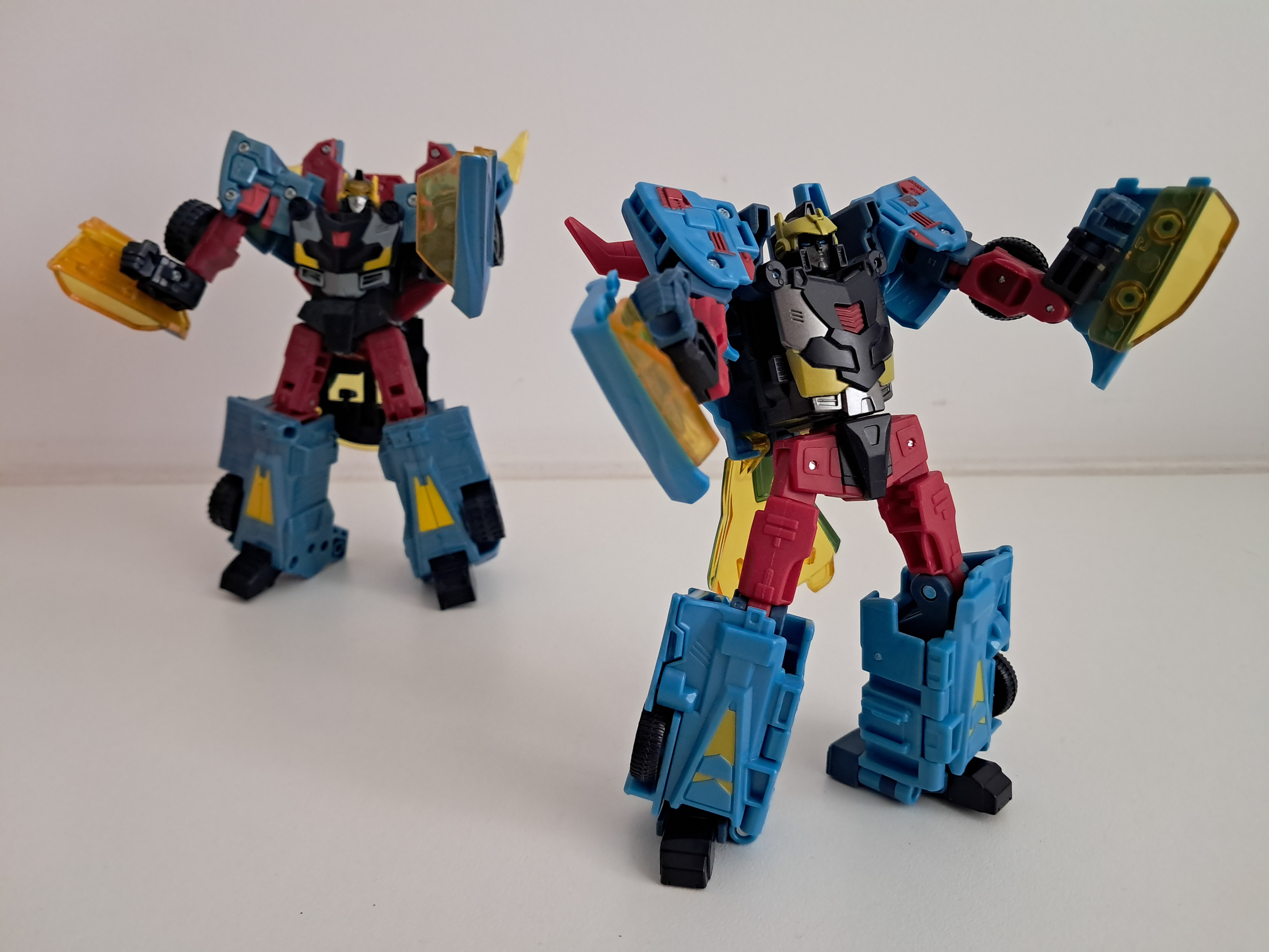 Over laagjes verf gesproken, zijn alt-mode heeft daar nog het meeste last van. Ik heb het al eerder gehad over de problemen met gele verf, dat het echt nog wat lagen meer nodig heeft. Geel absorbeert alle kleuren om zich heen. En ook hierom is het geel veel te spaarzaam aangebracht. Terwijl een karakter als Hot Shot wel wat geel kan gebruiken.