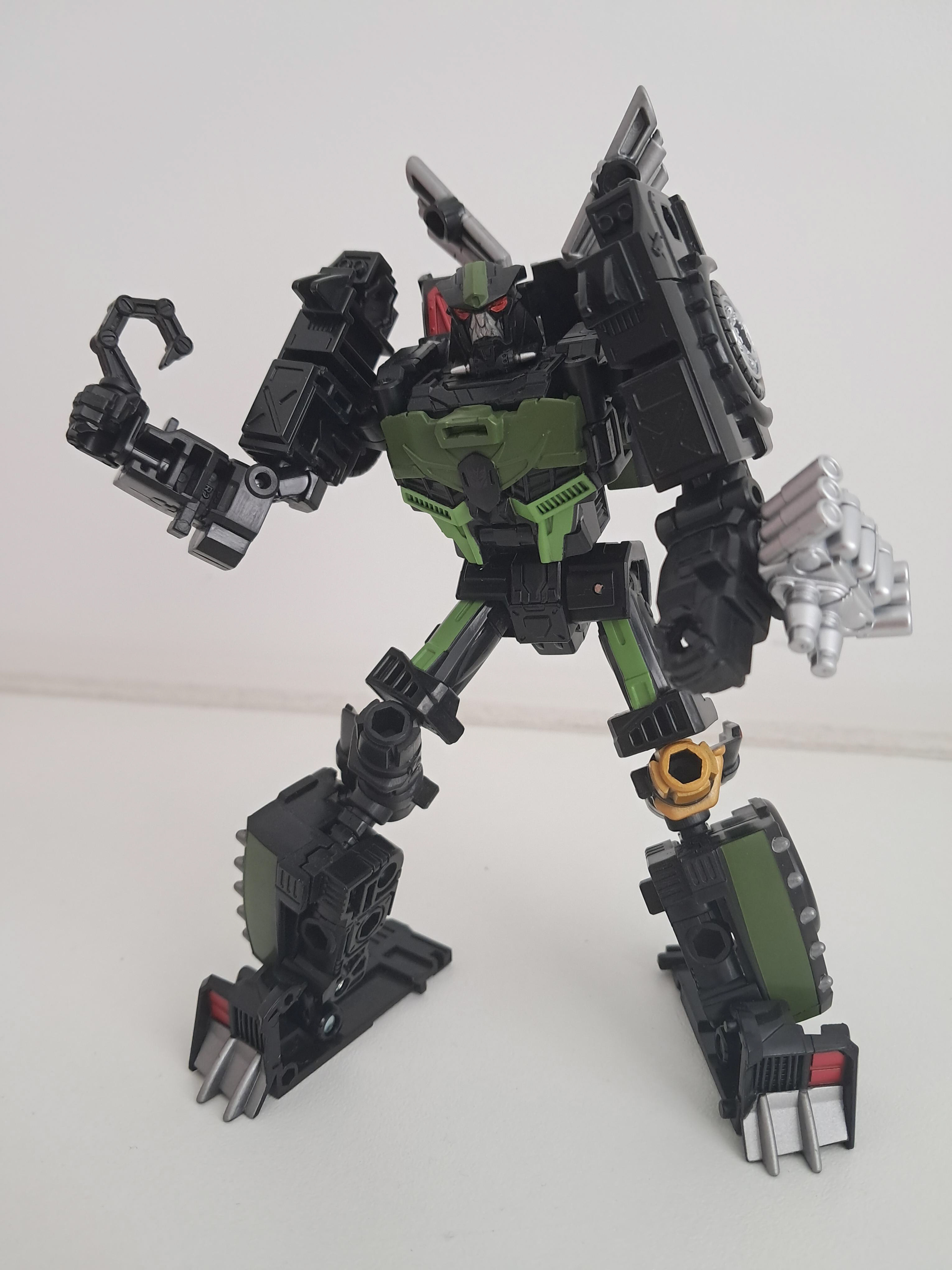 Met de extra stukjes op de knieën krijgt Lockdown echt weer de uitstraling van het Animated figuur, terwijl het motorblok weer uitstekend kan functioneren als Ratchet's z'n EMP blaster. Jammer dat het haakje nergens heen kan, maar het geeft Lockdown wel een eigen silhouette.