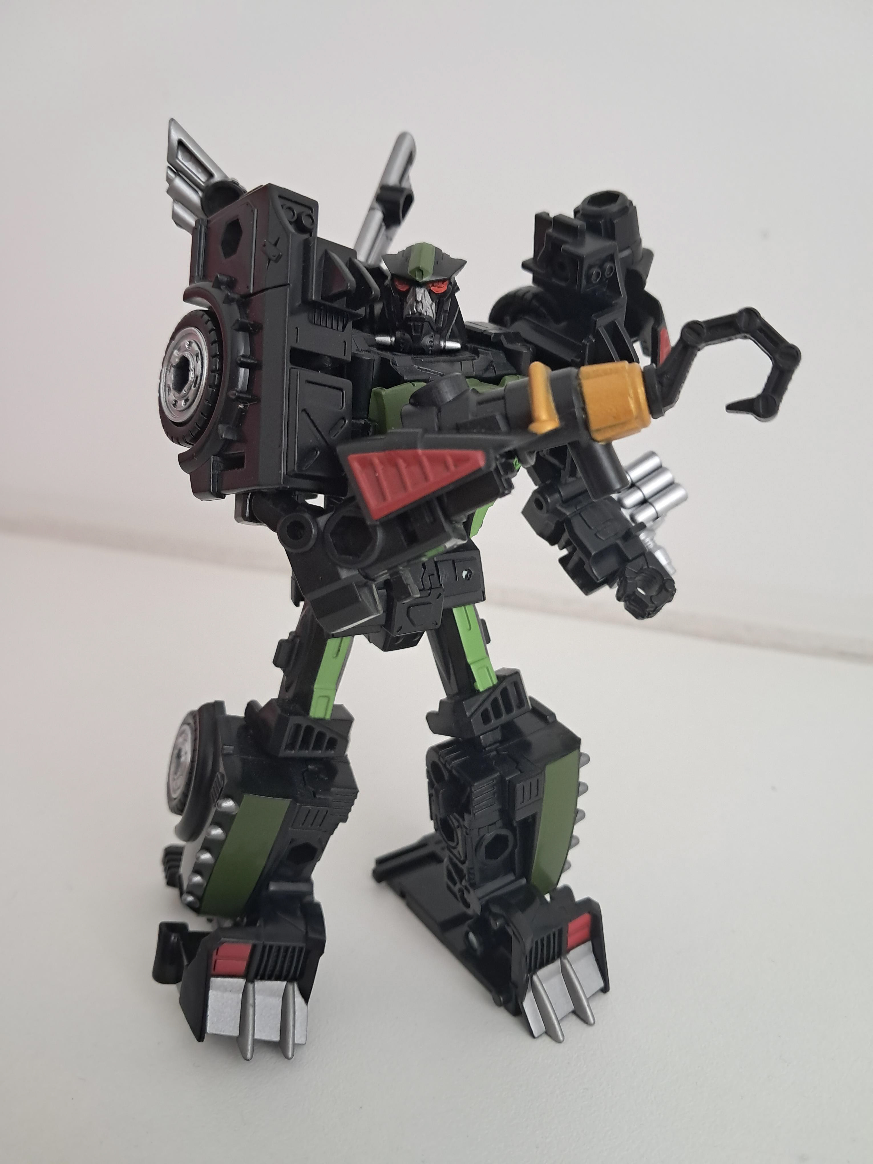En laat ik gelijk irritant zijn en in deze review mijn eigen spin geven aan Lockdown. Hij is namelijk een repaint van Axlgrease, die weer een kleine aanpassing is van Scraphook. Dus bijna 3x hetzelfde figuur, alsof we terug zijn in de tijden van de Alpha Bravo mold. Maar dankzij het geweldige modulaire systeem kan je er tenminste voor zorgen dat elk figuur zijn eigen uitstraling heeft. En daar wordt ik, als iemand die te veel verzamelt, heel blij van.