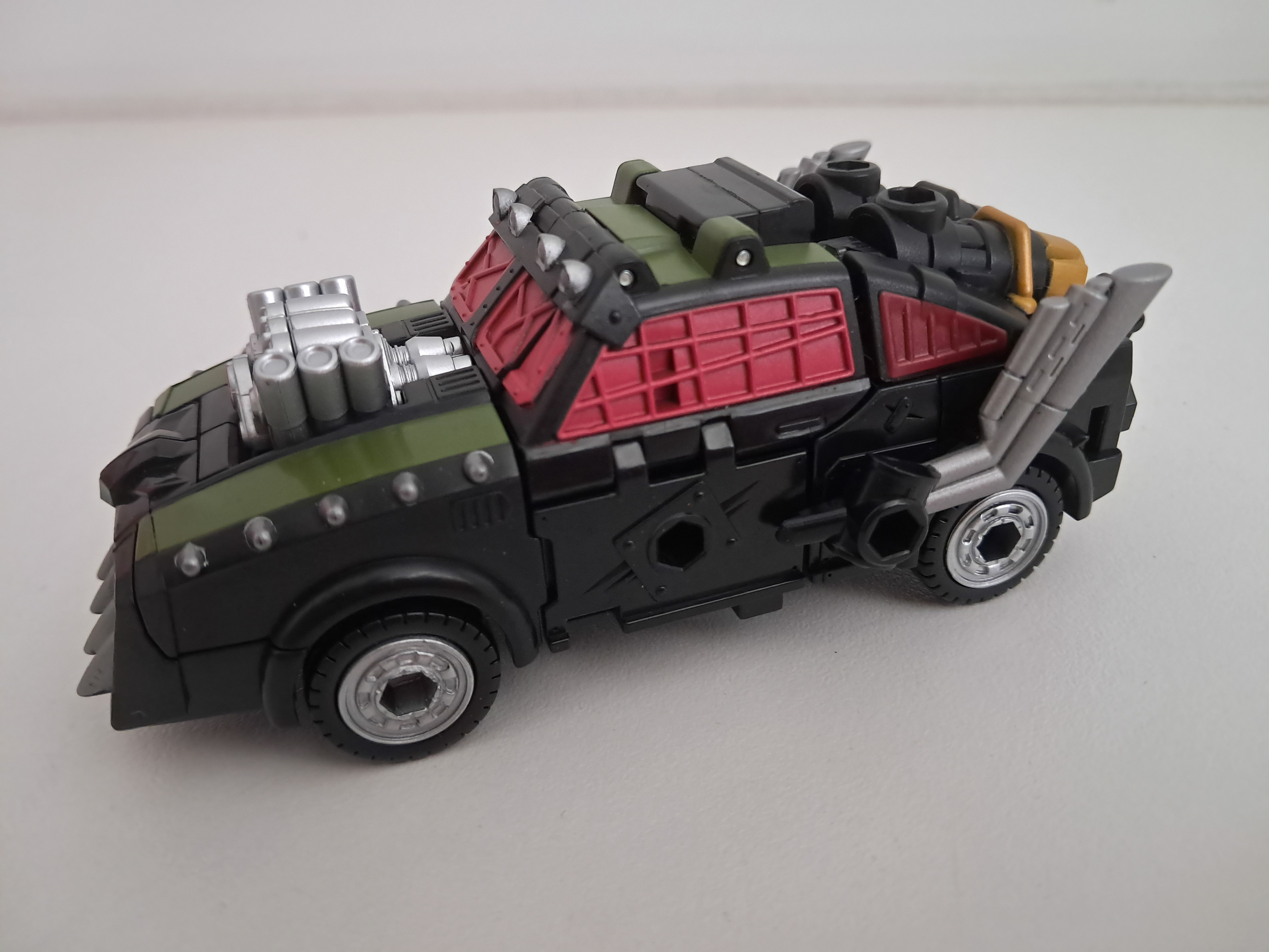 Wat ik dan weer wel een groot minpunt aan Lockdown vind, is zijn altmode. Het schreeuwt nu niet echt lockdown, ondanks de puntjes en de grote motor achter. An sich was de Chase mold naar mijn mening een betere optie geweest voor Lockdown, maar tja, dan had je weer niet de optie op hem wat mooie nieuwe knieën te geven.