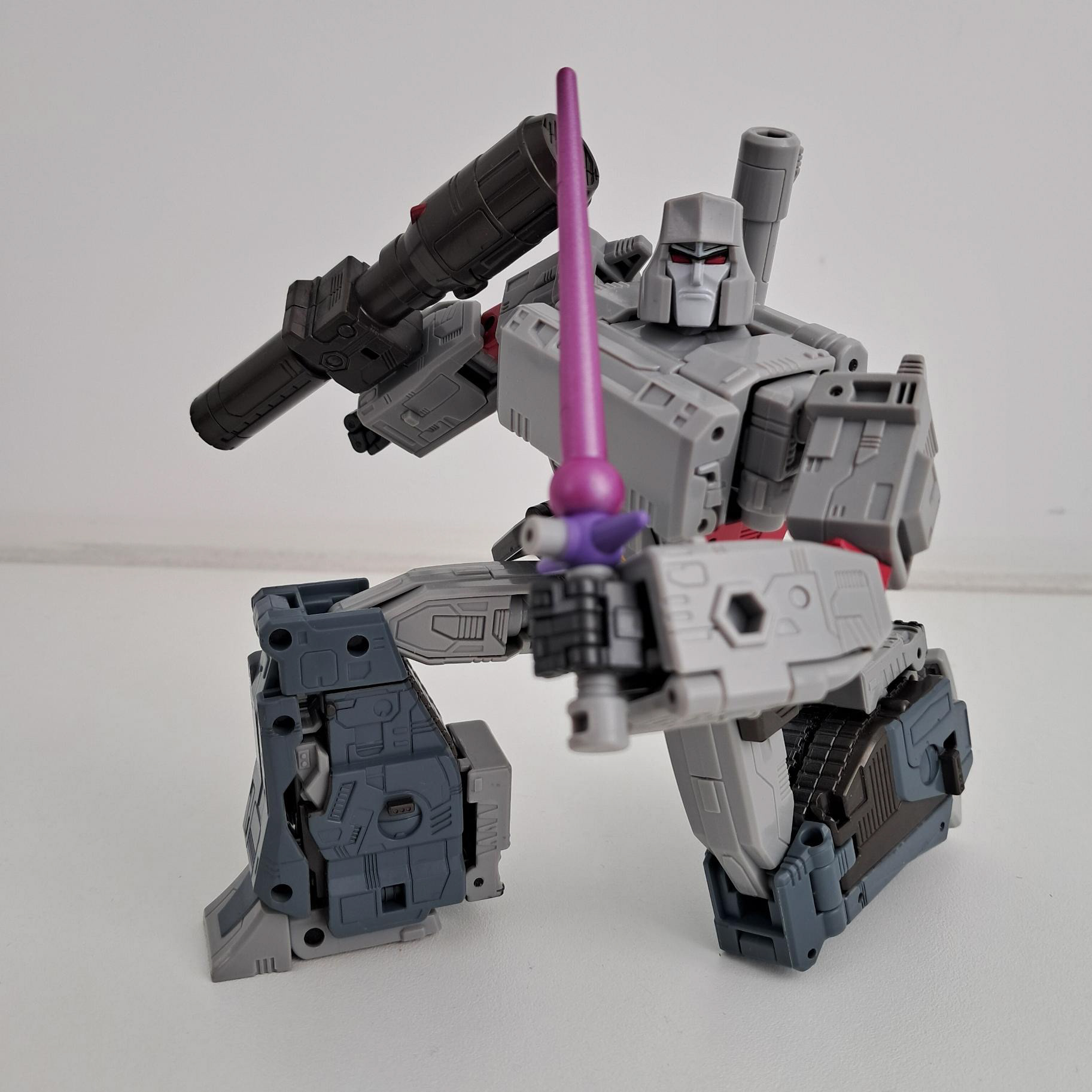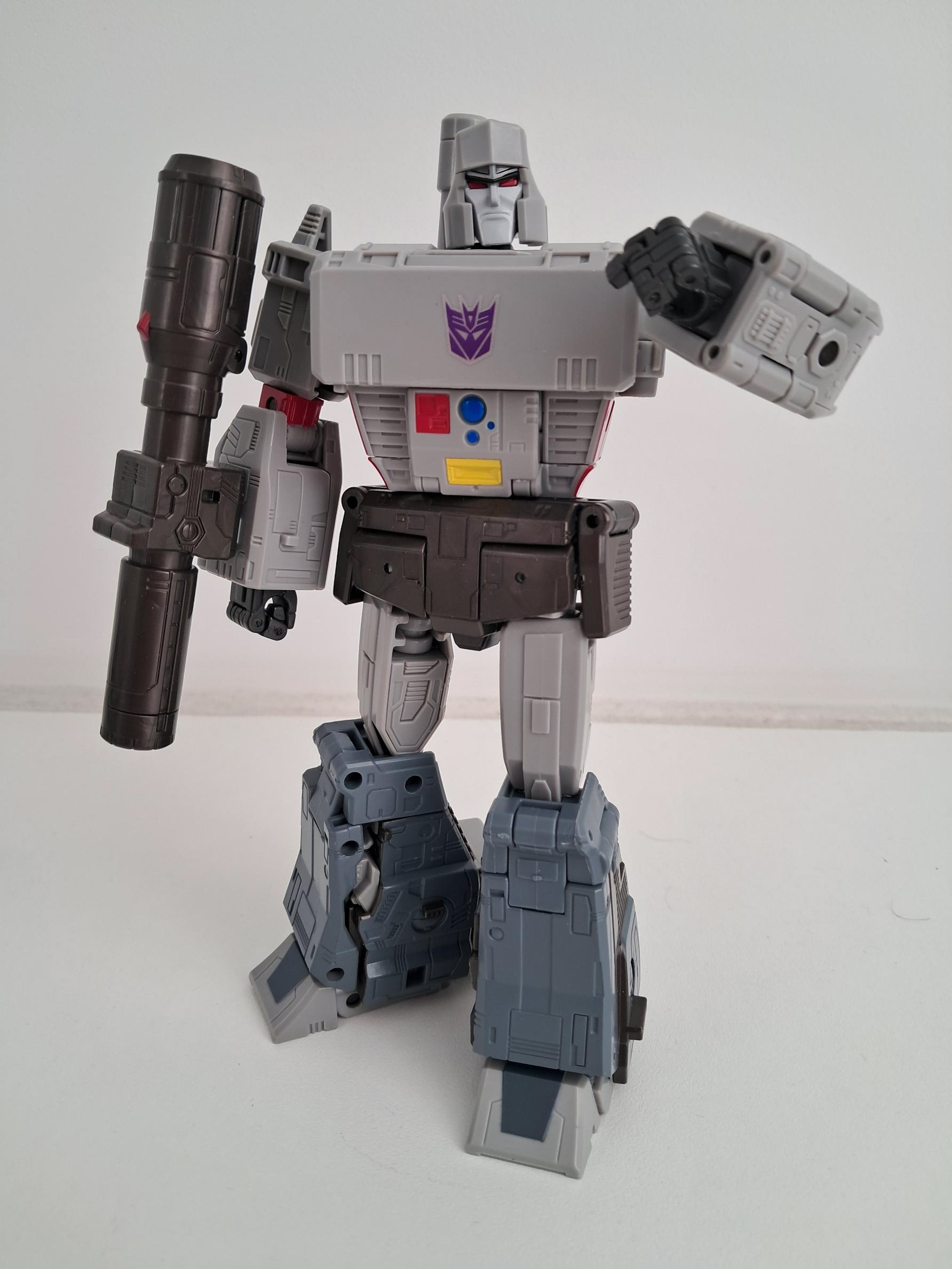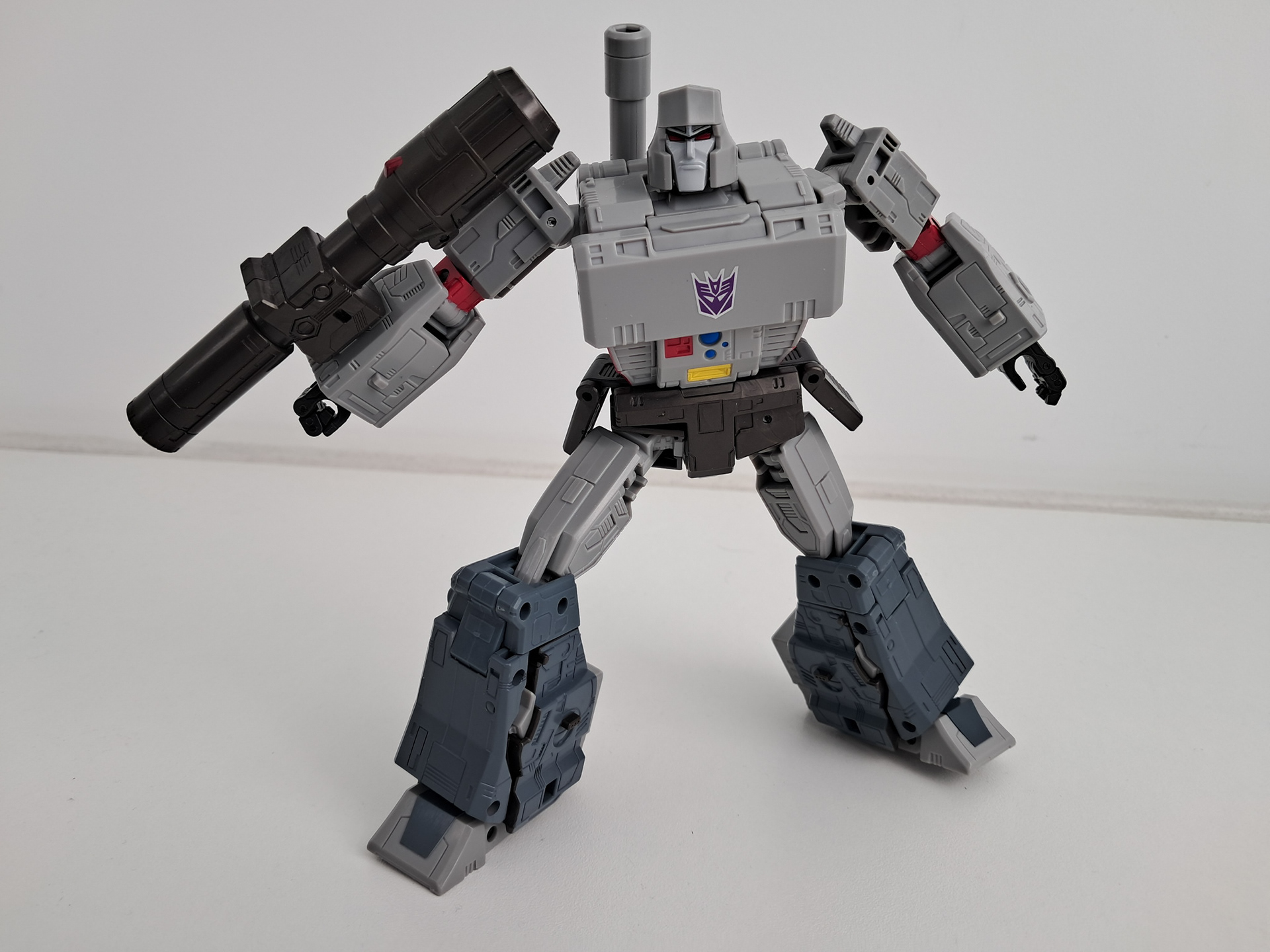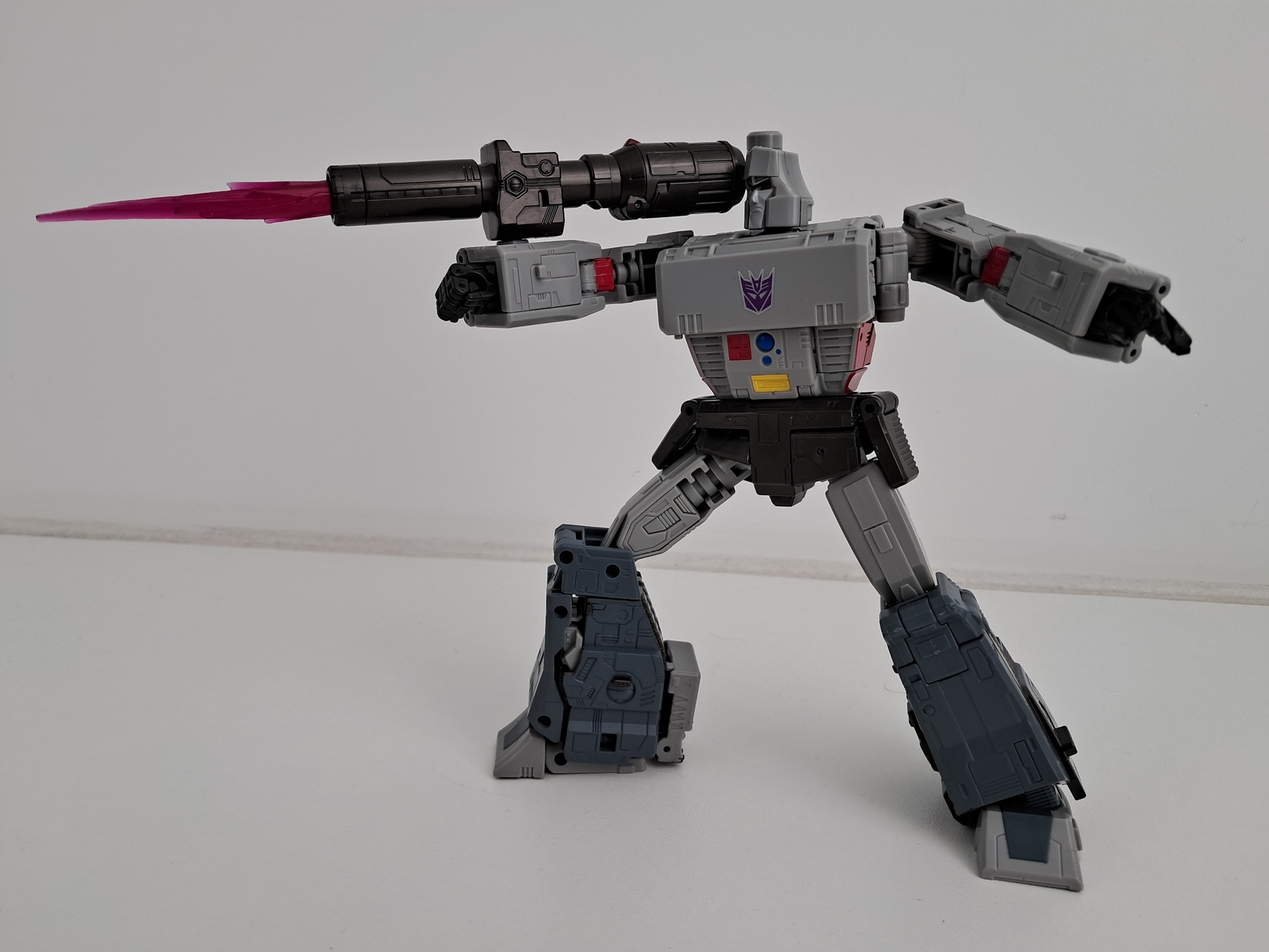 En tja, deze Megatron is heel goed in Megatron zijn, als het op looks neerkomt. Eerst was ik nogal overstuur dat het leek dat hij zandblauwe benen had, terwijl ik zwarte beentjes met een rooie binnenkant had verwacht. Maar dat is echt een ding wat je enkel ziet op foto's. Over het algemeen ben je veel te druk bezig met Megatron zijn prachtige glimlach om je druk te maken over wat er gebeurt onder zijn kin.