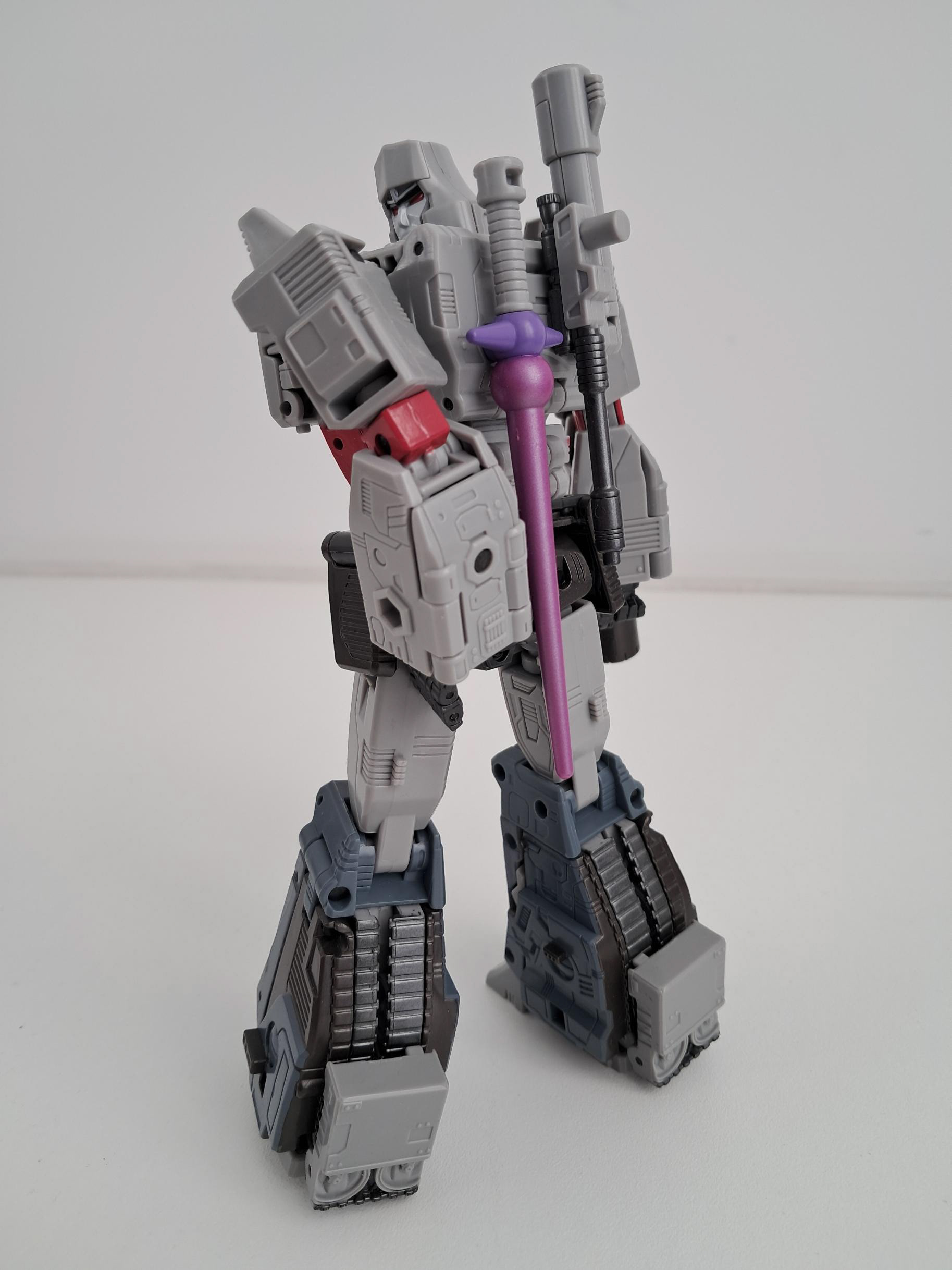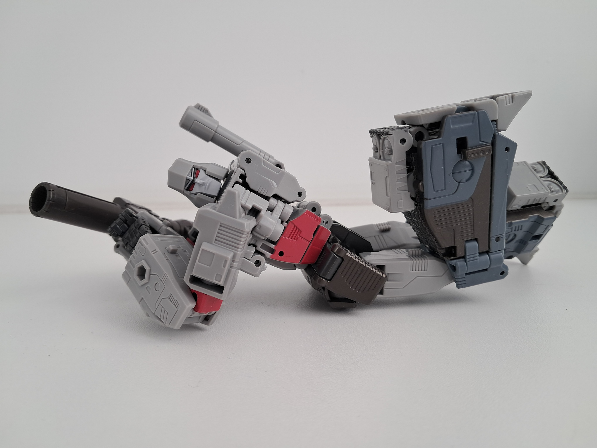 En dat terwijl het hele figuur zo ontzettend clean is uitgevoerd. We gaan er wel dieper in als we het over de alt-mode gaan hebben, maar laten we maar zeggen dat voor een robot die in een tank veranderd er heel weinig tank überhaupt aan hem zit. Er zijn nauwelijks onderdelen die überhaupt verraden dat hij een tank wordt. In plaats daar van is hij uitgerust met de meest vlakke rug die je bij een Transformer kan tegenkomen. Ik heb dit figuur nu heel vaak getransformeerd, en ik kan mij nog steeds nauwelijks beseffen waar Megatron eigenlijk die hele tank verstopt.