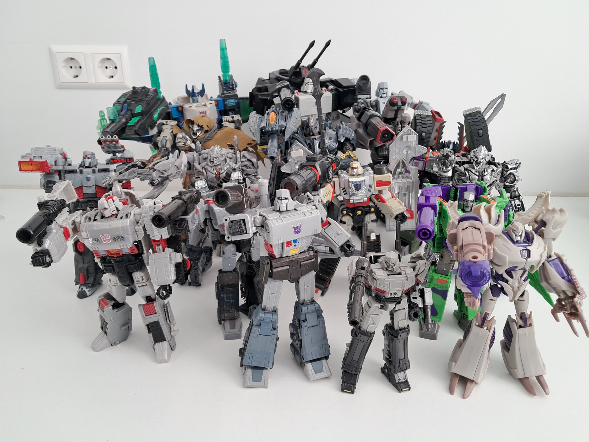 Laat daarom eerst even deze foto op je inwerken. Dit zijn alle Megatrons die momenteel in mijn verzameling zitten, afgezien van de Predacon Megatrons. En dan zijn er nog talloze Megatrons die ik alweer verkocht heb. Kijk wat ik toch moet doen om de high na te streven van een Megatron die dé Megatron van mijn verzameling te zijn. De Megatron die ik erbij wil pakken als ik het over Megatron wilt hebben.