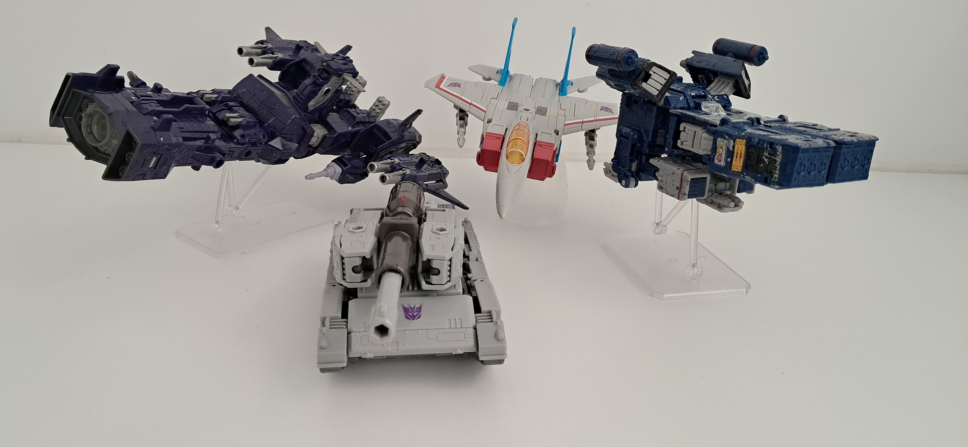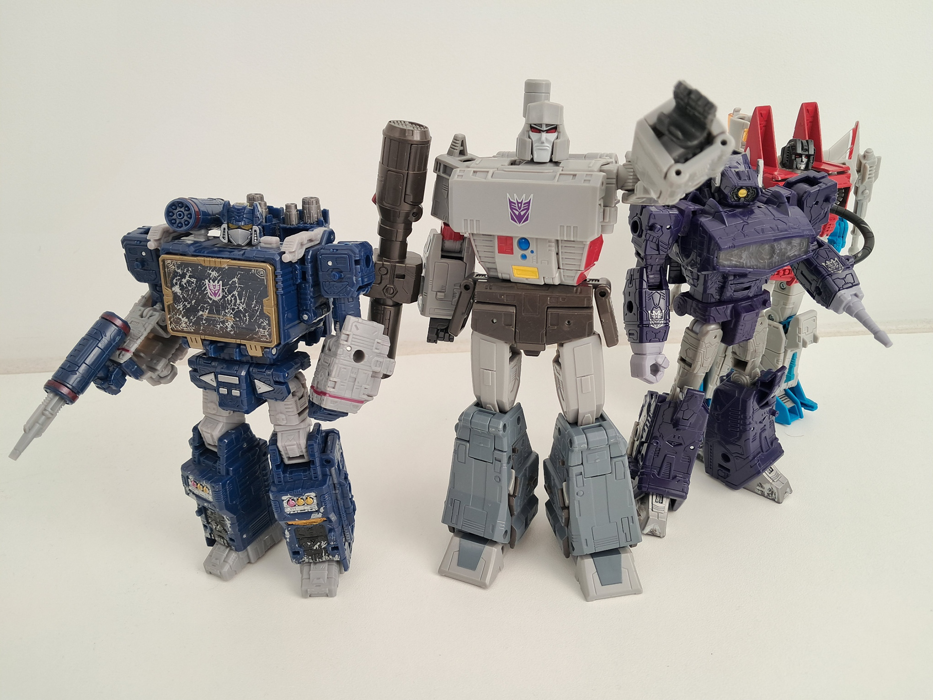 Er is veel moeite in gestoken om Megatron net aan een half kopje groter te maken dan SS'86 Optimus, en dan maakt hem gelijk met kop en schouders groter dan de rest van de Decepticons. In je collectie staat hij er bijna eenzaam tussen met zijn flinke formaat. We weten inmiddels dat er een complete SS'86 update komt van al die WFC figuren, en het is echt nodig dat er wat Cons op hun minst tot Megatron zijn schouder komen.