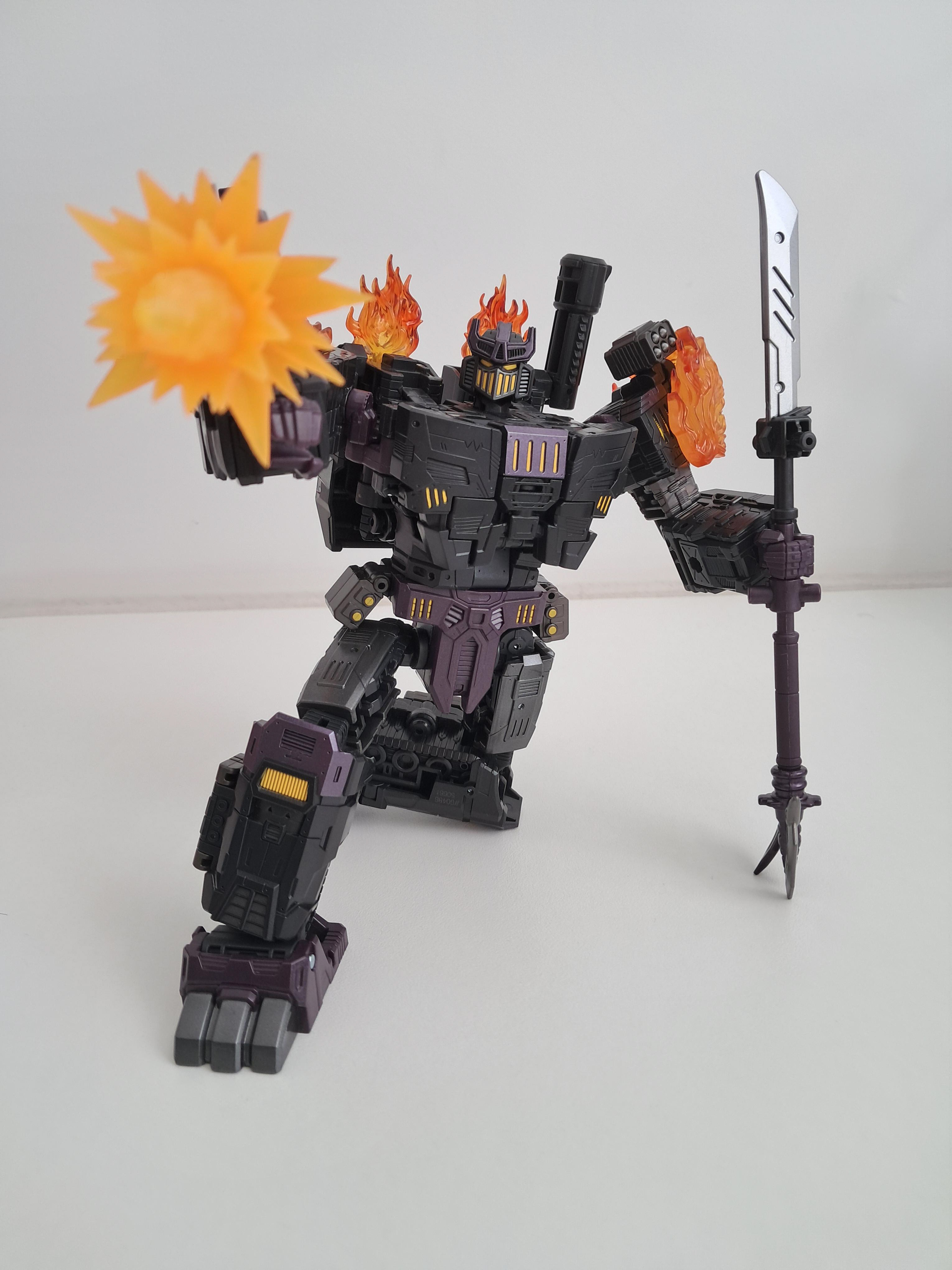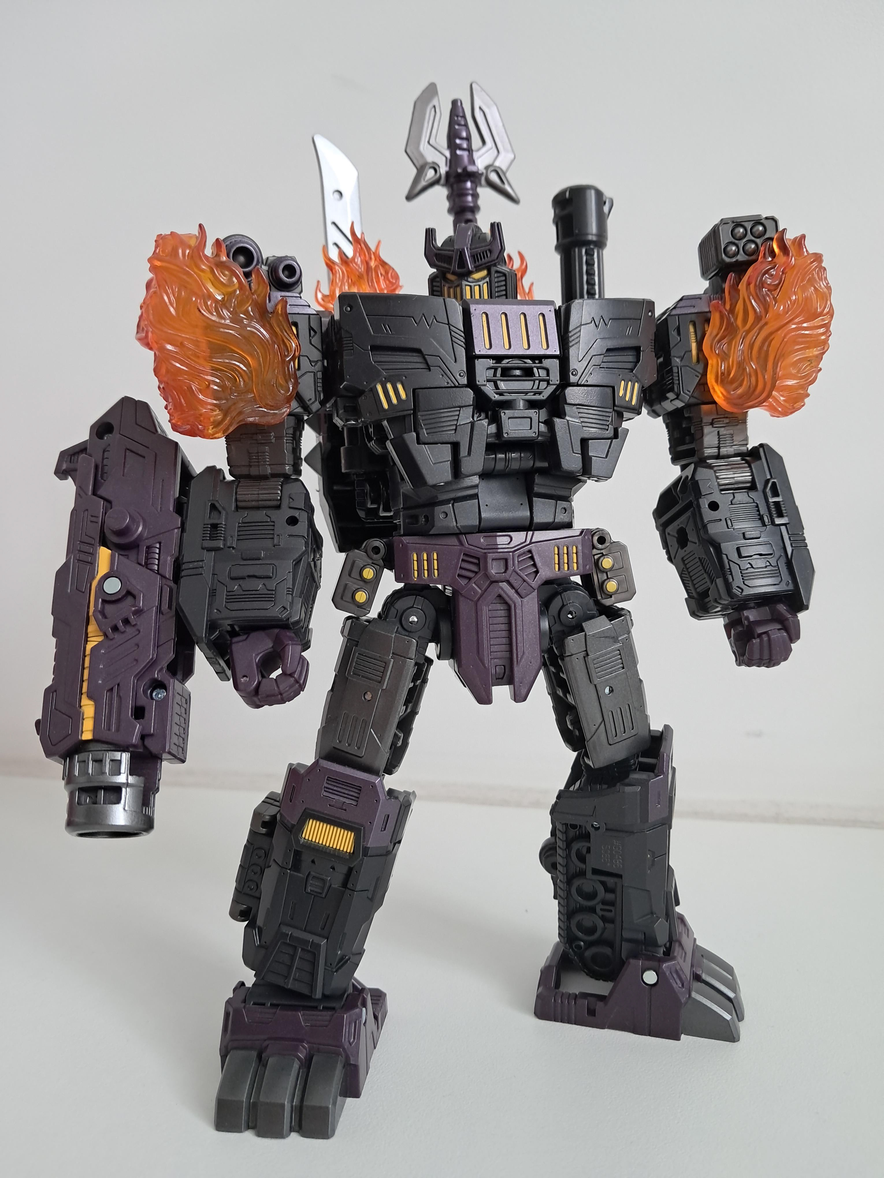 Qua extra zooi komt hij niet alleen maar met de vlammen, maar dus ook heel veel wapens. De raketlanceerder op zijn schouder en de kachelpijp op zijn rug zijn al los, maar ook het zwaard en de speer kan je los gebruiken. En dan komt hij zelf nog met allerlei zeer bewegelijke gewrichten, en een zeer goed uitgevoerde vlinderschanier in de schouders, een goed werkende nek en handen die open kunnen.
