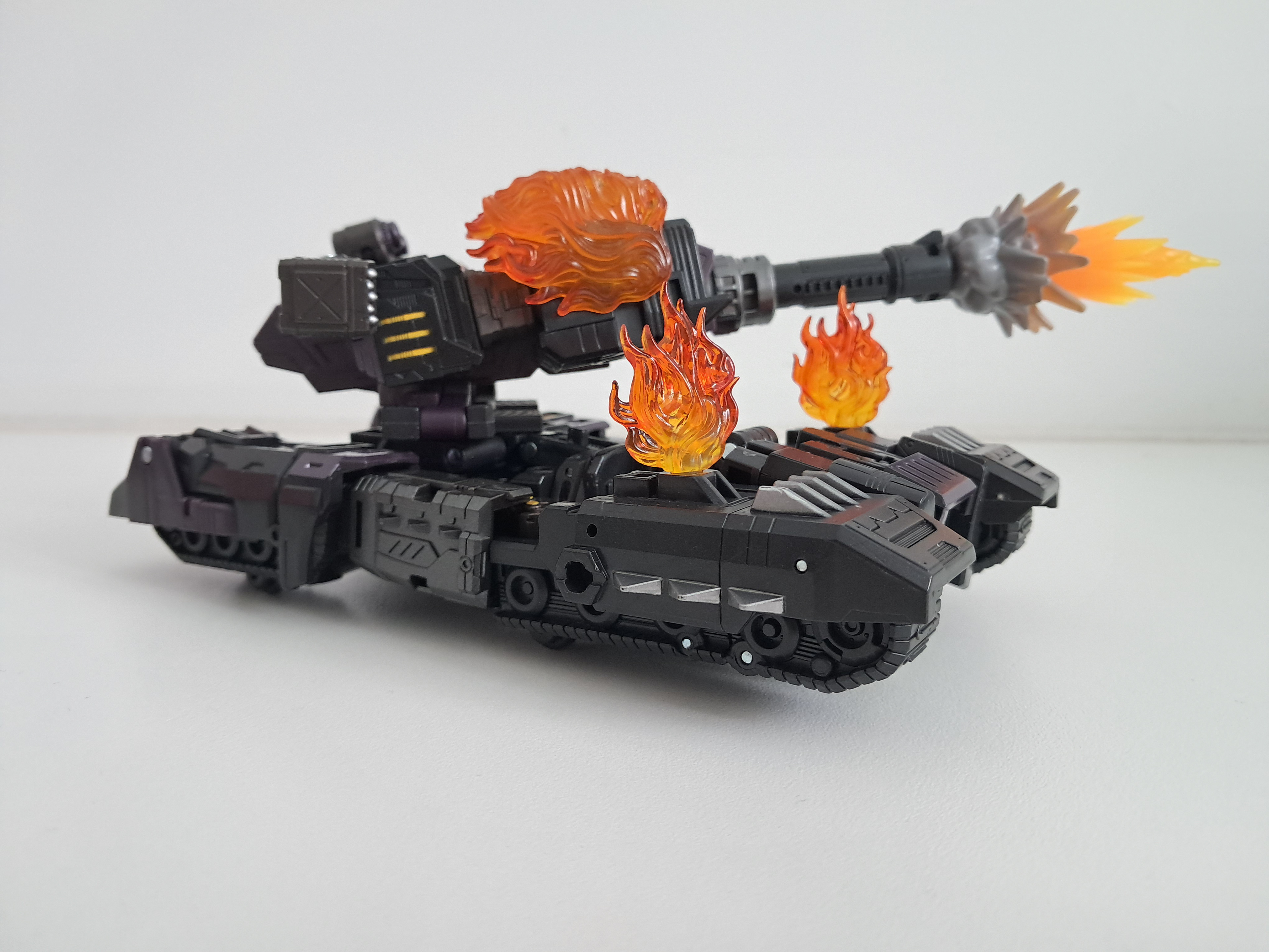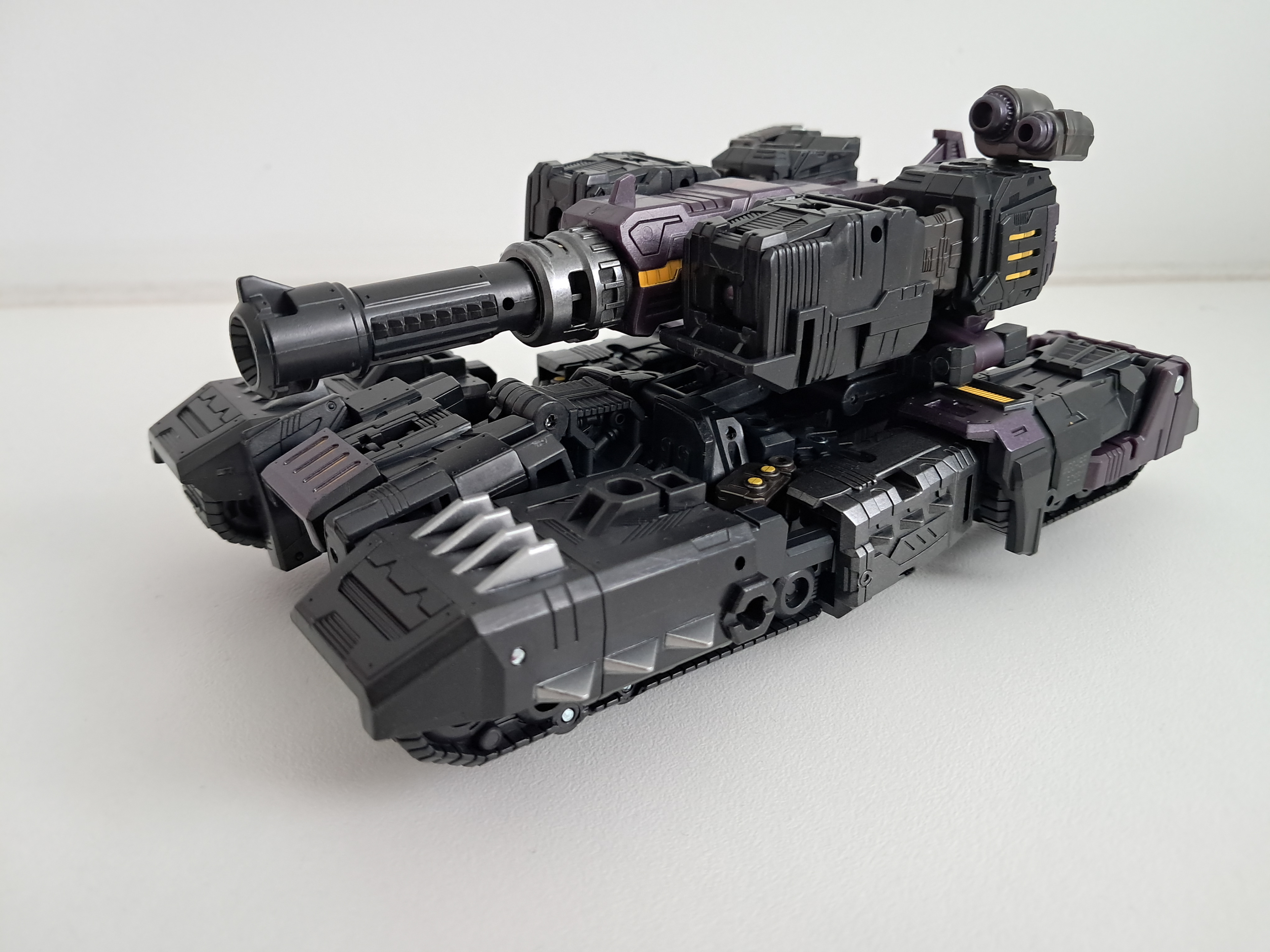 De transformatie brengt weer de tijden terug van de Leader Class figuren uit de tijd van de eerste 3 Bayformer films. Denk maar aan RotF leader Optimus Prime terug. Er komen heel veel stappen bij kijken, met heel veel dingen dat je denkt van 'da's slim gedaan'. Hoe de rupsbanden zich uitvouwen vanuit de rug, hoe de borstplaat zich om het hoofd vouwt, hoe er opeens allerlei platen tevoorschijnkomen...