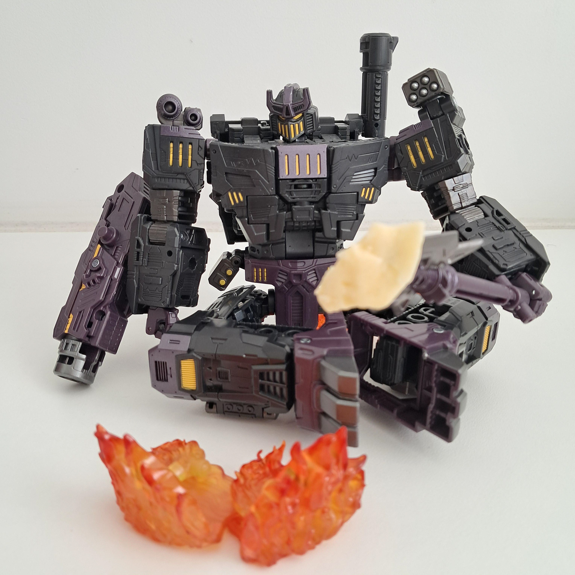 Het eerste waar we gelijk al mee starten is Megatronus zijn design. Nu is hij als karakter al in aardig wat media verschenen. Niet alleen Revenge of the Fallen, maar ook Robots in Disguise '15, de IDW comics en de Power of the Primes series van Machinema (ieuw). Maar dit design van Megatronus grijpt terug naar het design uit de Dreamwave comics, waarin hij een rondwandelende kachel was, inclusief vlammetjes en een afschuwelijke Titanium Toy.