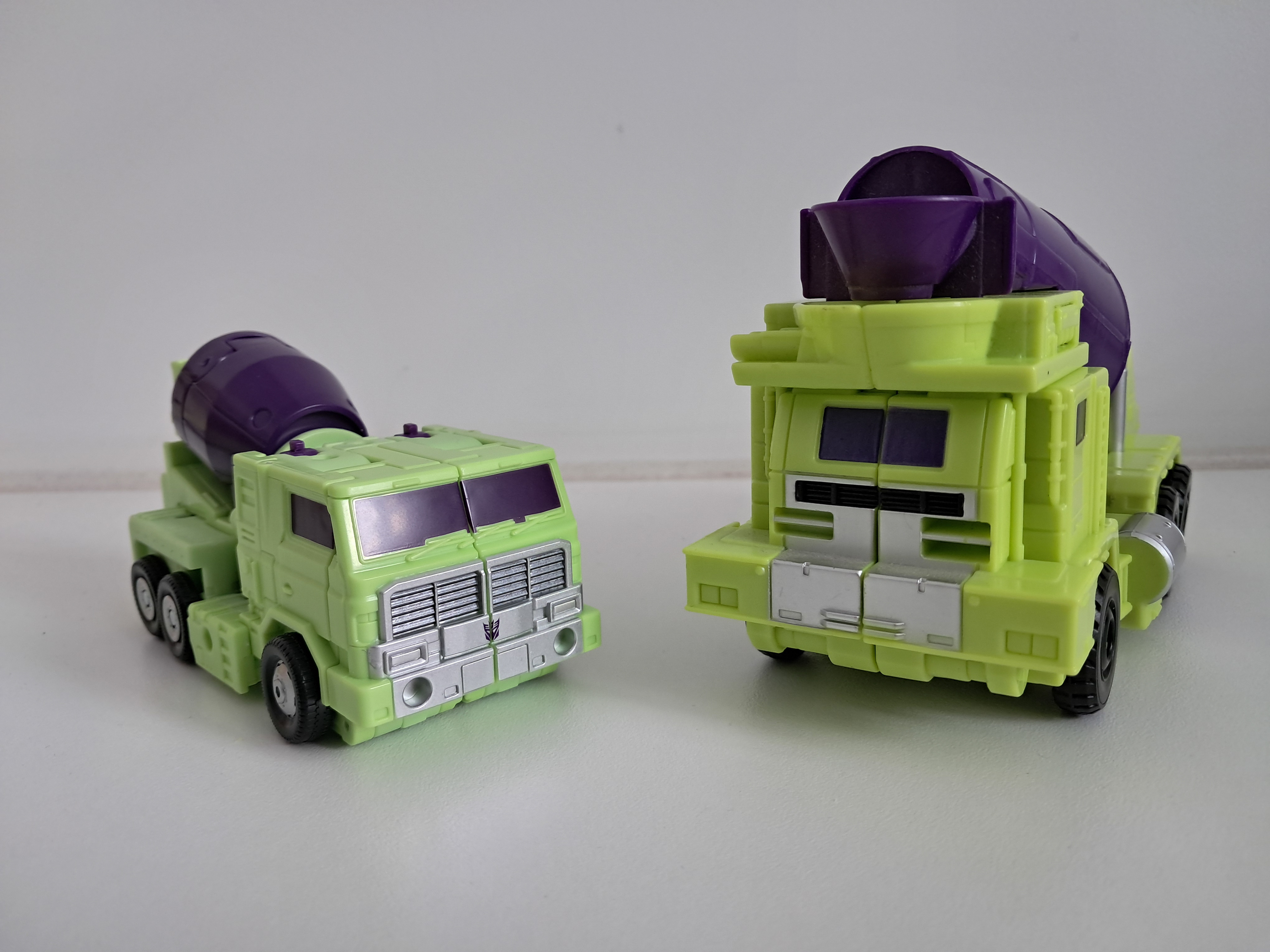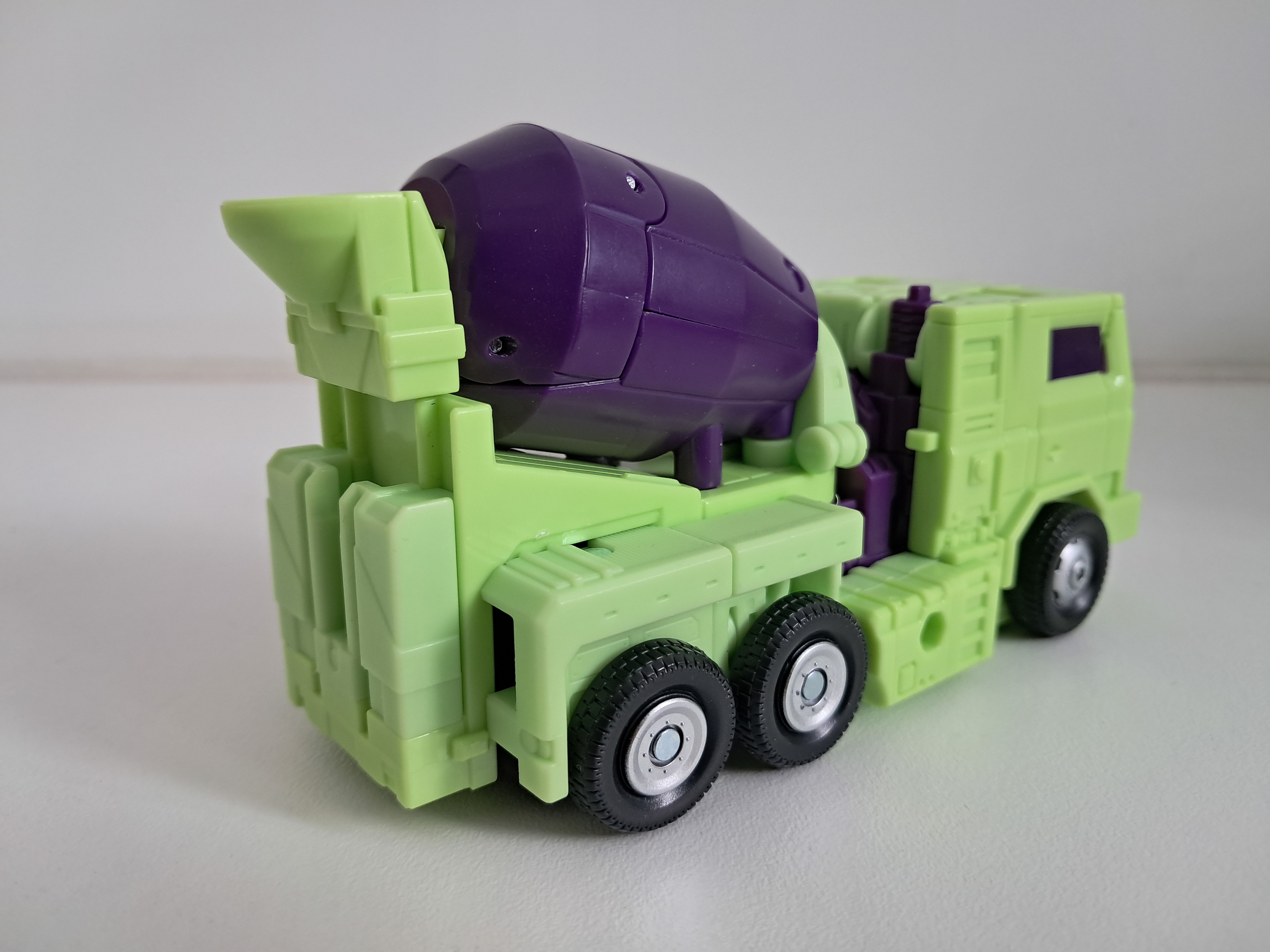 En wat ook nu de winst is, is dat Mixmaster er uit ziet als Mixmaster. De Combiner Wars versie was immers gebaseerd op Amerikaanse Cementmixers in plaats van het model wat gebruikelijk is in Europa en Azië. En in Amerika is de cementmolen naar voren gericht. Met gek genoeg een brievenbus in plaats van de cabine. Ik wist nooit echt met de Combiner Wars versie wat de voorkant was.
