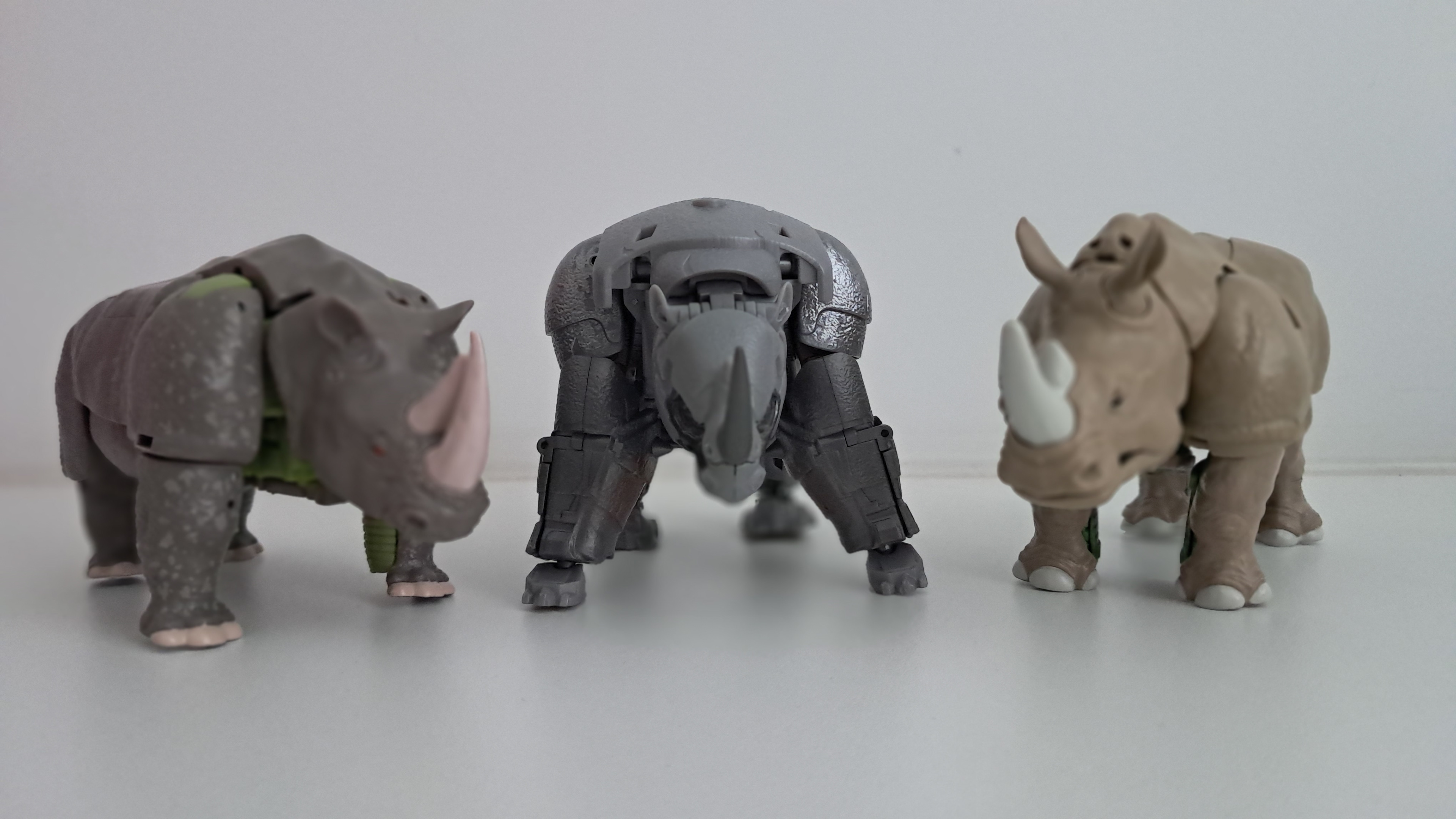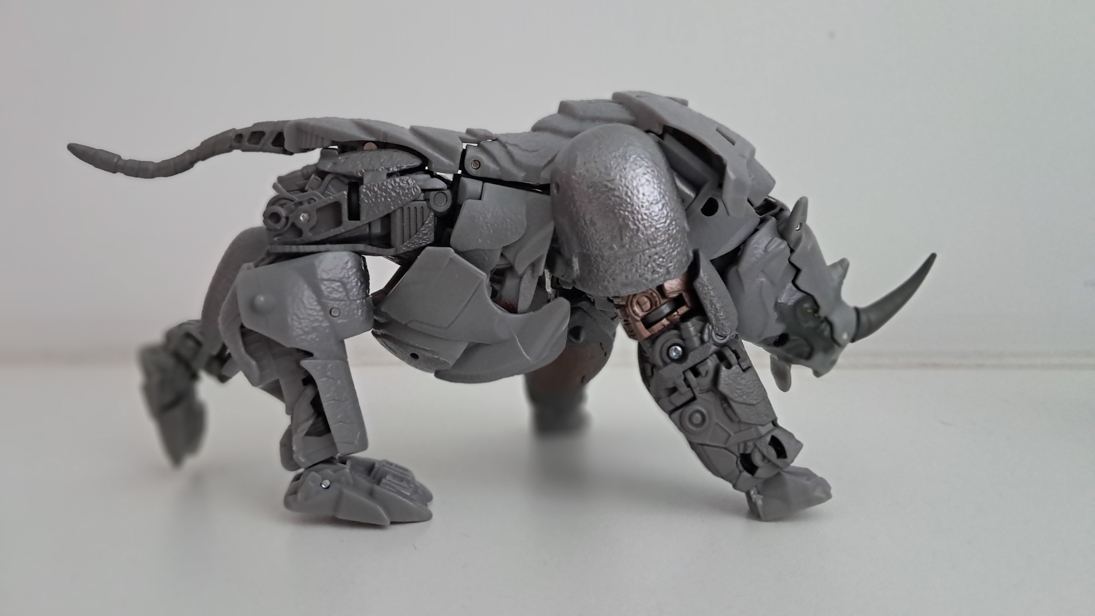 Rhinox verplaats weer een hoop van zijn bulk. Het wisselen van zijn handen naar poten gaat wel wat lastiger dan je zou denken, bemoeilijkt bij mij door de zwakke panelen. Maar het is een totale verademing vergeleken de Thrilling 30 of nog erger, de Kingdom versie van Rhinox. Beiden zijn een nachtmerrie om te transformeren met allemaal onderdelen die ruzie zoeken met elkaar. Daarmee vergeleken is dit de fijnste Rhinox ooit.