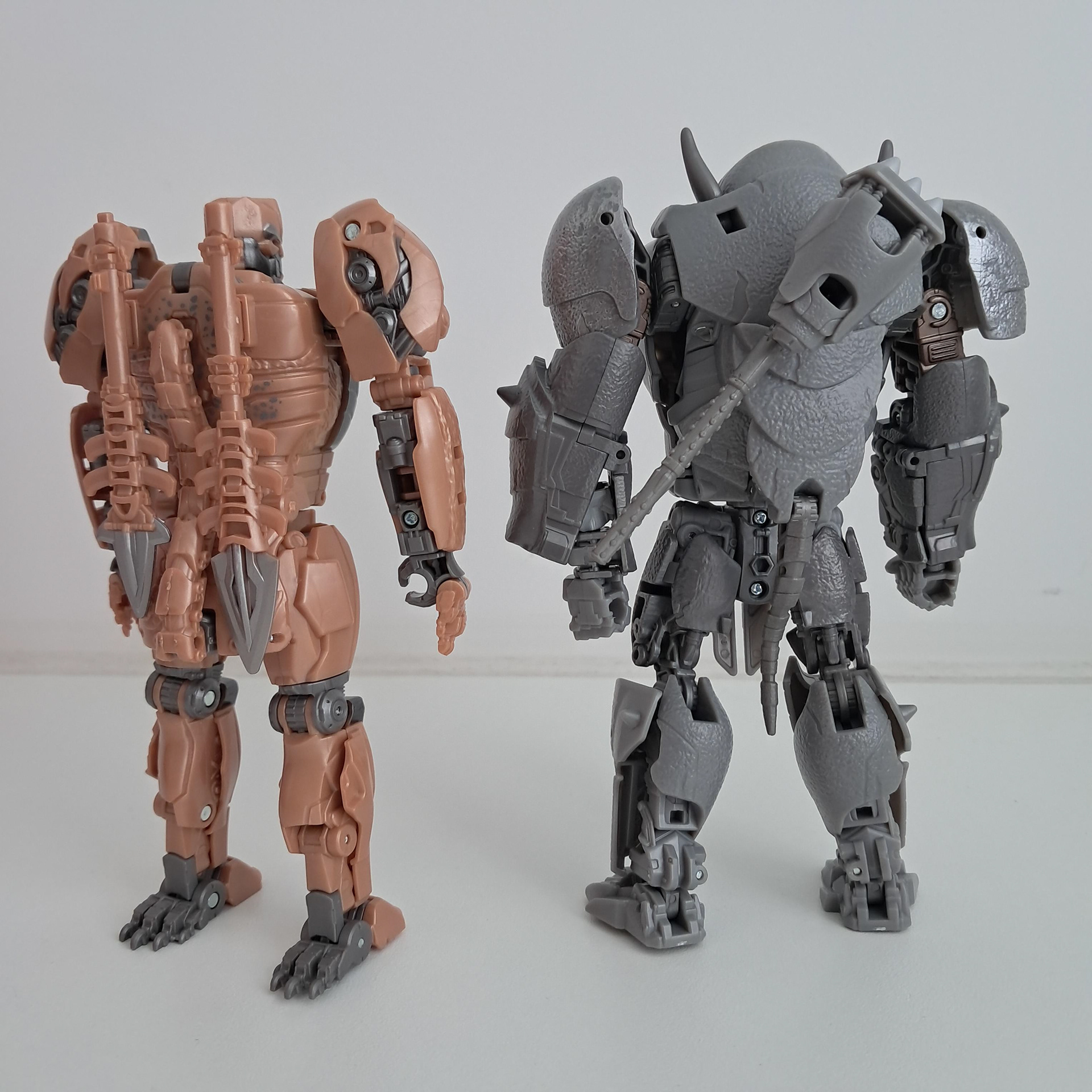 Qua beweging zitten ze tip top in elkaar. Zeker Cheetor zijn enkels bieden heel veel bewegingsvrijheid. Het is wel jammer dat Rhinox zijn armpjes net ietsje te kort zijn naar mijn smaak, waardoor hij nooit echt zijn hamer goed vast kan houden. Plus zijn hoofd is lastig te bewegen. Maar beiden hebben wel een middel waar je u tegen zegt, en fijne roterende polsen.