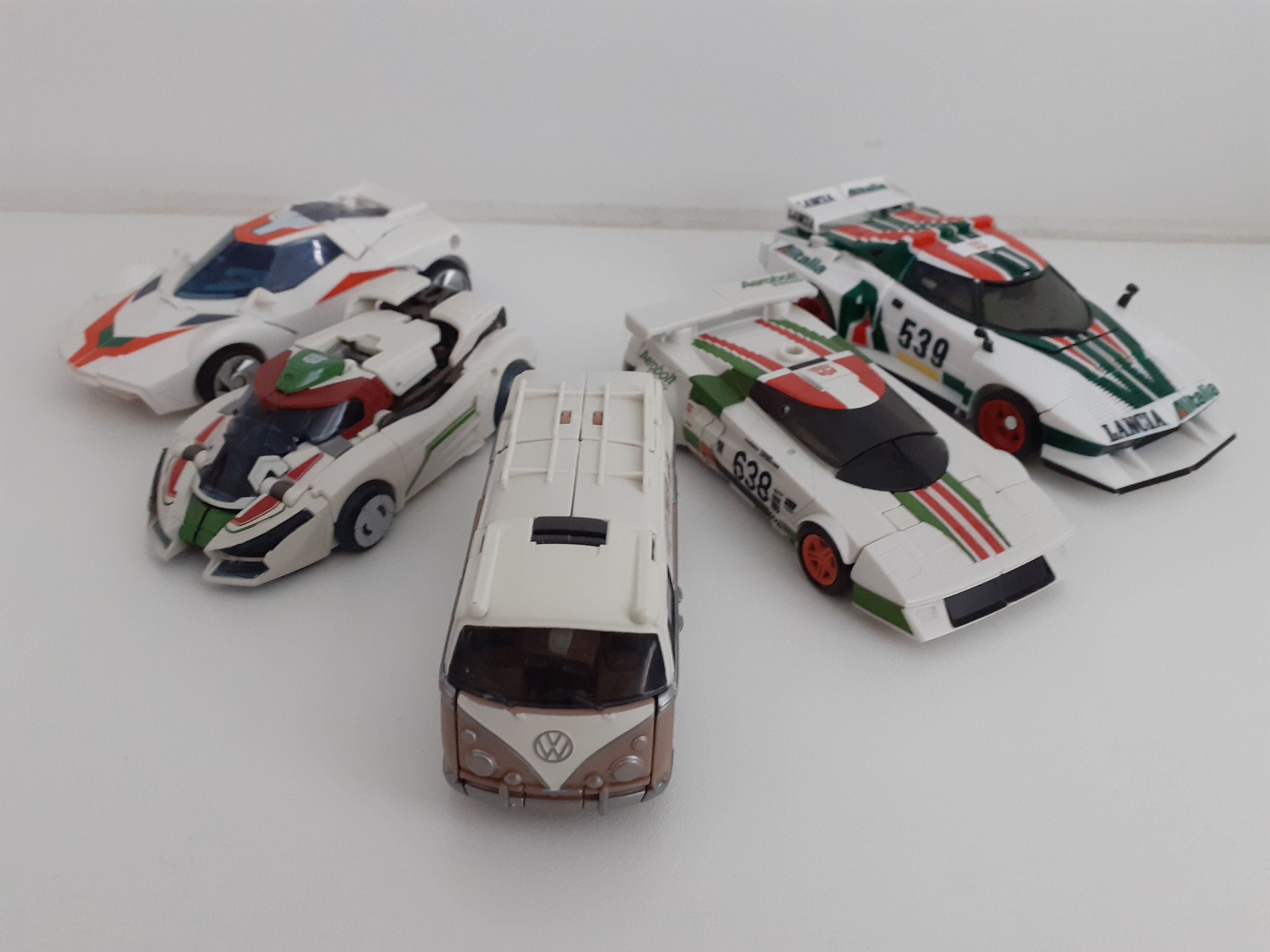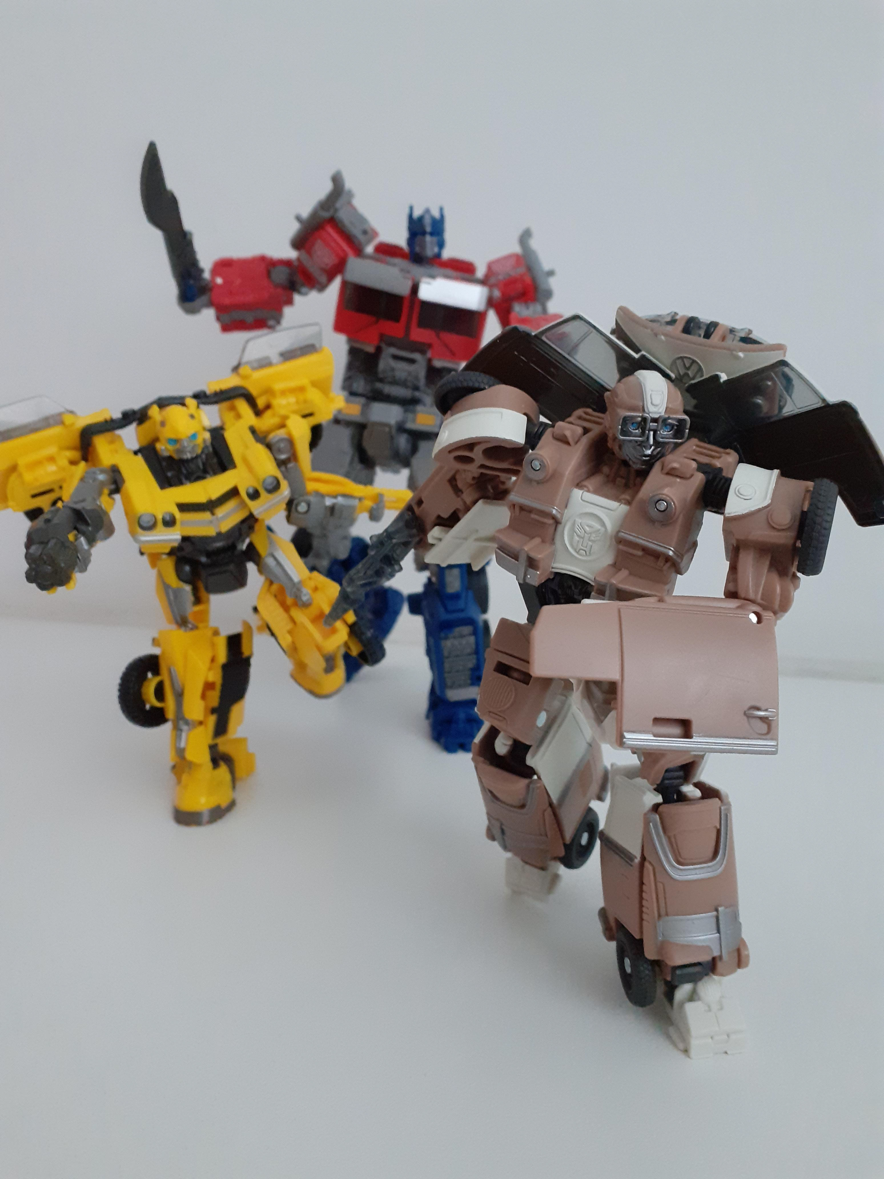 En hij doet het ook niet veel beter tussen de rest van de Wheeljacks. Ik vind het opvallend dat hij zelfs kleiner aanvoelt als BBM Wheeljack, terwijl die in robot mode toch echt kleiner is. SS RotB Wheeljack voelt echt alsof hij aan mass-shifting doet.