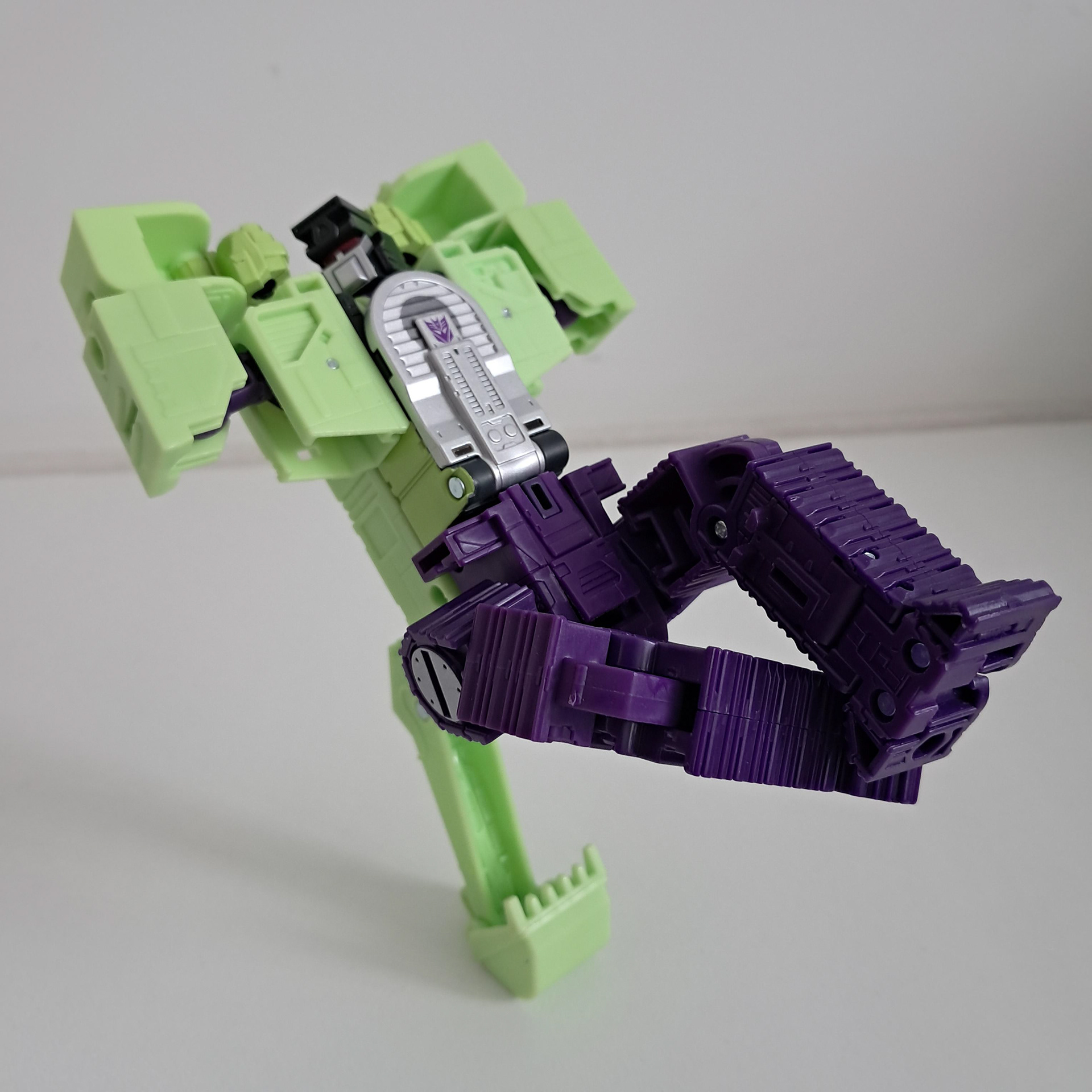 En tja, het wacky design zagen we al bij de Combiner Wars versie.... maar toch beter uitgevoerd. Het uitschuiven van de beentjes gaven hem flink betere proporties, de vuisten kwamen tenminste onder uit de armen in plaats van de zijkant en het broekje was kleiner. Ergens voelt het toch alsof we een stap achteruit gaan met deze Scavenger.