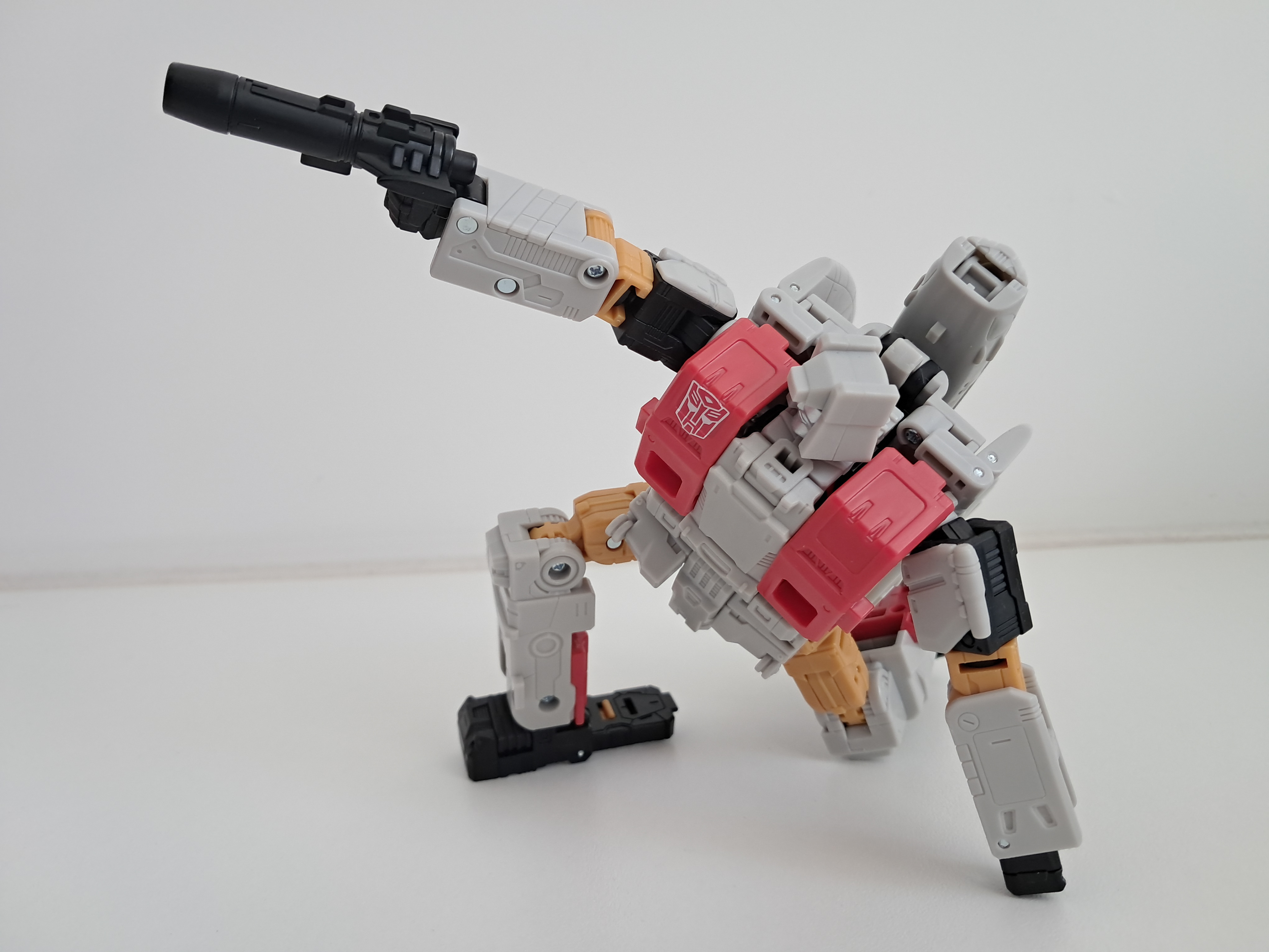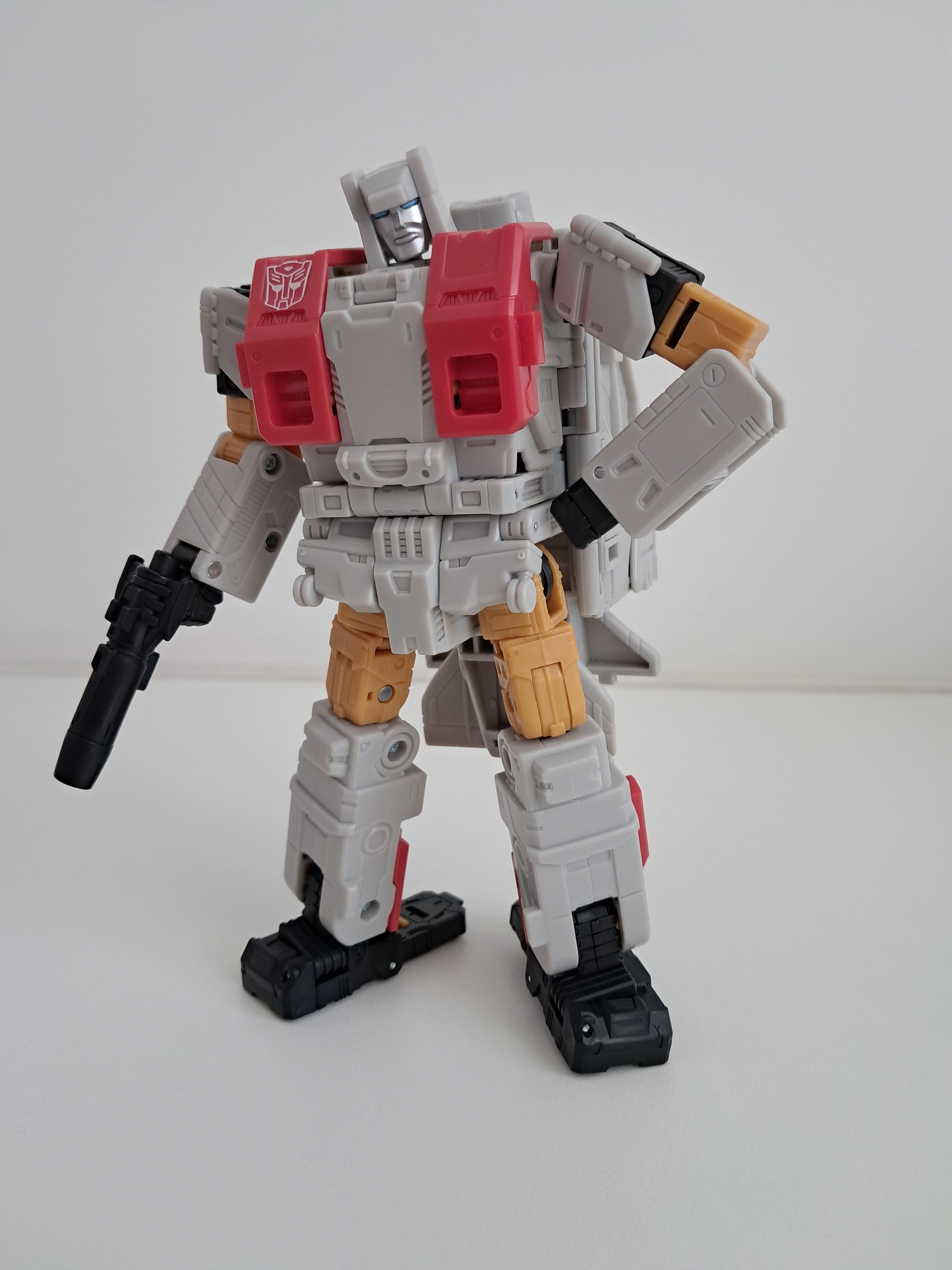 Qua gewrichten zit alles goed hoor, aar er zijn simpelweg weinig poses waarin hij er cool er uit ziet. Hij mist een middel, er zit een hoop zooi op zijn rug en zijn hielen steken wel heel erg uit. Het probleem is ook dat zijn middel nauwelijks goed in elkaar wilt passen omdat zijn Superion hoofd eigenlijk te groot voor hem is, tenzij je de moeite doet zijn antennes te verwijderen.