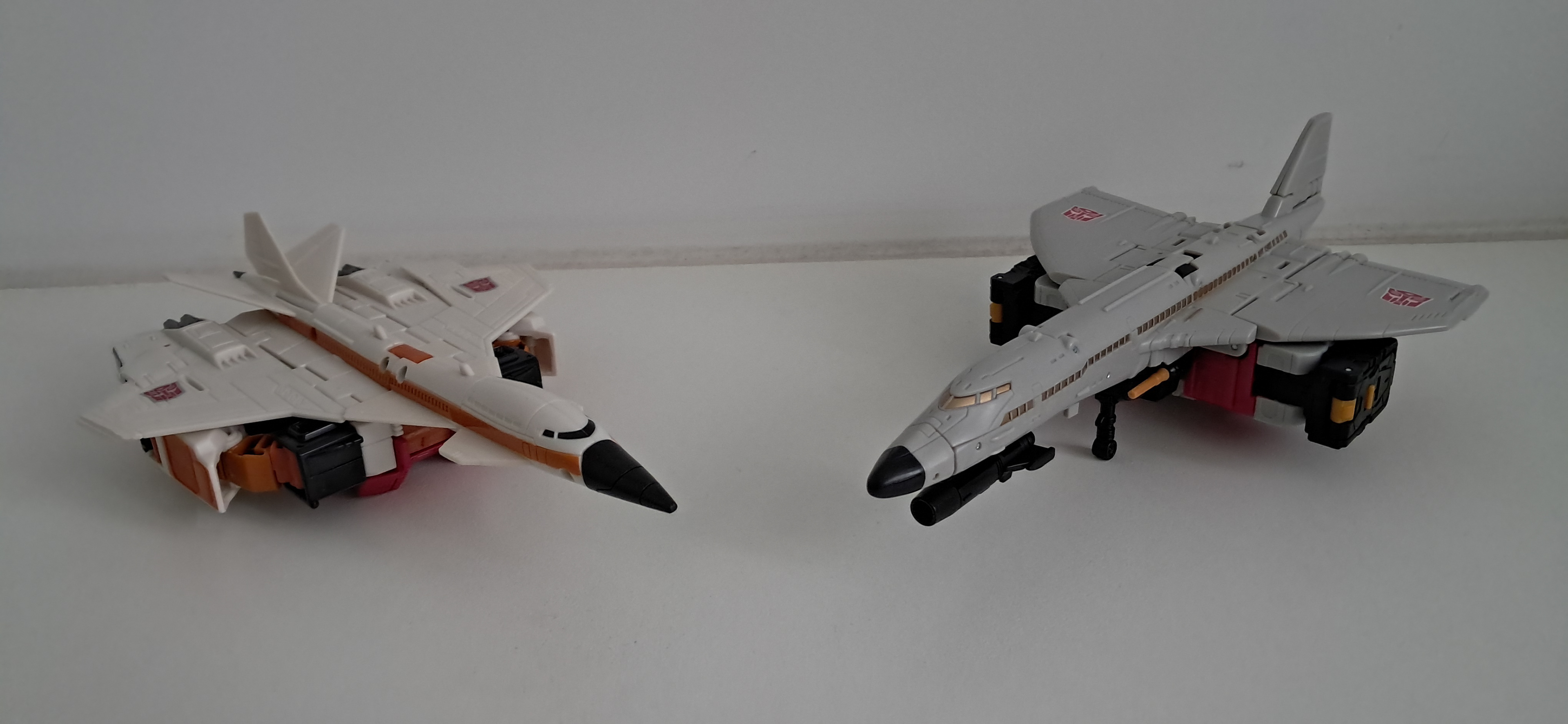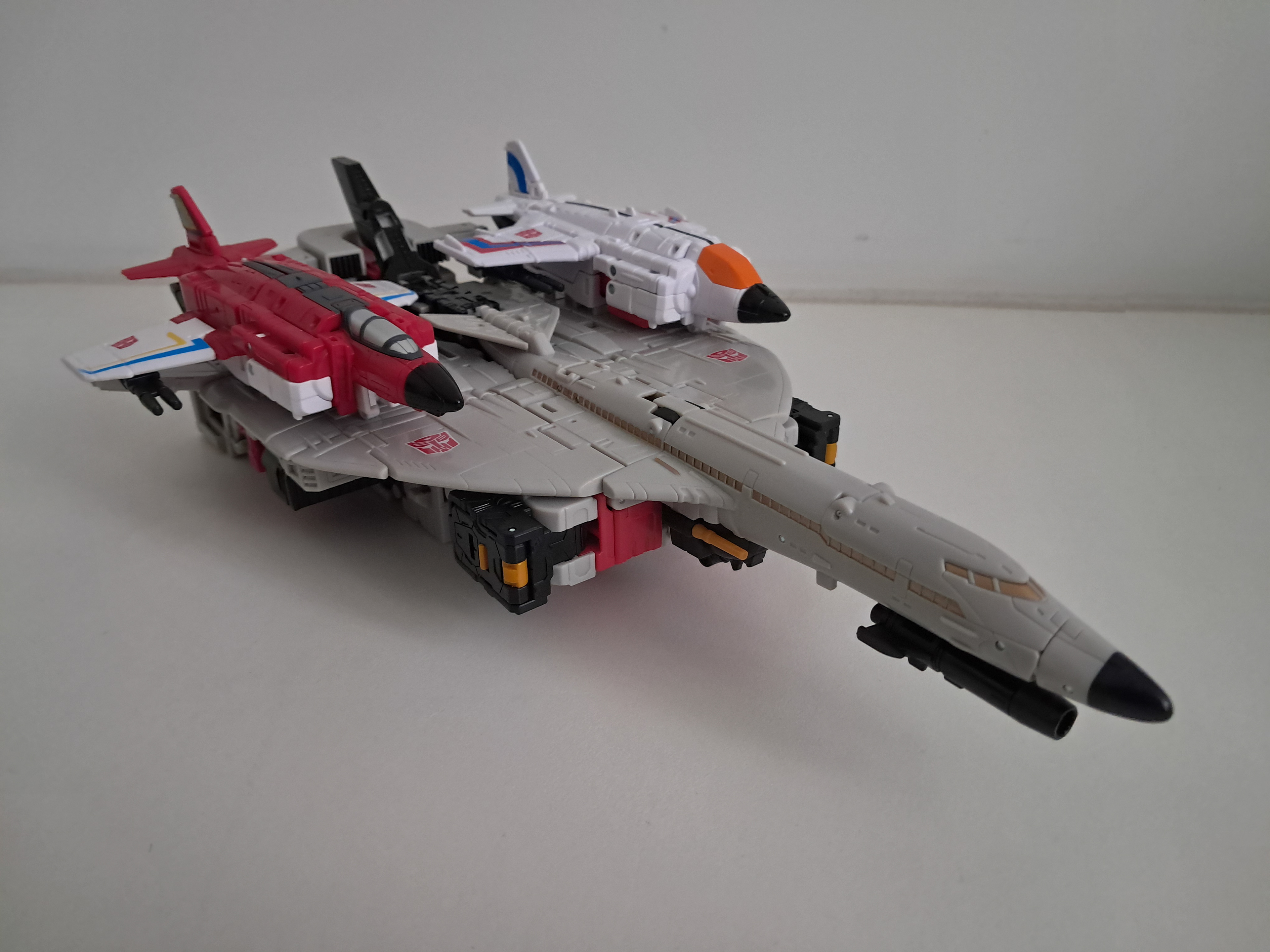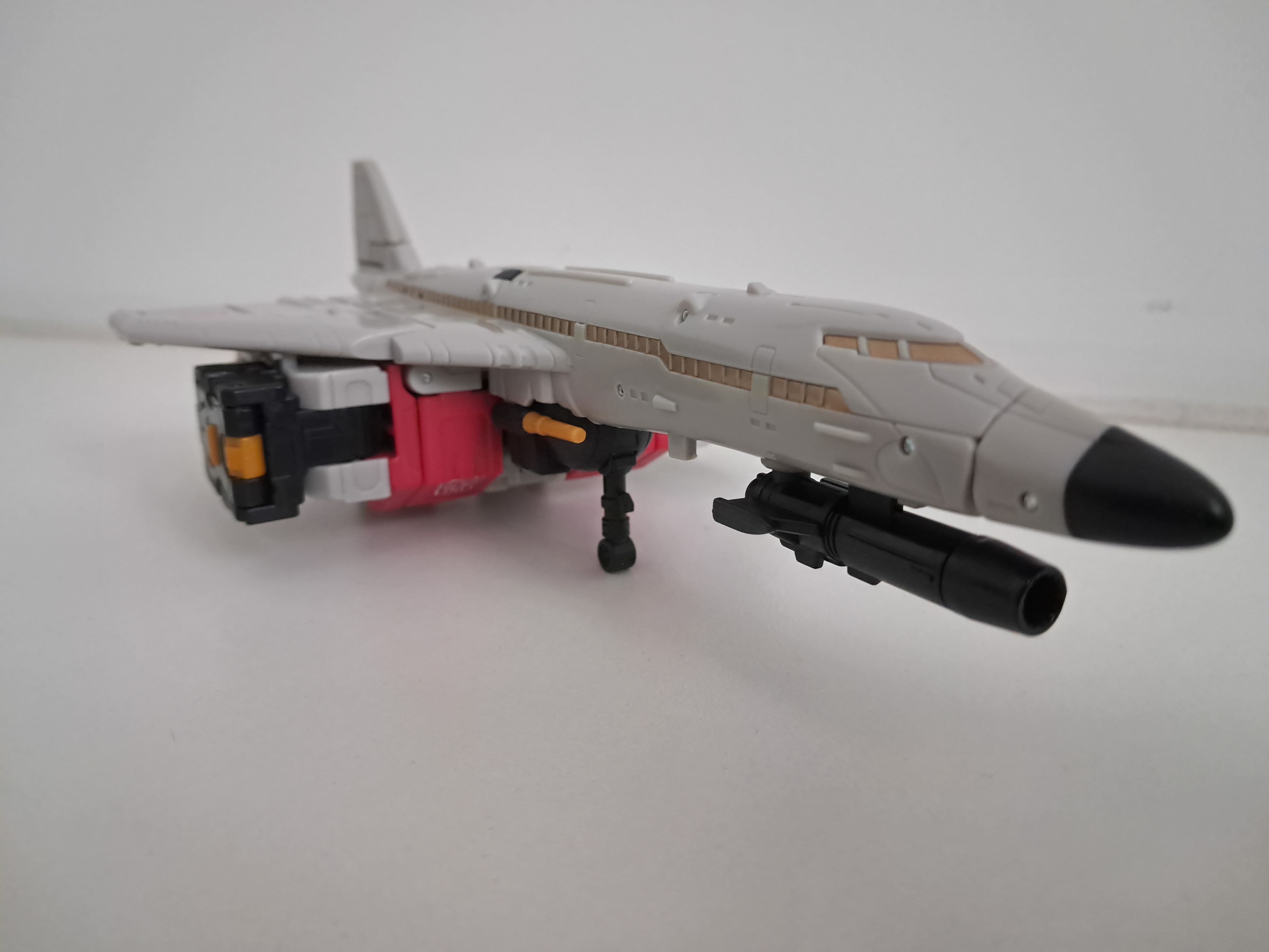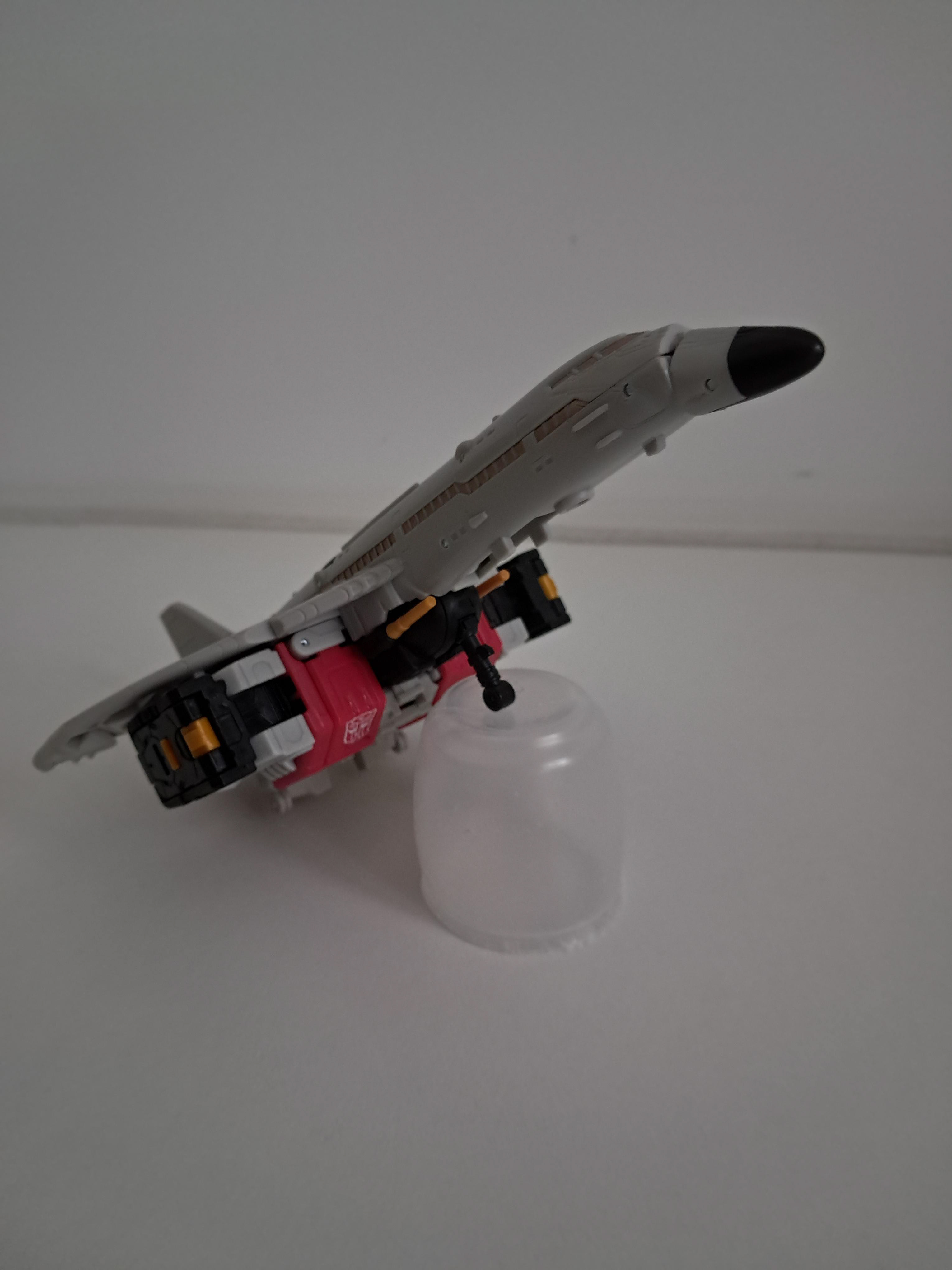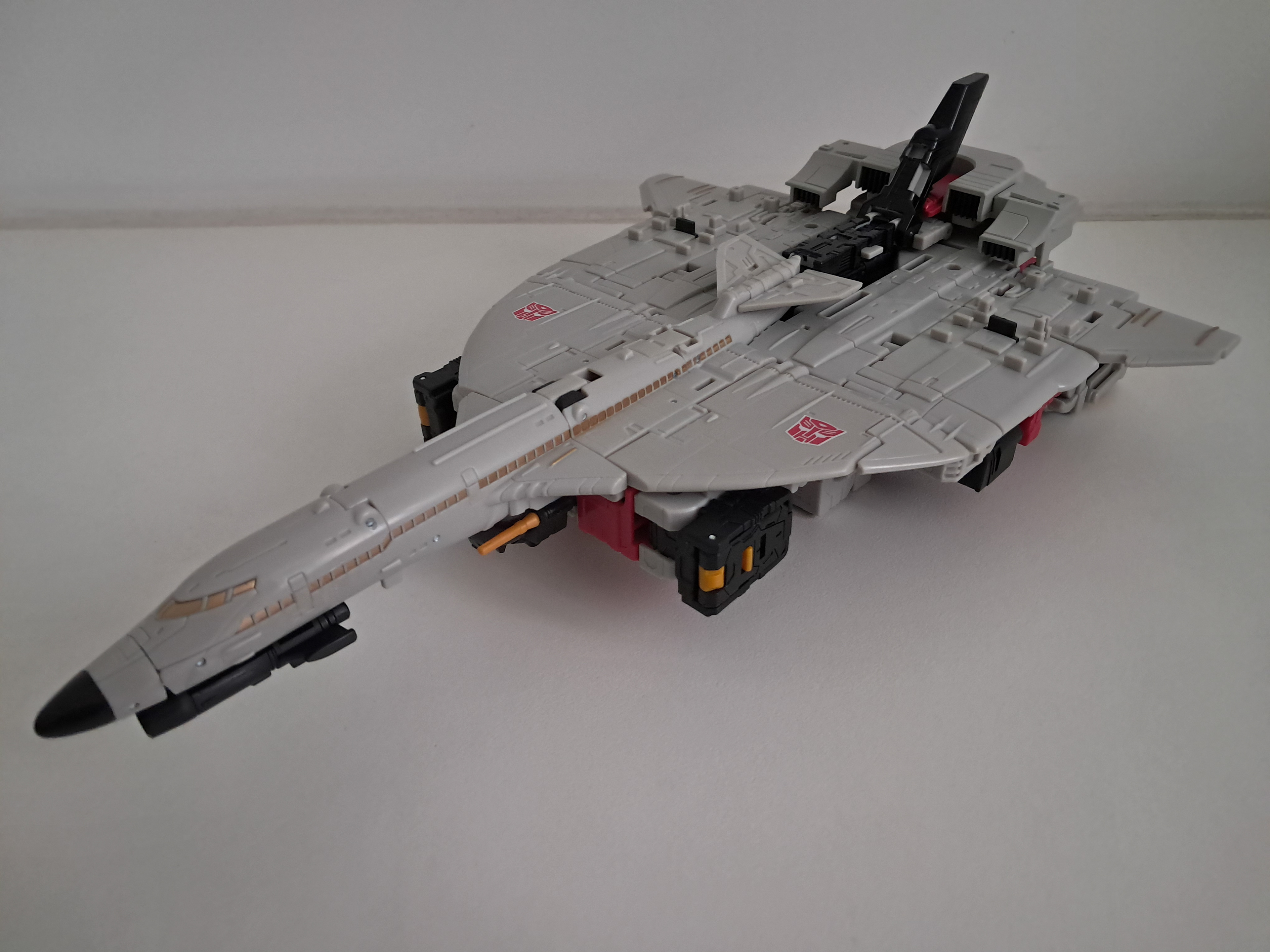 Als vliegtuig is het een standaard Silverbolt verhaal. Je hebt een opgevouwen robot ergens onder een vliegtuig handen dat eigenlijk veel te lang en slank is om er zulk uitgezakt lichaam onder te hangen. Het is leuk dat je er een behoorlijk landingsgestel bij krijgt, zeker met de achterwielen aan zijn kruis flappen.