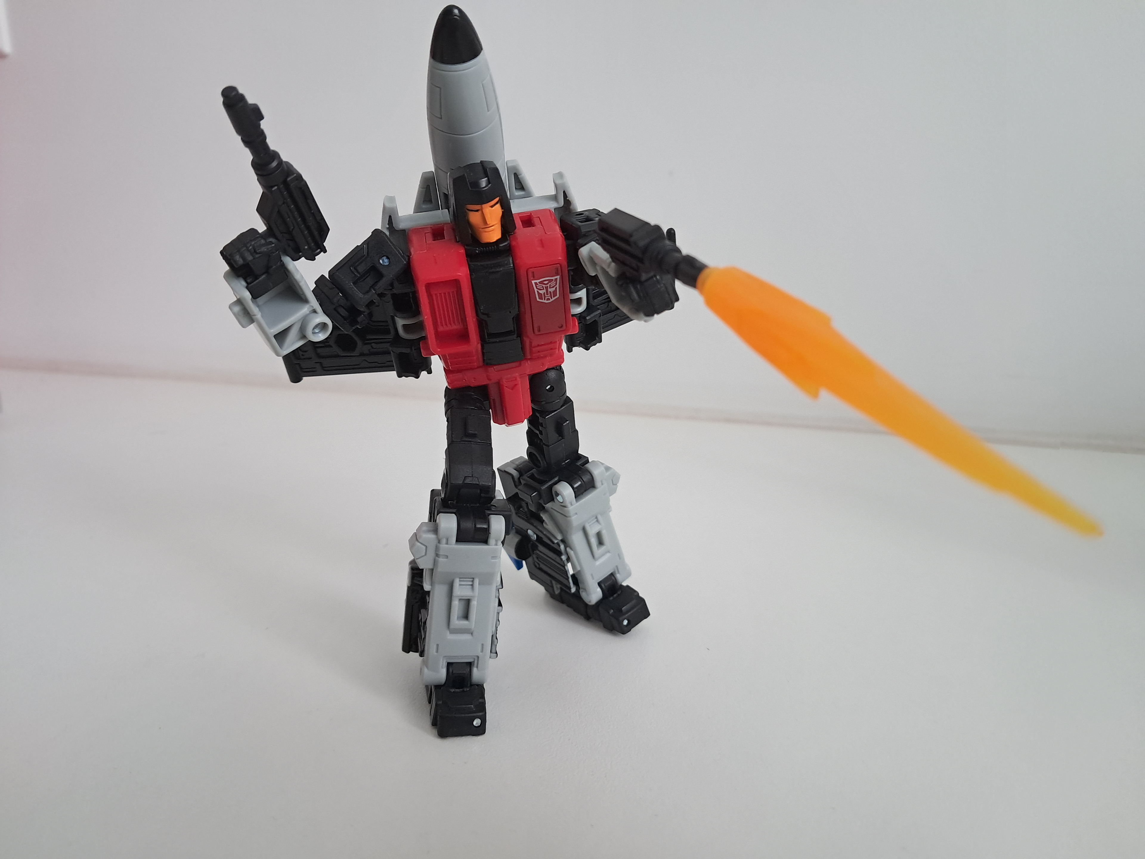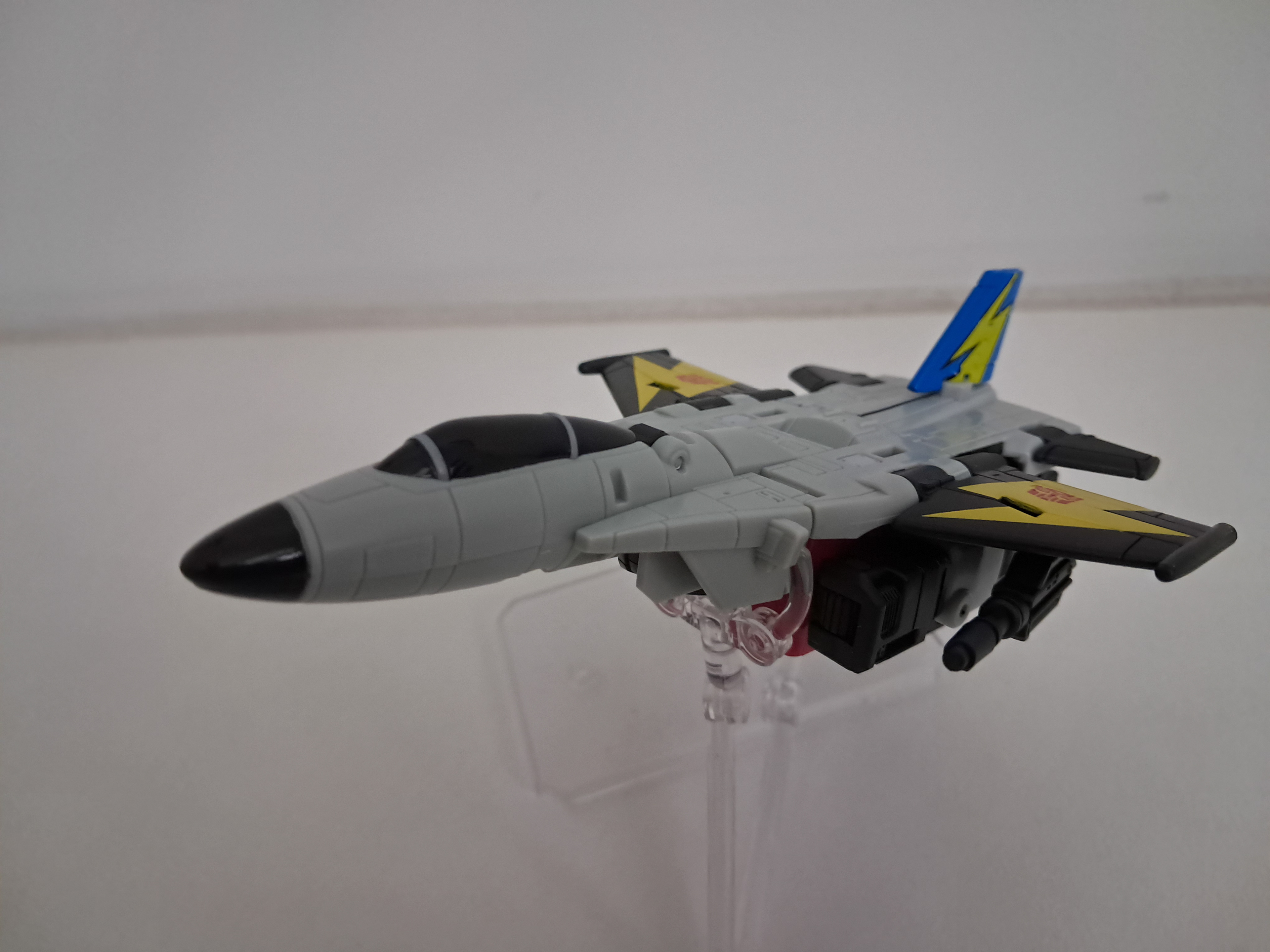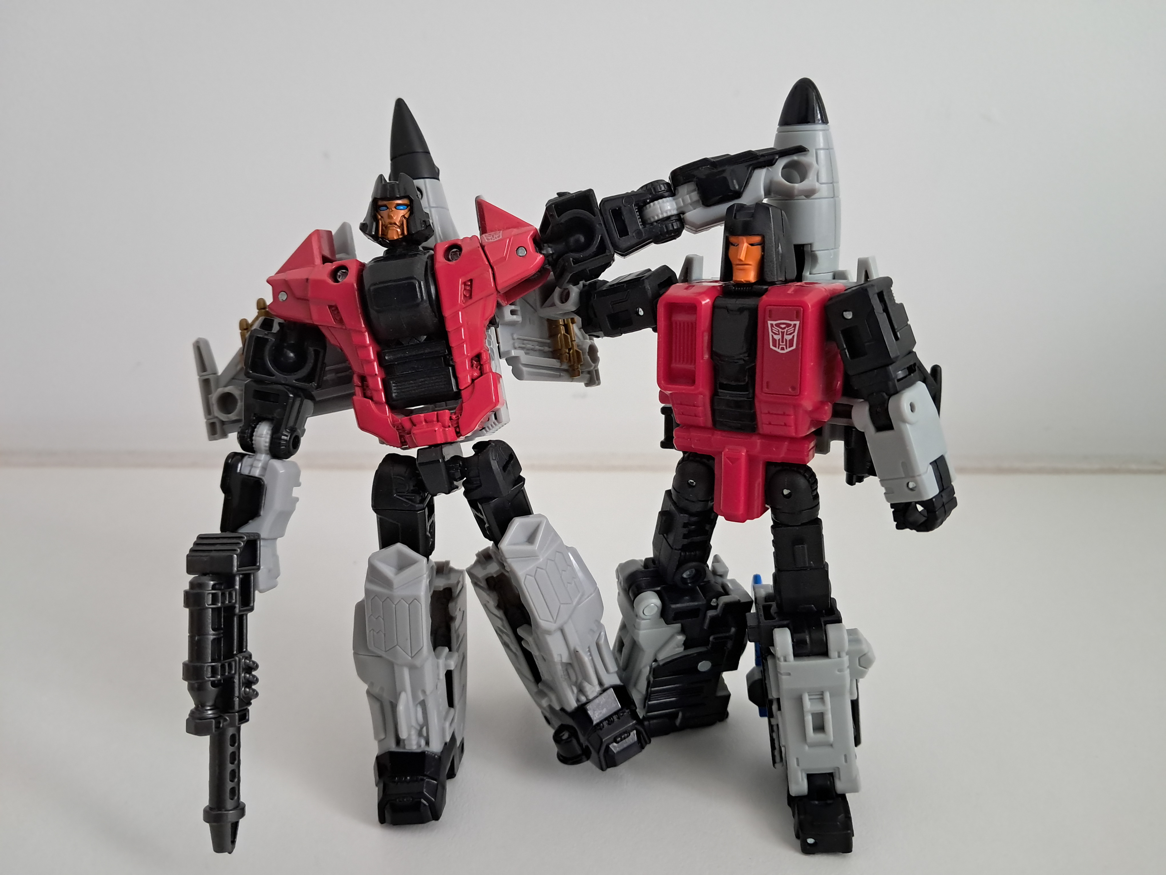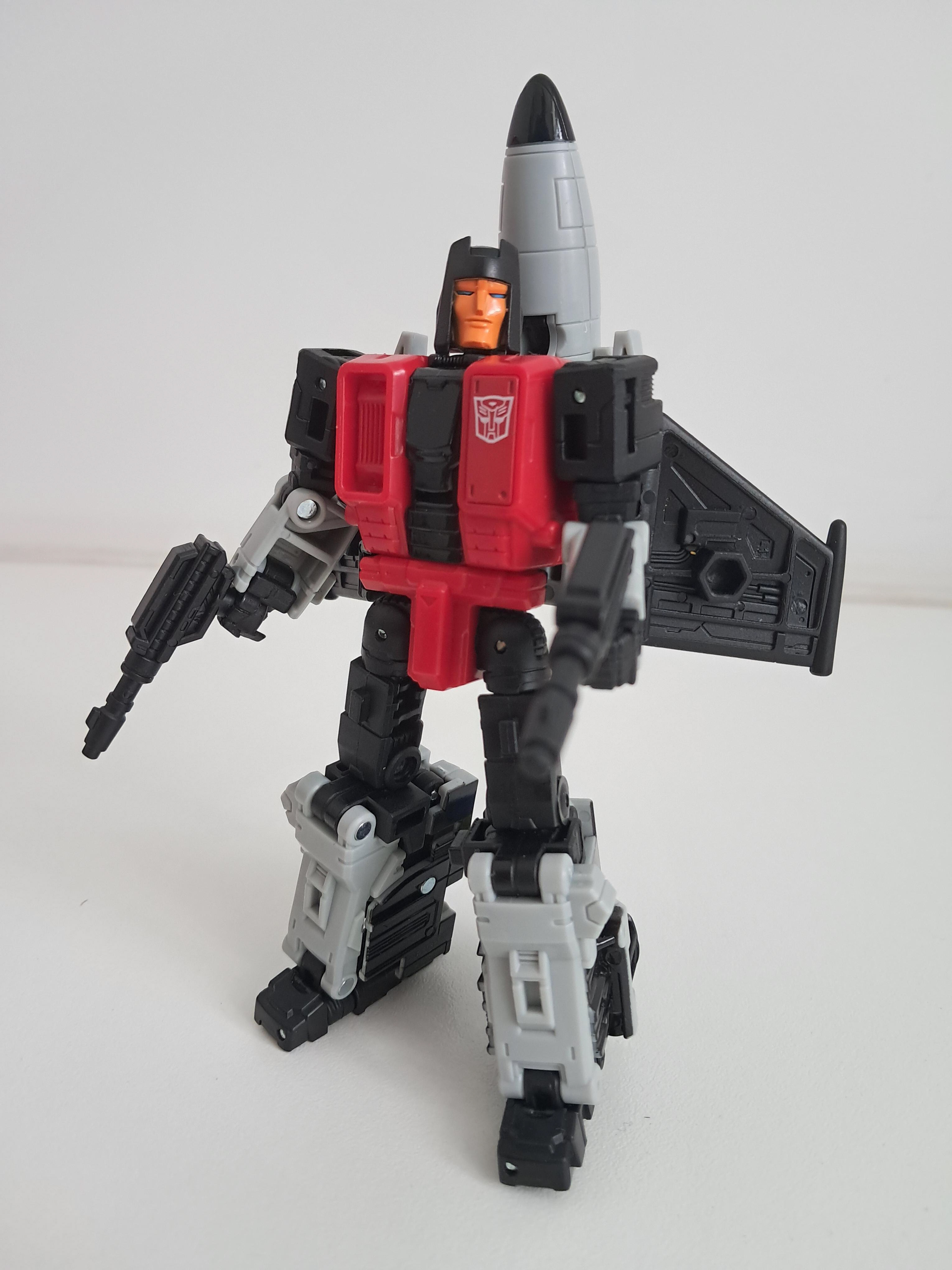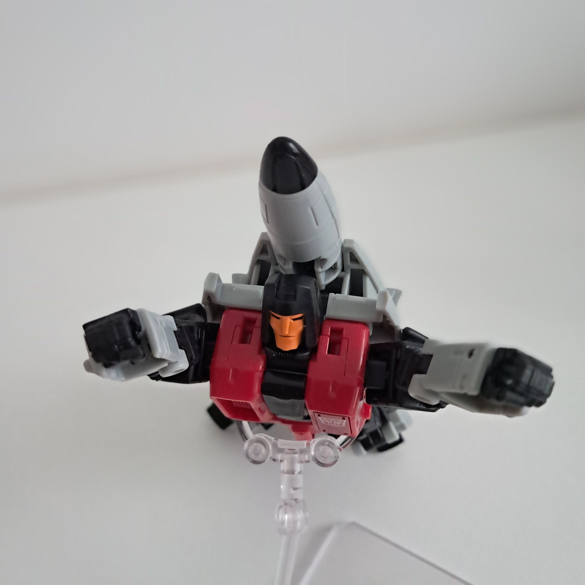 En waar ik bij Fireflight nog zat te zeuren dat hij totaal geen uitstraling had vergeleken de Titans Return versie, brengt Skydive juist al de verbetering. In ieder geval zit hij nu niet meer met een Bayformer kop en is zijn kruis meer dan een blokje. Skydive heeft echt zijn zaakjes op orde.