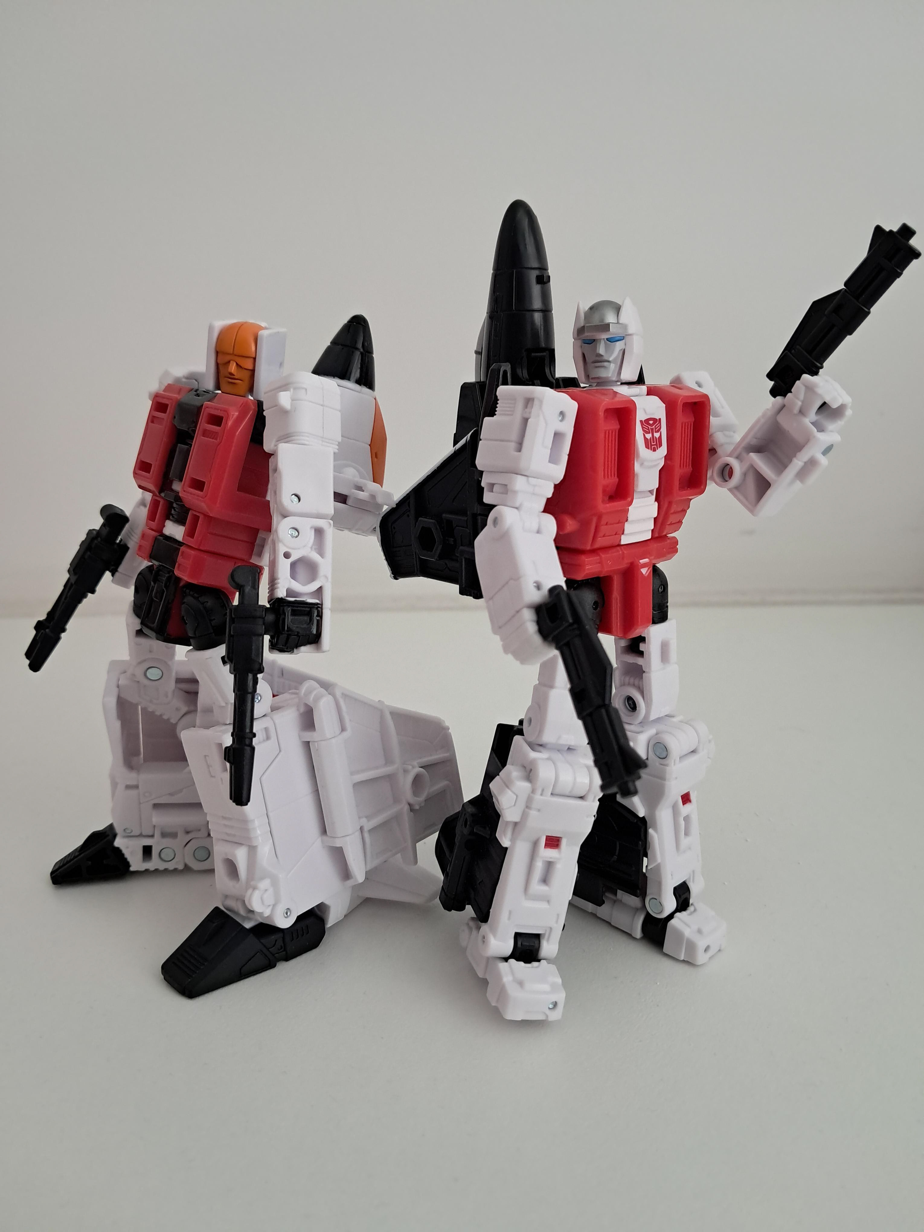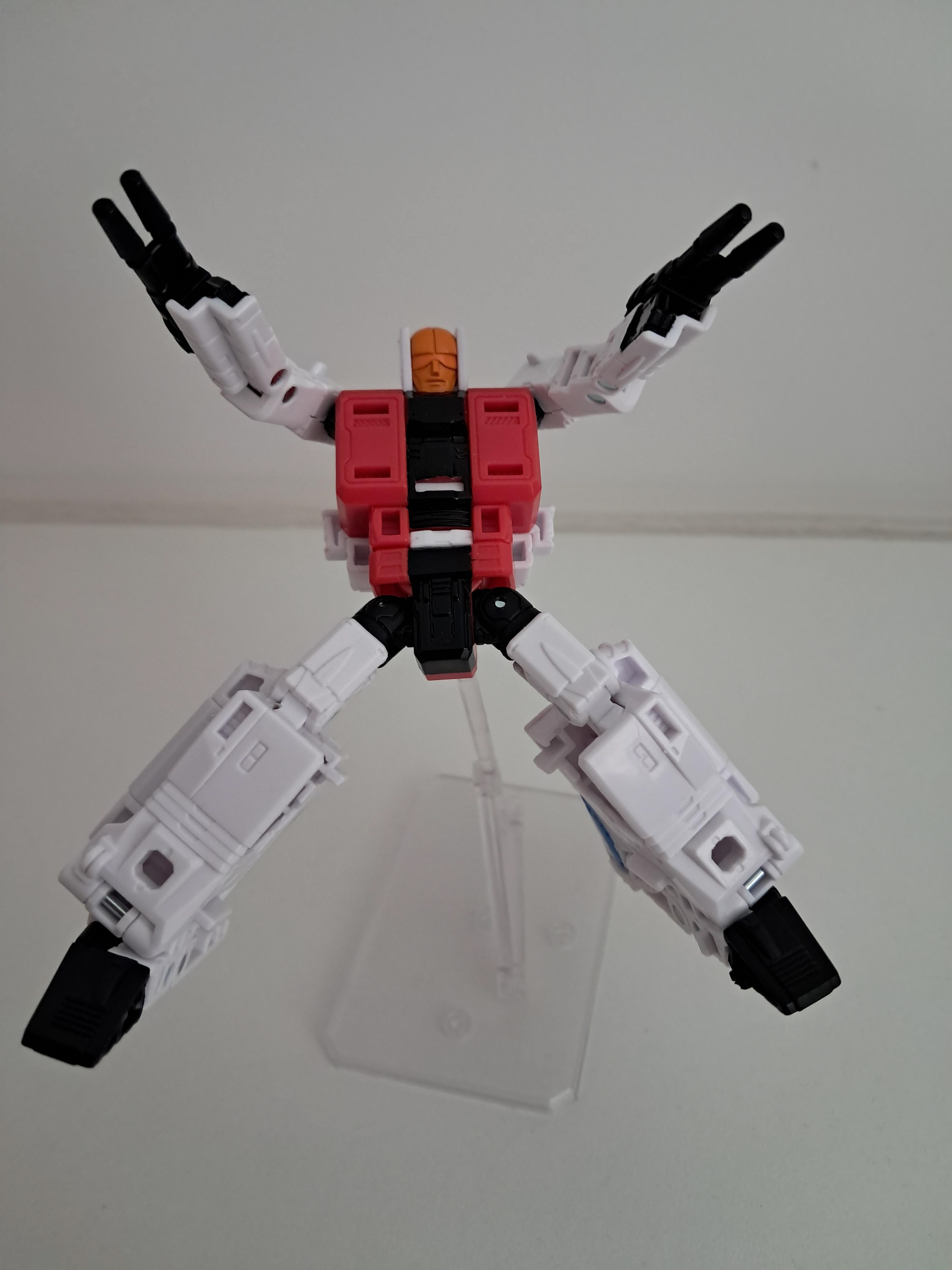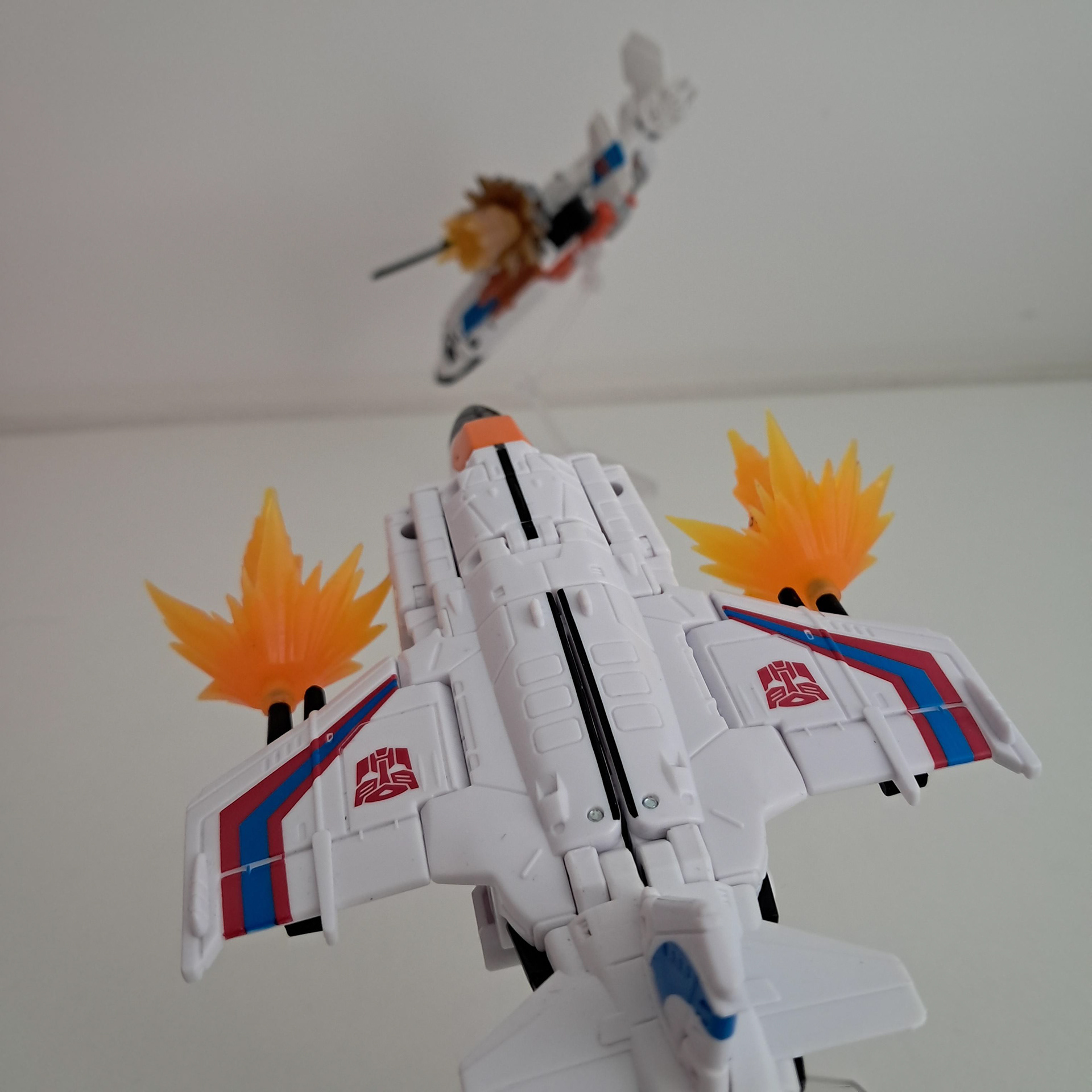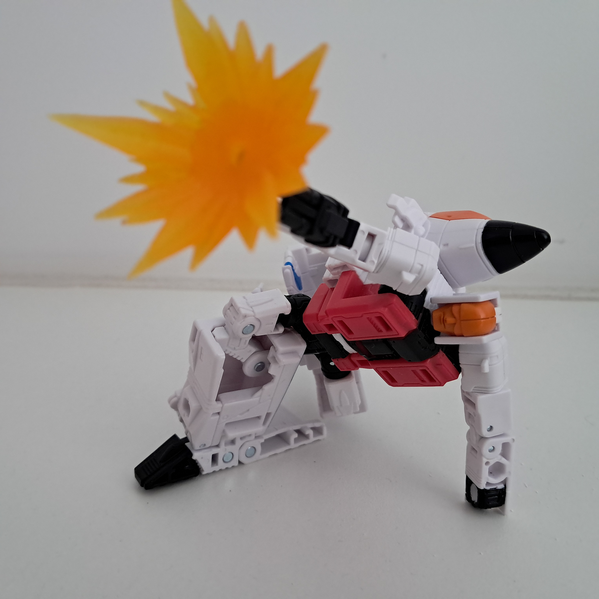 Daarnaast is hij ook geen vliegtuig met een robot er onder gepropt, maar zit alles heel goed en toch simpel verwerkt in de alt-mode. Nu wordt pas goed duidelijk wat hij doet met zijn onooglijke armpjes. En er komen meer details tevoorschijn zoals de zwarte streep op de rug die heel veel voor hem doet.