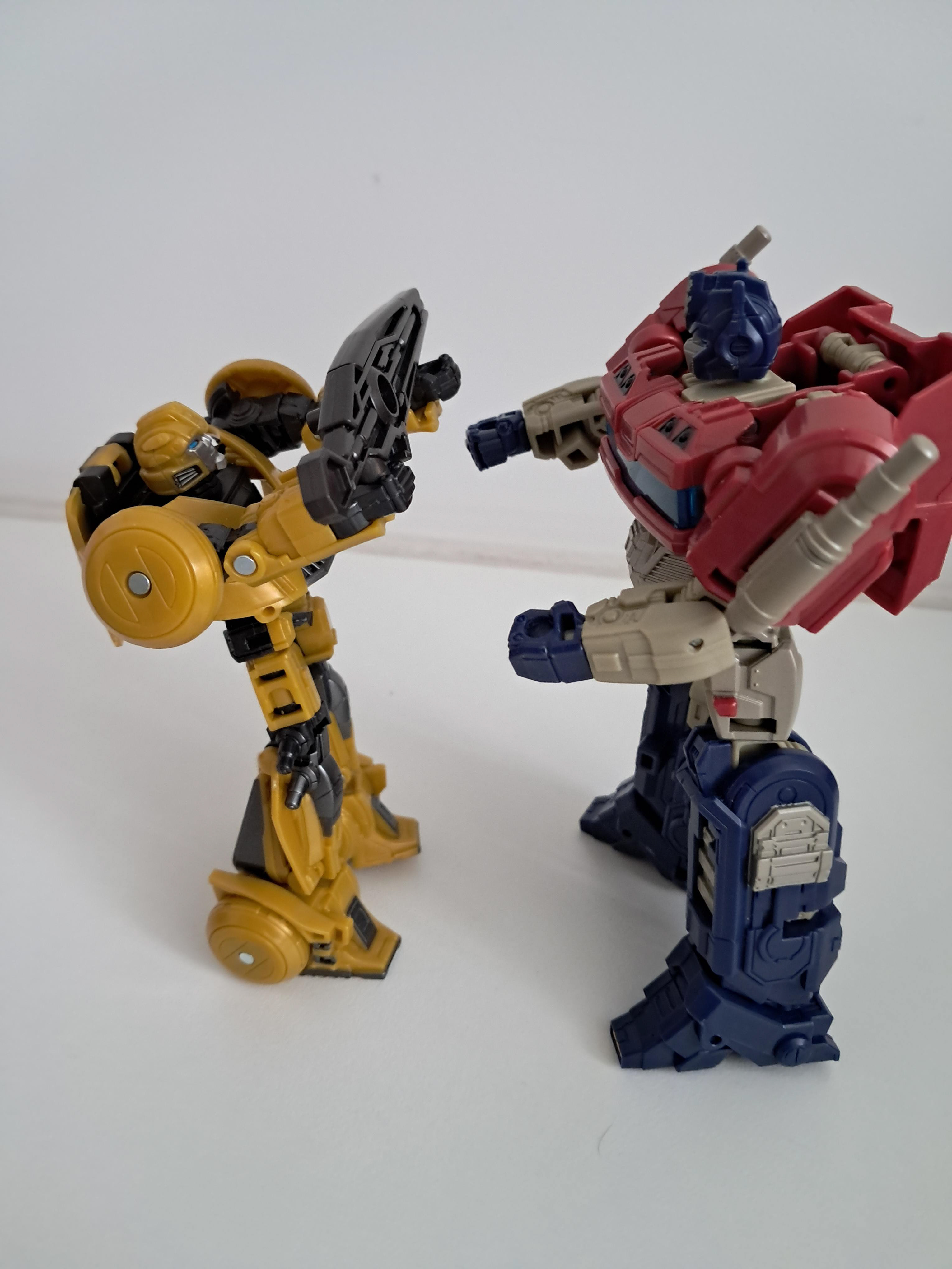 Zoals TFone Optimus Prime, waarbij ik altijd al vond dat hij een geweer nodig had. Het is heel fijn dat de designers aan dit soort kleine dingen denken, dat het ene figuur helpt om het andere beter te worden. Bumblebee mag dan wel een wat kleiner figuur zijn, je merkt gewoon dat ze hem heel veel bang voor je buck hebben gegeven.