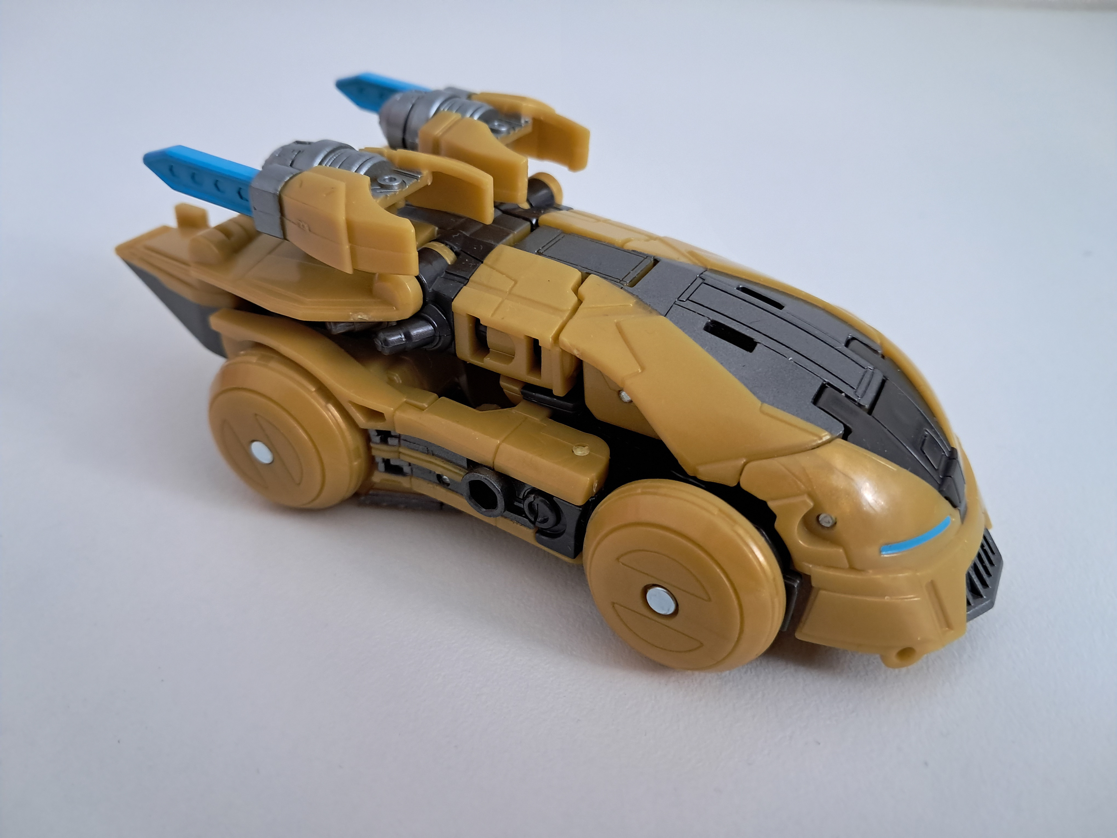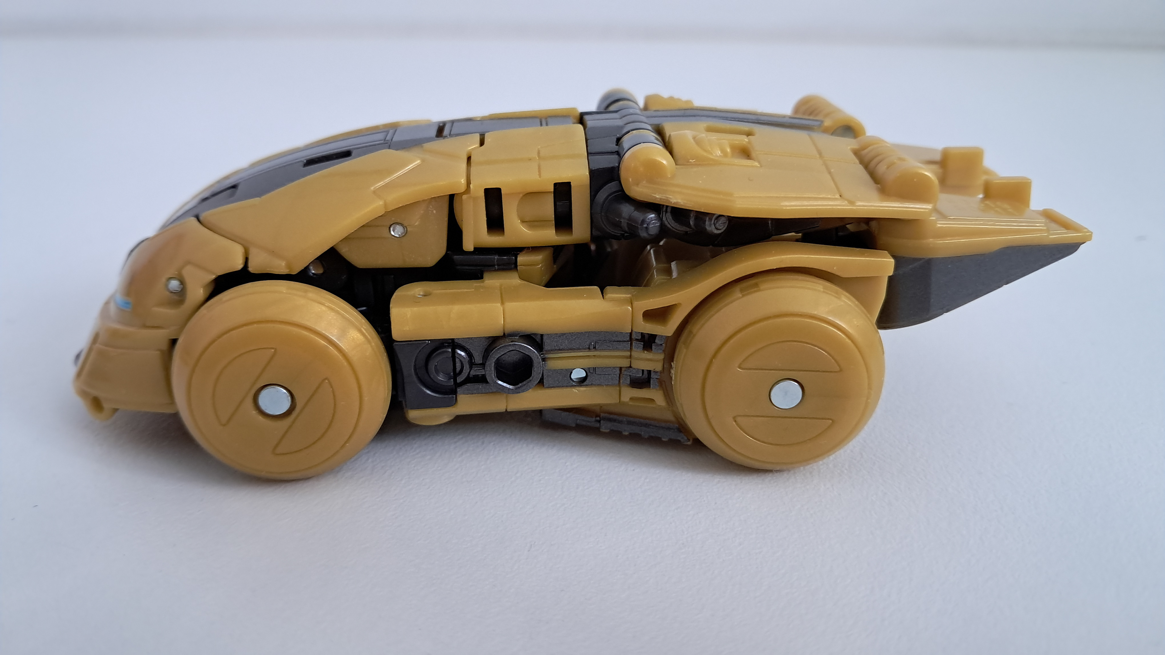 De transformatie is eenvoudig maar simpelweg heel strak. Zoals ik al zei bestaat deze Bumblebee uit zijn alt-mode onderdelen. En uiteindelijk wordt hij dus ook een superstrak strijkijzer autootje, zonder dat je met allemaal panelen zit die je in elkaar moet masseren.