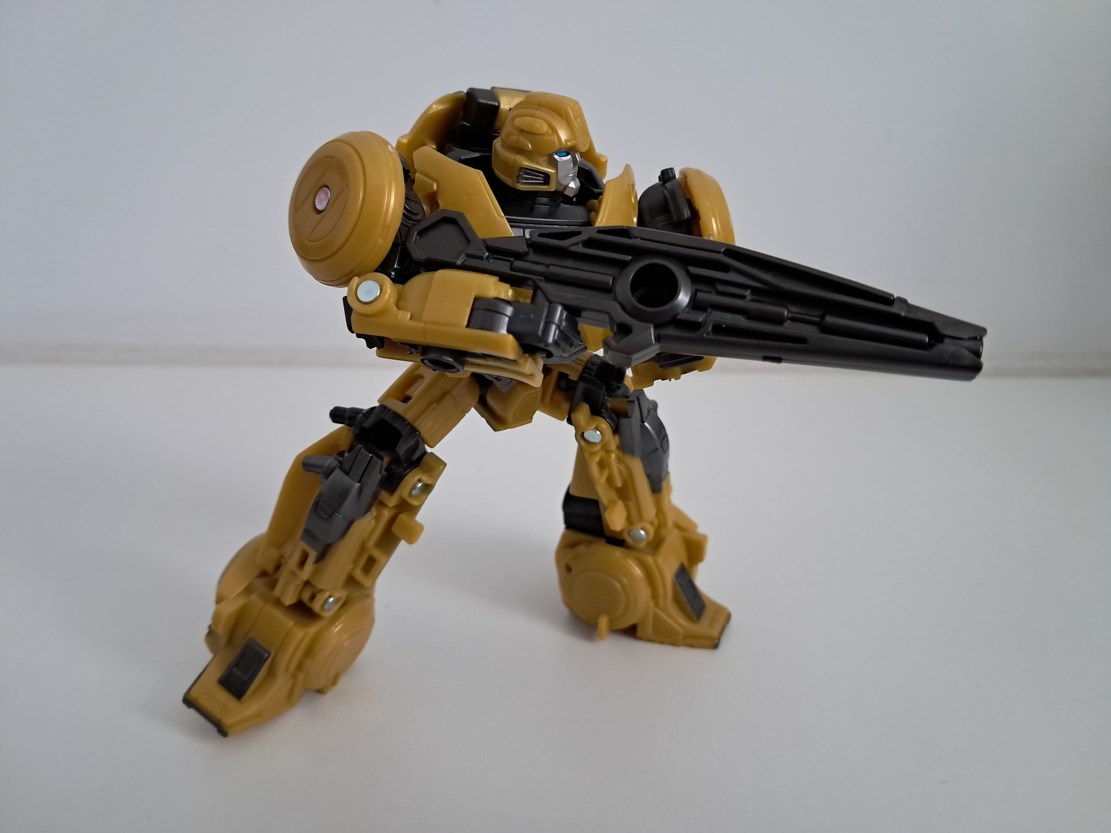 Wat ik wel mis is een teentje dat op en neer kan, met die enorme voeten, maar deze Bumblebee geeft je dan wel een heel groot geweer er bij. Een geweer dat Bumblebee eigenlijk niet gebruikte in de film, maar veel karakters wel. Mocht je toch een klubje TFone karakters inmiddels verzameld hebben, dan kunnen die er goed gebruik van maken.