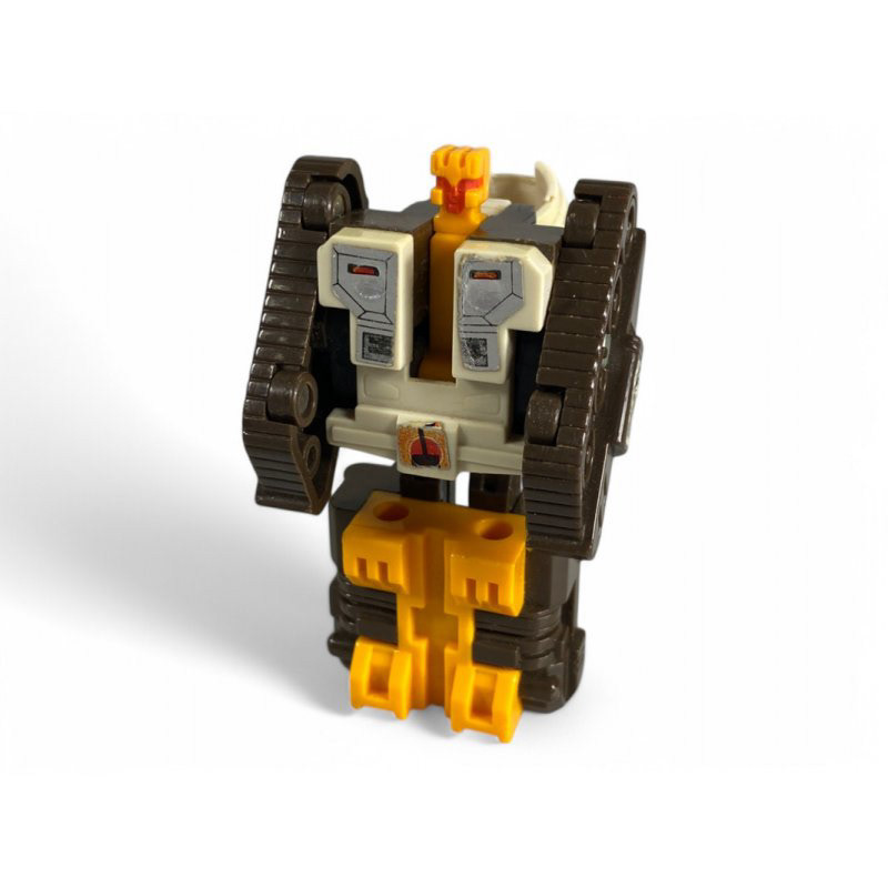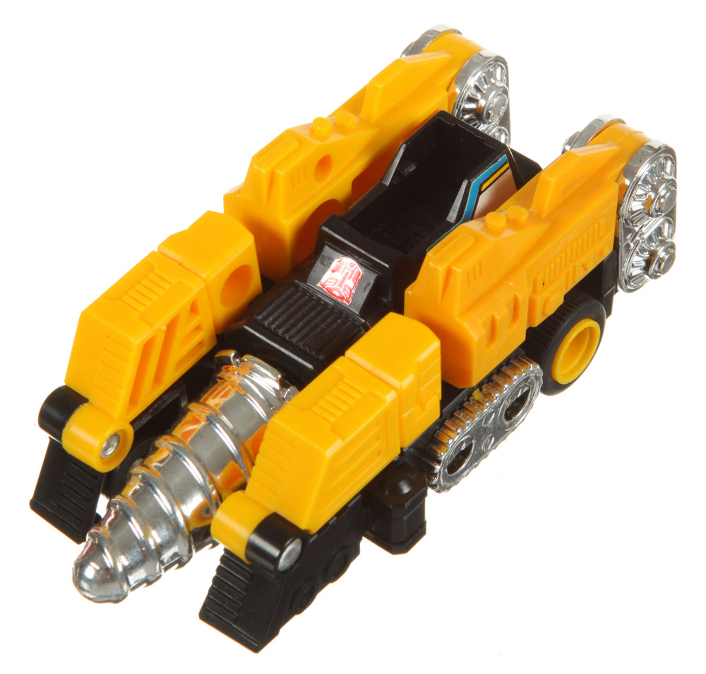 Blijkbaar moet je voor goede drilltanks vooral bij de combiners zijn, want Nosecone doet heel goed zijn best. Dit bulky mannetje, die om één of andere reden mij heel erg zin geeft in mosterd weet ondanks dat hij zoveel hetzelfde doet als Drillhorn het toch veel beter te doen. Hij weet dat gekke handjes onder rupsbanden er niet uitzien, dus hij probeert het niet eens. En hij weet zijn borstkast netjes hoog te houden, ondanks de brievenbusgleuf in het midden.