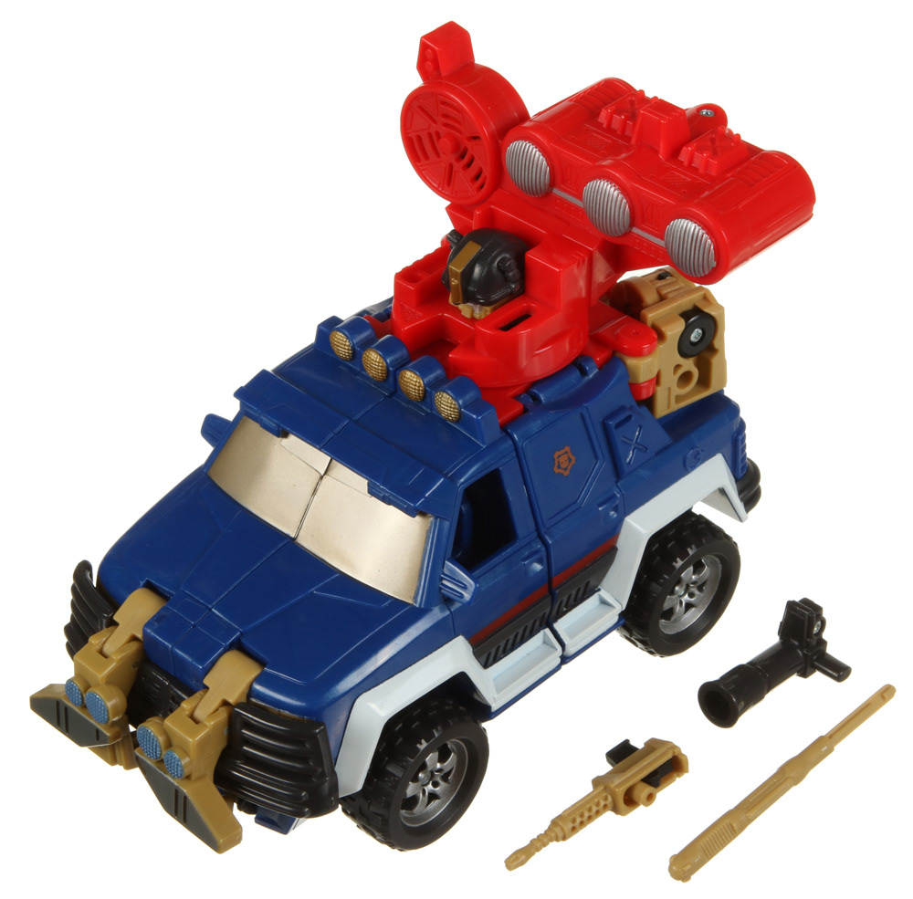 Zoals jullie hier kunnen zien bestond Ironhide zijn transformatie er uit dat hij zich verstopte tussen alle random bullshit op het dak van zijn alt-mode, en dan maar druk bezig was zijn motorkap te bestuderen in de hoop dat we niet doorhadden DAT WE CONSTANT ZIJN GEZICHT MOESTEN ZIEN! En waarom moesten we dan constant zijn gezicht zien? Zodat hij MET KICKER KON PRATEN! Al zijn eigenwaarde als Transformer opgeofferd om met Kicker te praten. En dat terwijl de toy toch veel beter z'n best doet om die kop een beetje uit het zicht te onttrekken.