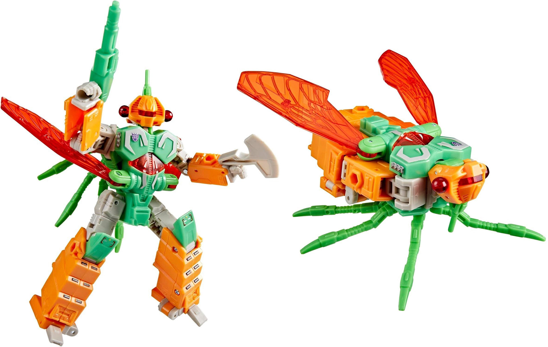 Zijn hele hoofd transformatie bestaat er uit dat hij enkel zijn nek strekt en naar beneden kijkt. Dat was het. Het is op z'n zachts gezegd een beetje minimale poging. Moeten we nu denken dat zijn visor de insectenmond is? Dat zou nogal stom zijn omdat Venim een cicade wordt. Een insect DIE GEEN MOND HEEFT! Cicades moeten het doen met een rietje in plaats daarvan. En dankzij de EU dus tegenwoordig met die papieren gevallen die al zacht en papperig worden na 2x zuigen. En het stomme is nog, dat bij de G1 versie Venom veel beter zijn best deed zijn kletskop te verstoppen, door in het hoofd zelf een schanier te zetten in plaats van in de nek.