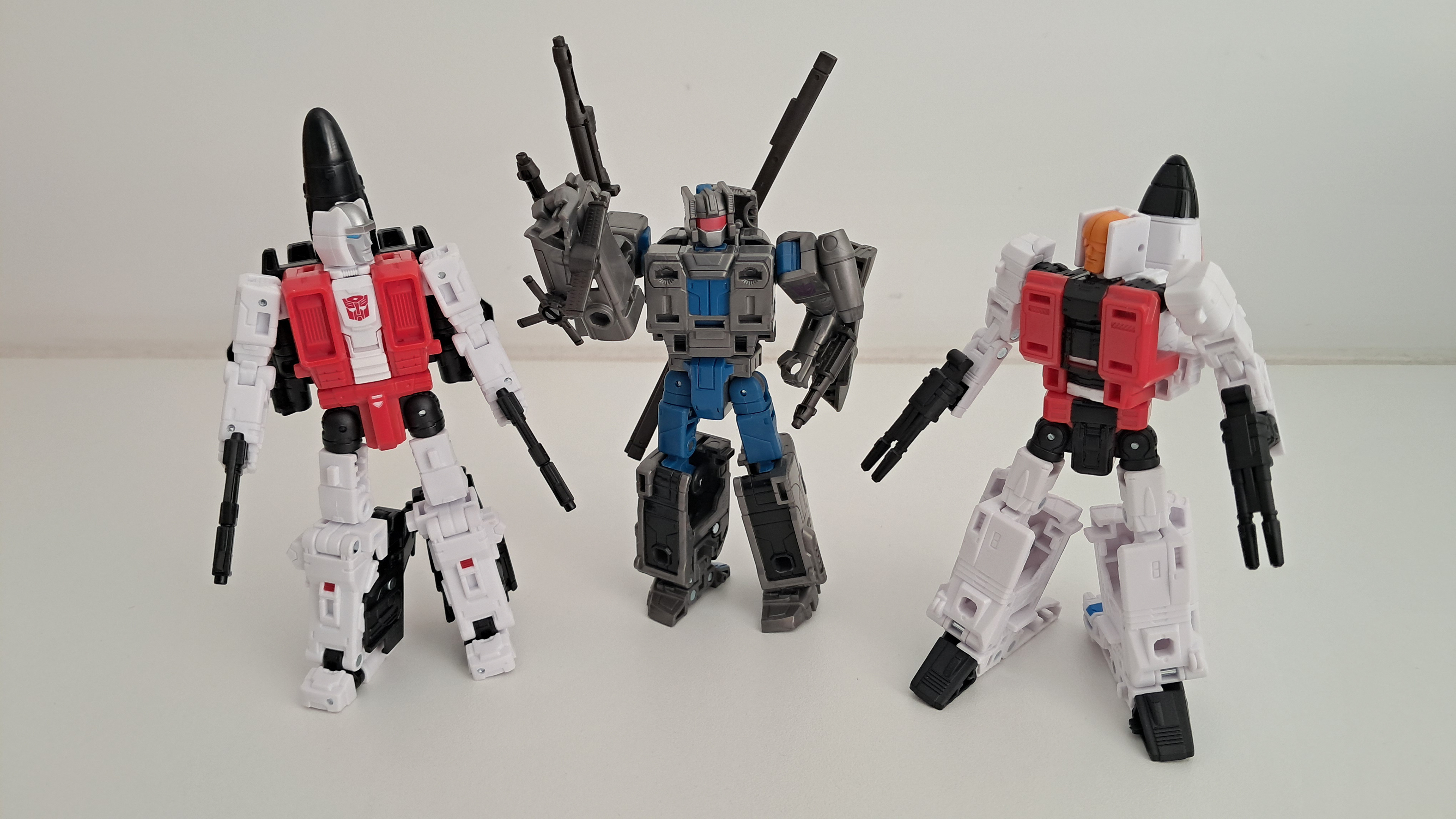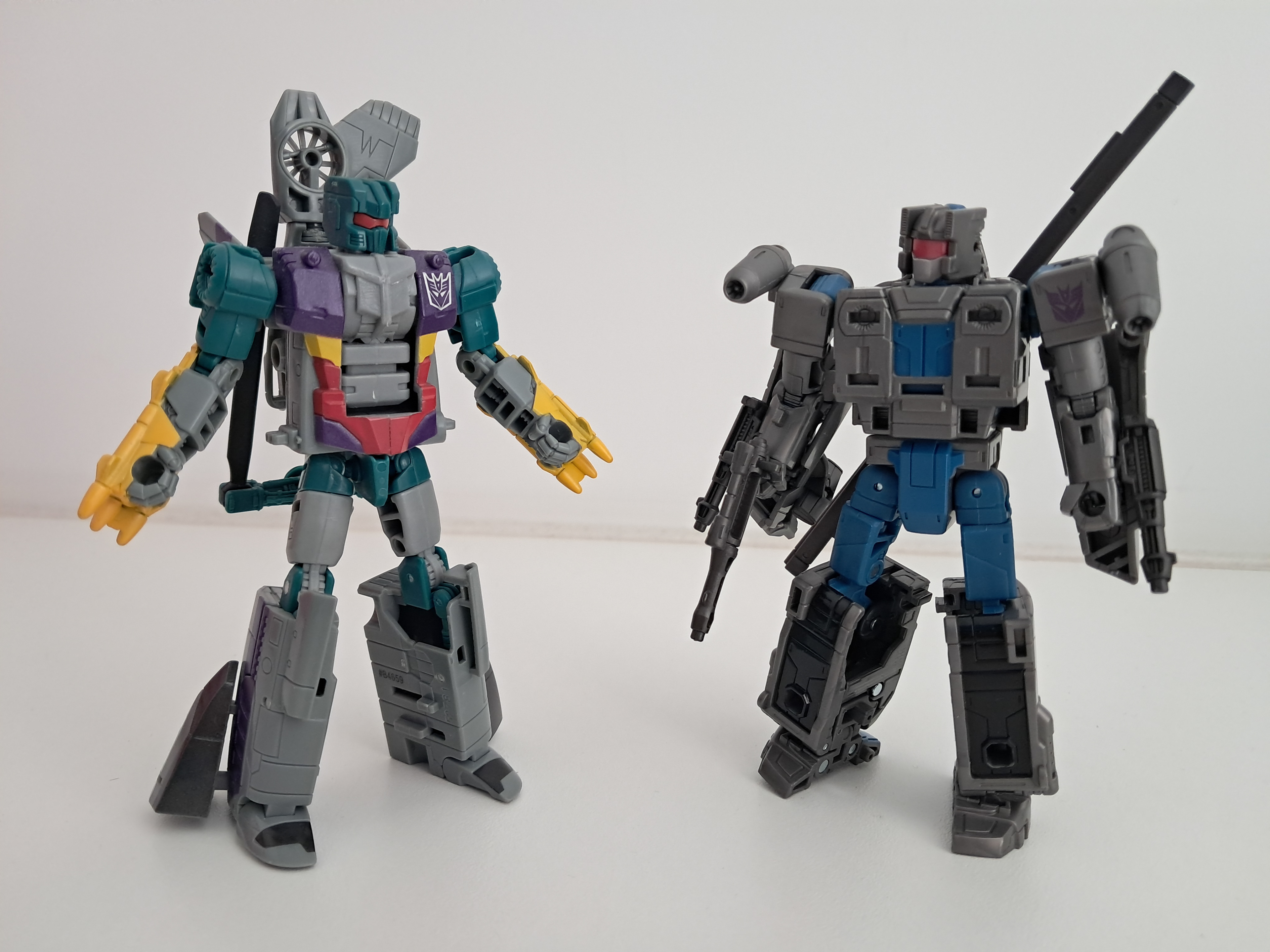 Het is dat ik hem nu tussen Slingshot en Air Raid heb gezet voor deze foto, want anders had ik beweerd dat Vortex wat groter is. Hij is van hetzelfde formaat, terwijl hij voor mijn gevoel wat forser is. Misschien is het zijn brede torso door de flinke schouders of de wieken die zijn profiel groter maken.