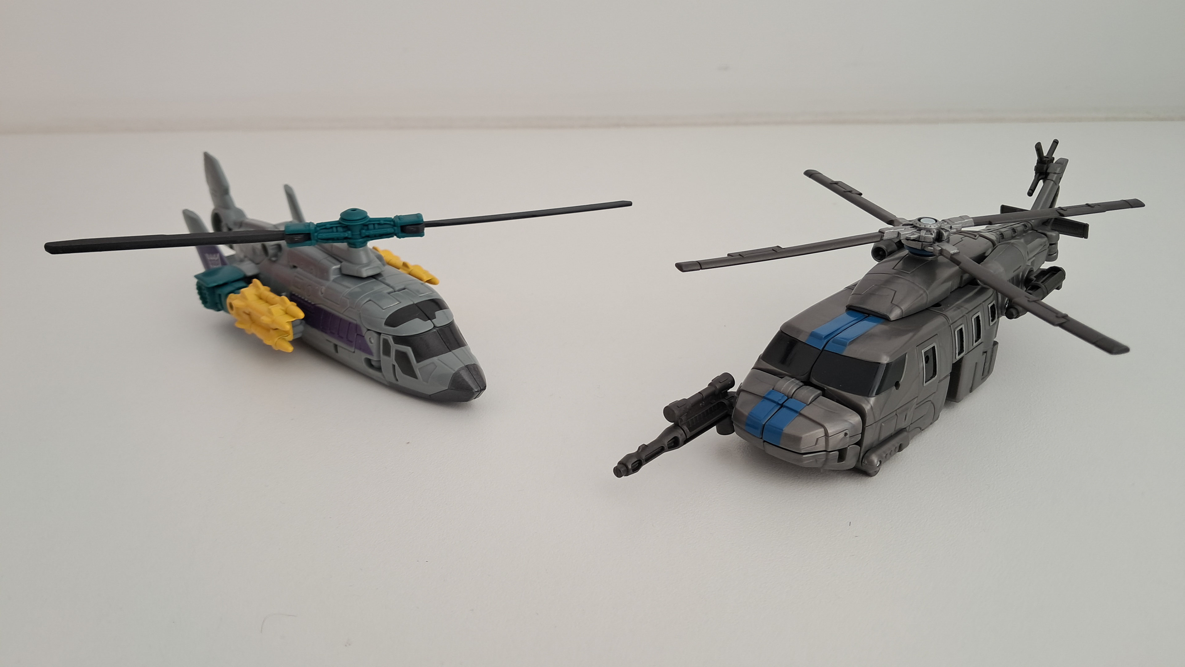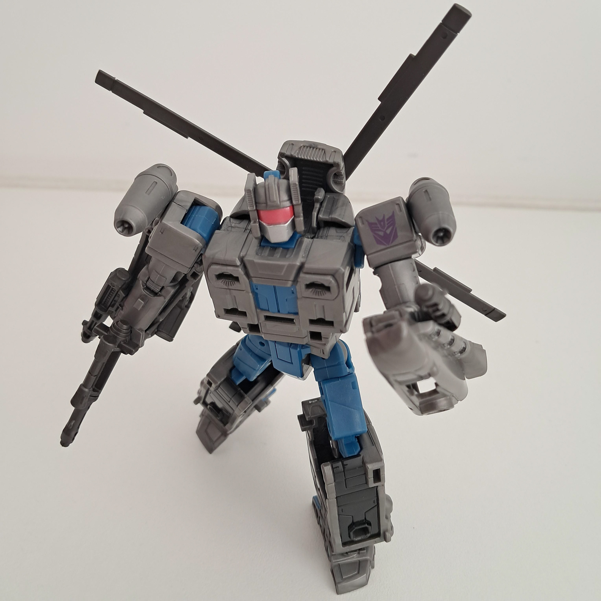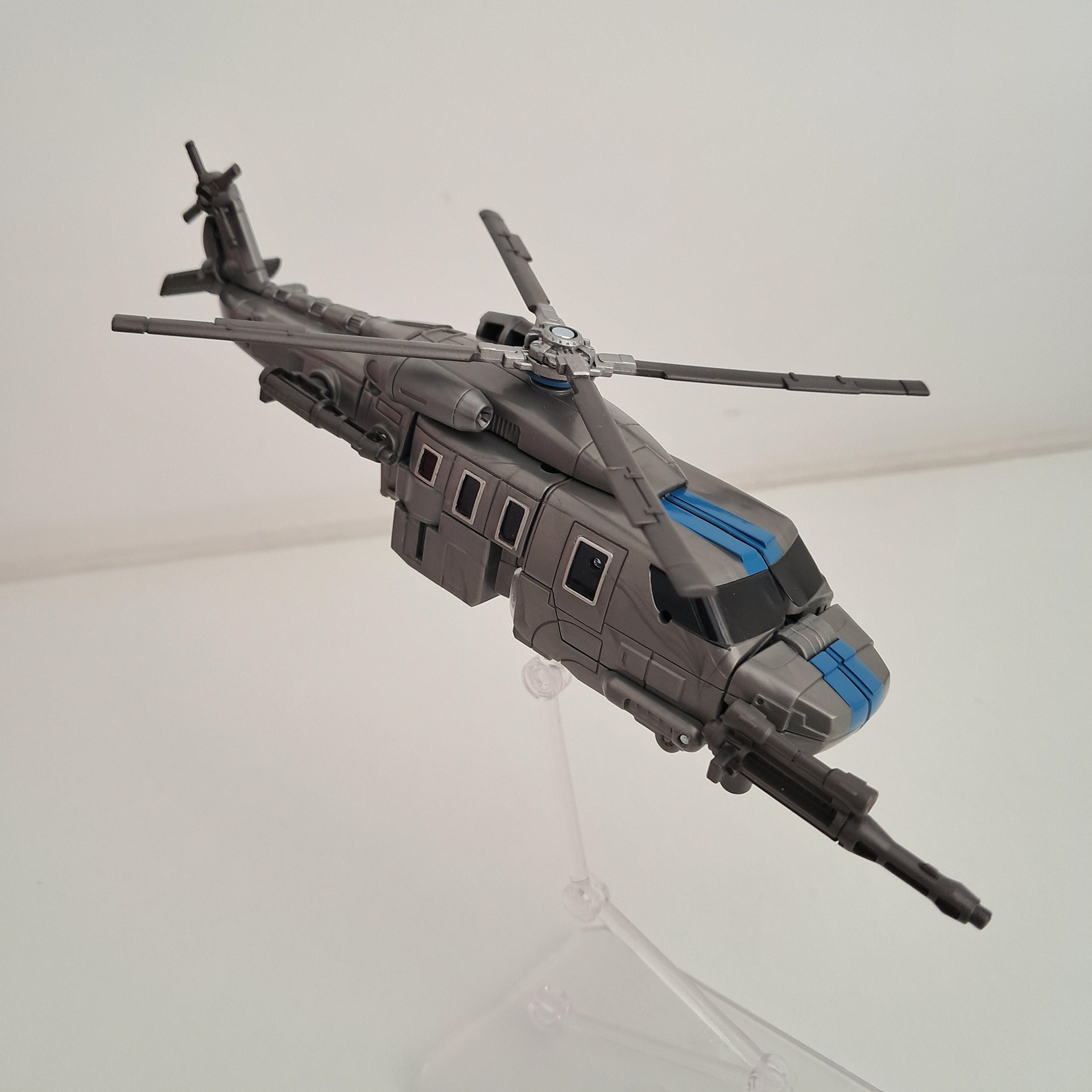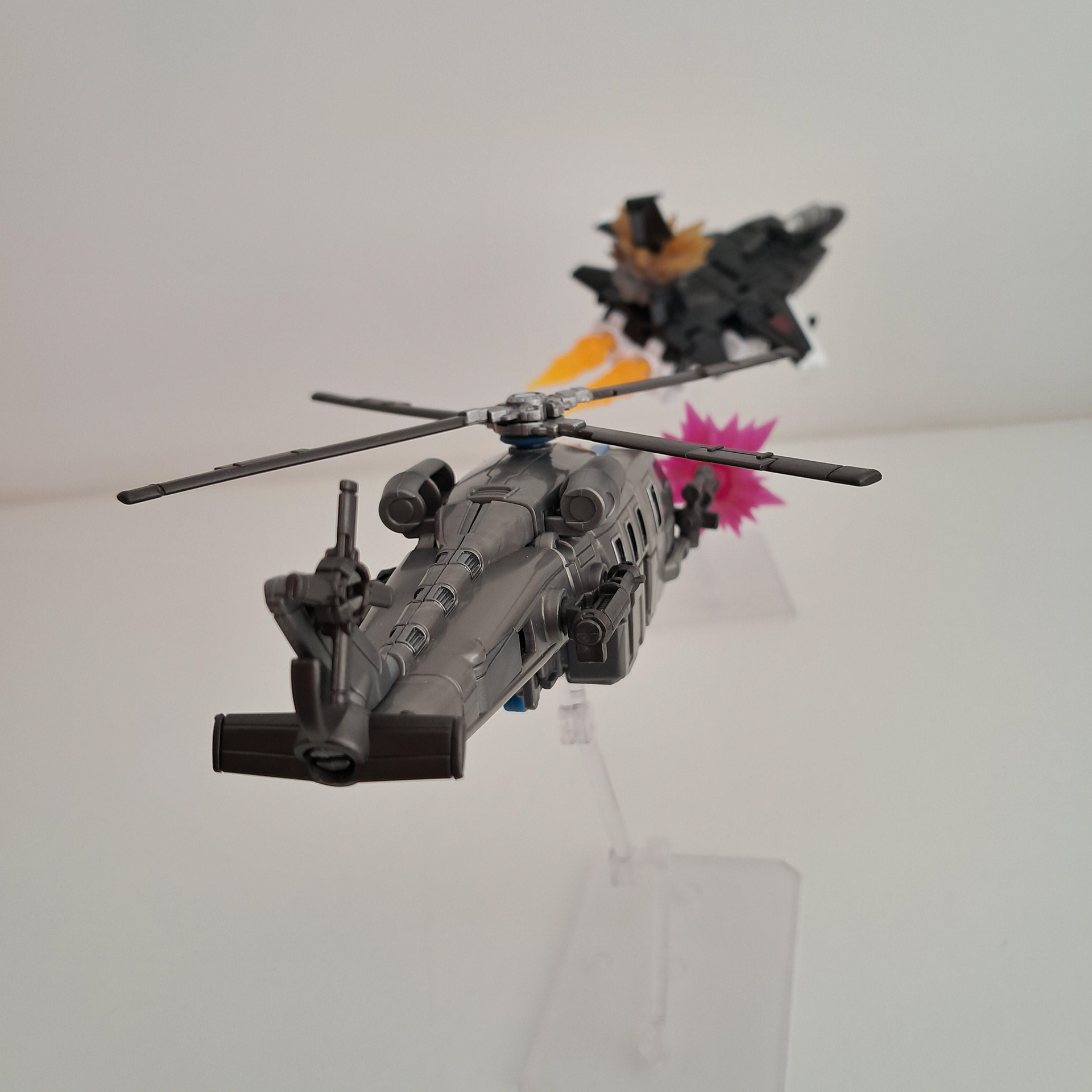 In ieder geval voelt hij veel meer als een militaire helicopter dan de Combiner Wars versie. Dat is meer een passagiervoertuig met idioot veel raketten er naast. Age of the Primes Vortex voelt een stuk forser en robuster. Al zit er wel een domme holte halverwege voor zijn torso, alsof ze een stuk uit de helicopter onderweg zijn vergeten.