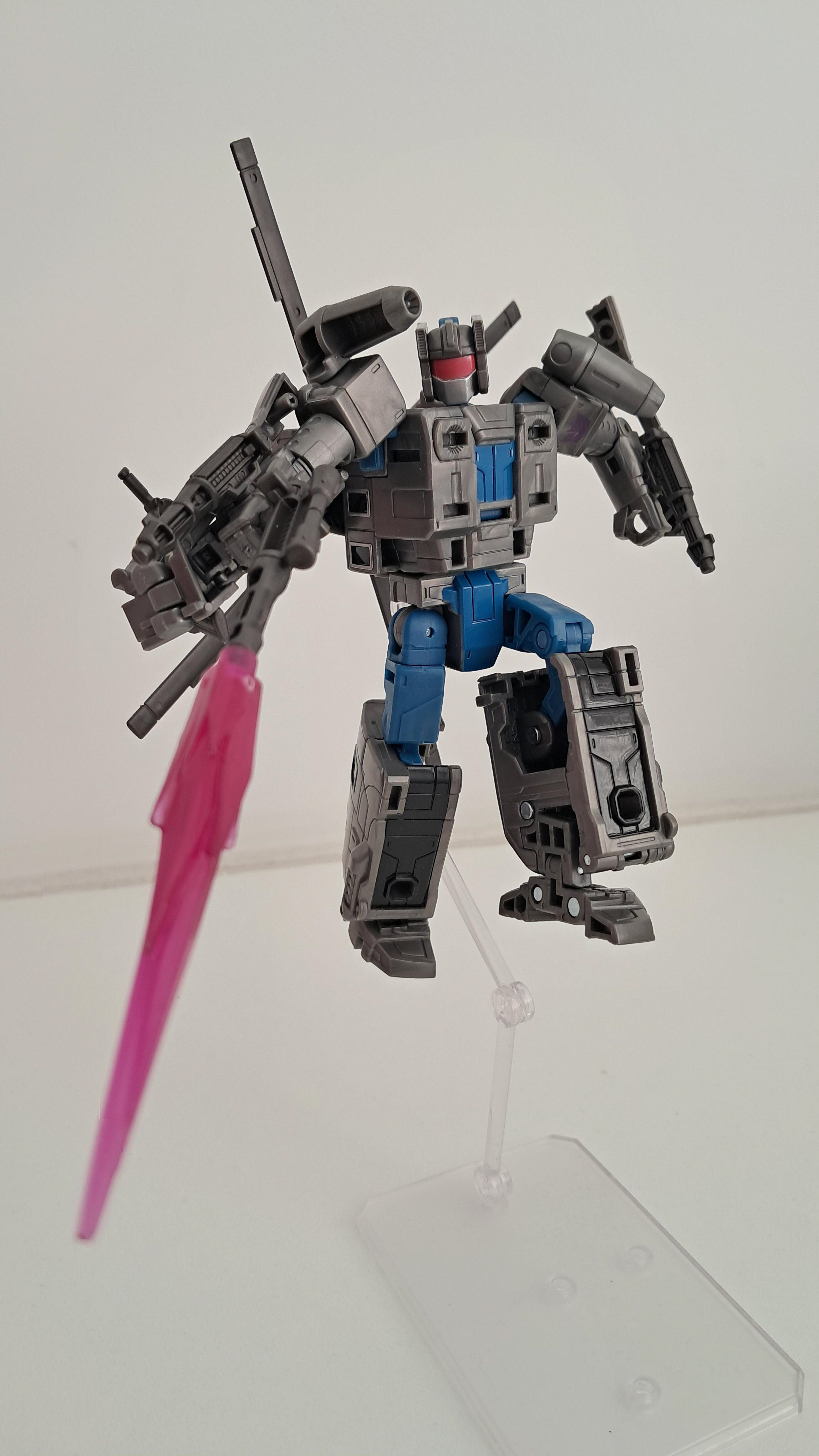 Maar omdat de action stand holte verdwijnt bij de transformatie is het dan wel weer fijn dat je die holtes kan gebruiken voor een action stand klem. Zeker met de metalic glans van dit plastic wat mooi de schaduwen reflecteert voelt hij erg premium. En dat is ook dit hele figuur. Ik heb er heel tevreden mee. Hasbro is echt aan het koken met de huidige combiners en ik denk dat de Combaticons dan ook best een hoogtepuntje gaan worden. Daarom dan ook een 8 voor hem.