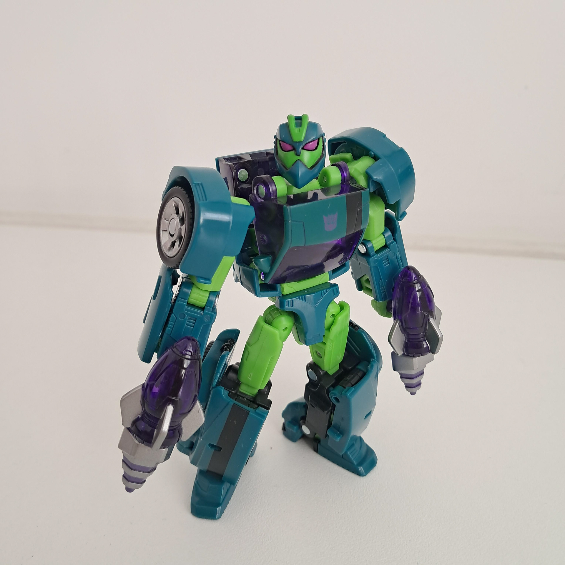 Ik ben in ieder geval een stuk blijer met dit figuur dan ik was met SS’86 Bumblebee. Hij voelt beter, de kleuren werken meer met elkaar en ik krijg veel meer het gevoel dat ik waar voor mijn centen krijg. Ik zou er ook niks tegen op hebben als deze mold wordt gebruikt om er wat Throttlebots van te maken. Een 7,5 dus.