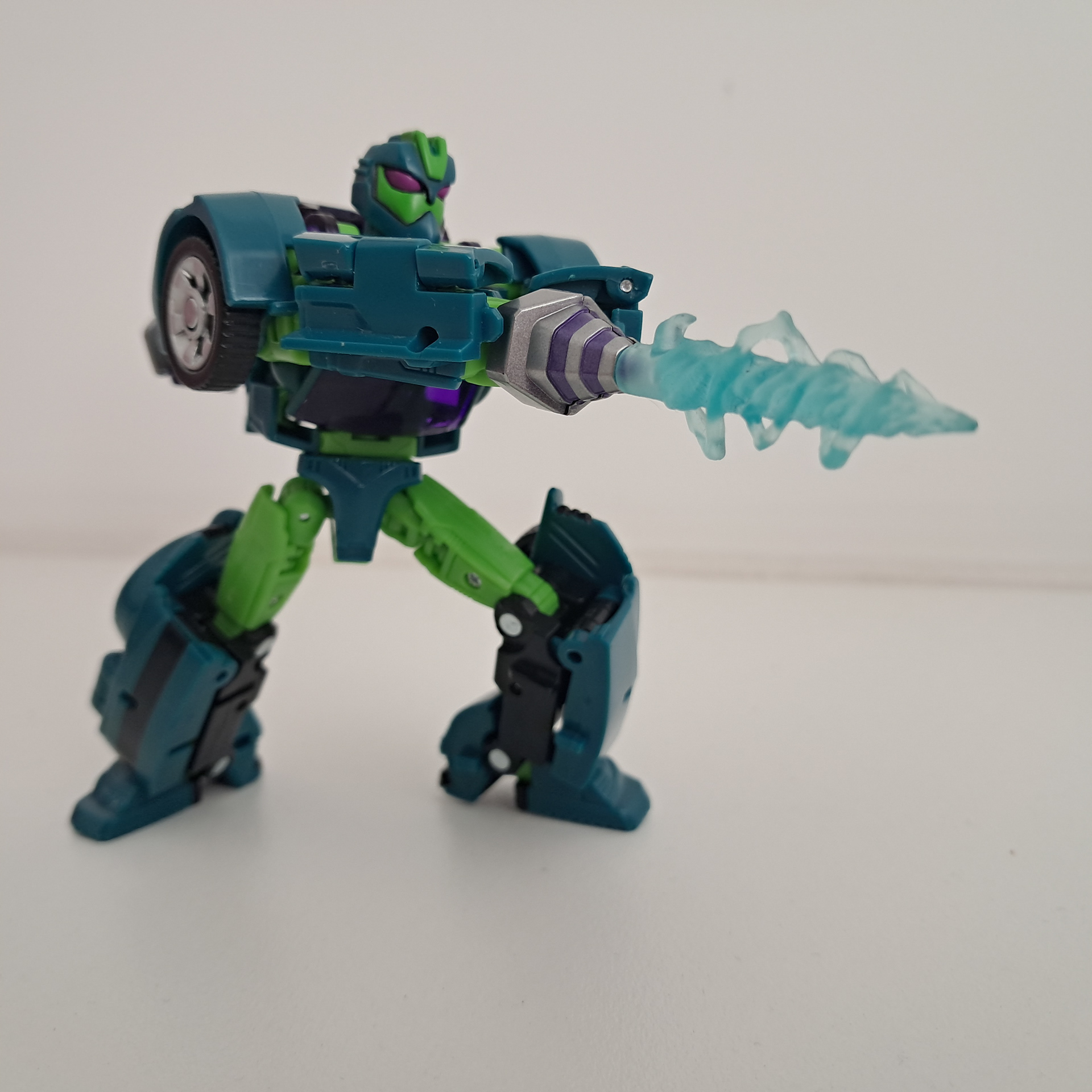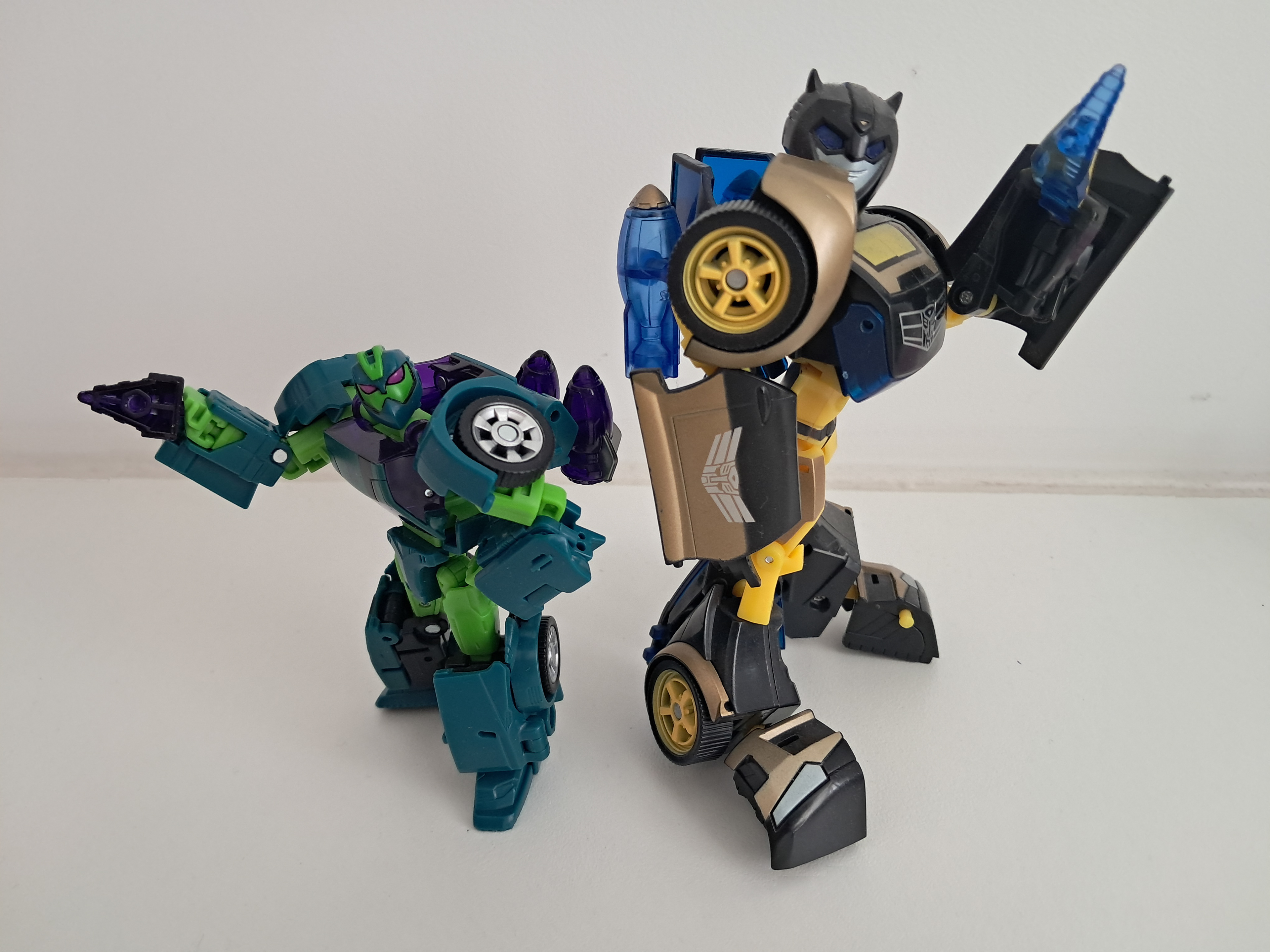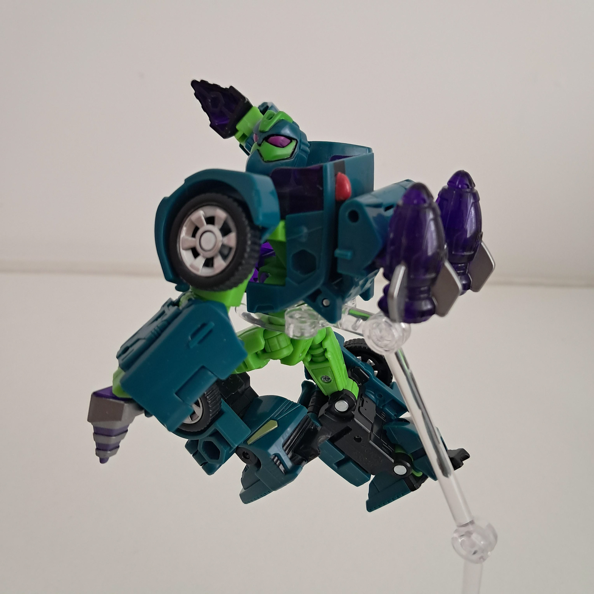 Zijn design voelt in ieder best veel animated, voor een Legacy figuur. In ieder geval meer wat ik had bij Animated Legacy Bumblebee, die naar mijn mening teveel last had van ongekleurd transparant plastic en verkeerde proporties. Wasp heeft dat veel minder omdat… nou ja, hij al in de serie een hoopje ellende was. Wasp liep vaak voorovergebogen en ingedoken, en dat werkt meer met dit design.