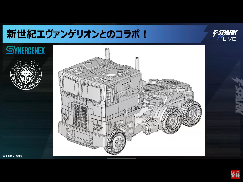 Dan is er de Synergenex Evangelion x Transformers EVA Optimus Prime. Dit is eigenlijk gewoon Takara's Bumblebee Movie Leader Class Optimus Prime, een toy die Takara op eigen houtje maakte van Evansion Mode Optimus uit Age of Extinction. Die dus nu een repaint krijgt als de EVA-01 uit de animé Neon Genesis Evangelion. Met een speciaal berserk-mode gezichtje, een AT-field en een kruising tussen de speer van Longerius en een bijl. Gek genoeg geen plug met Shinji om je eigen 'GET IN THE GIANT ROBOT SHINJI!' -scene na te spelen.