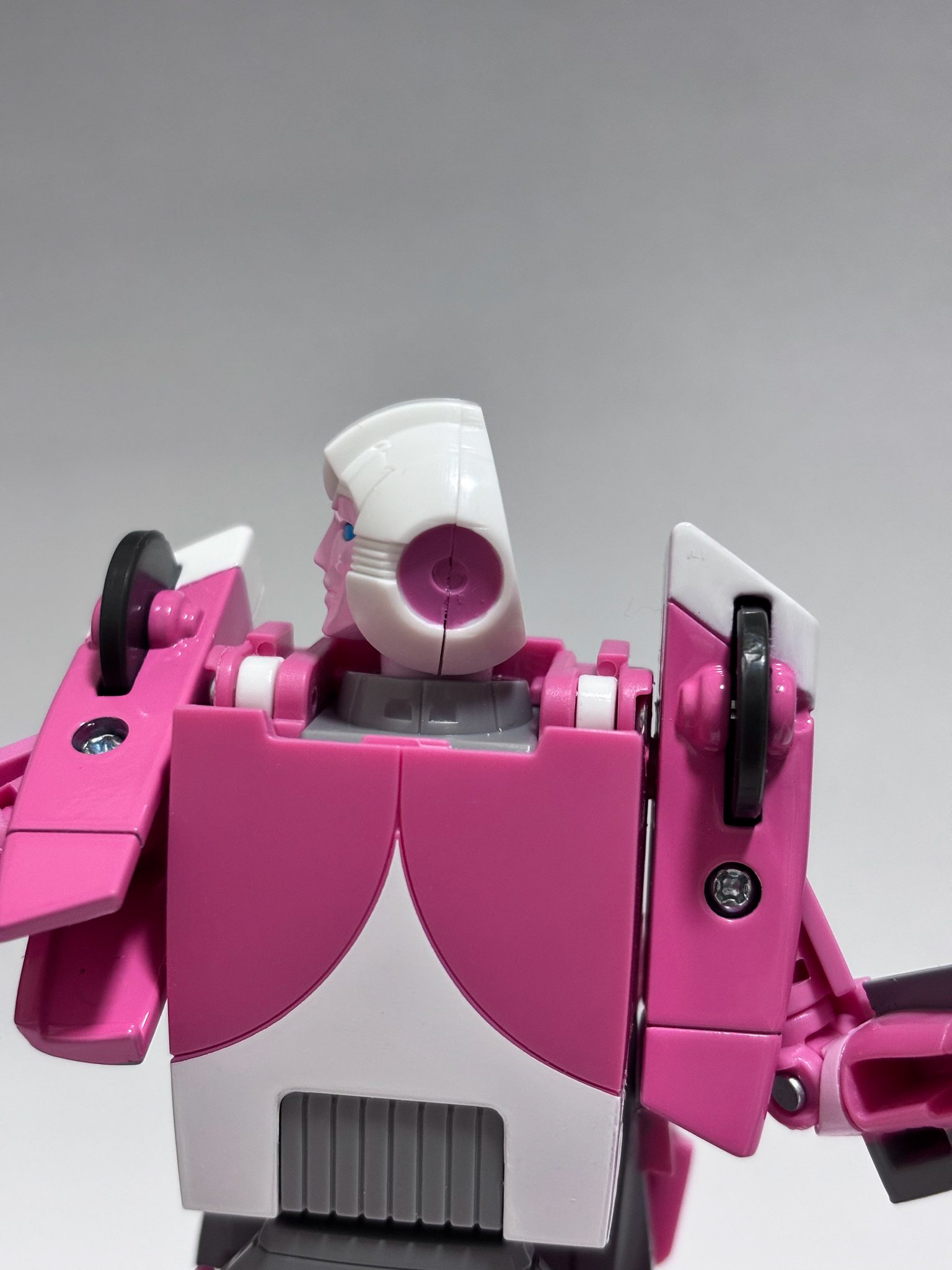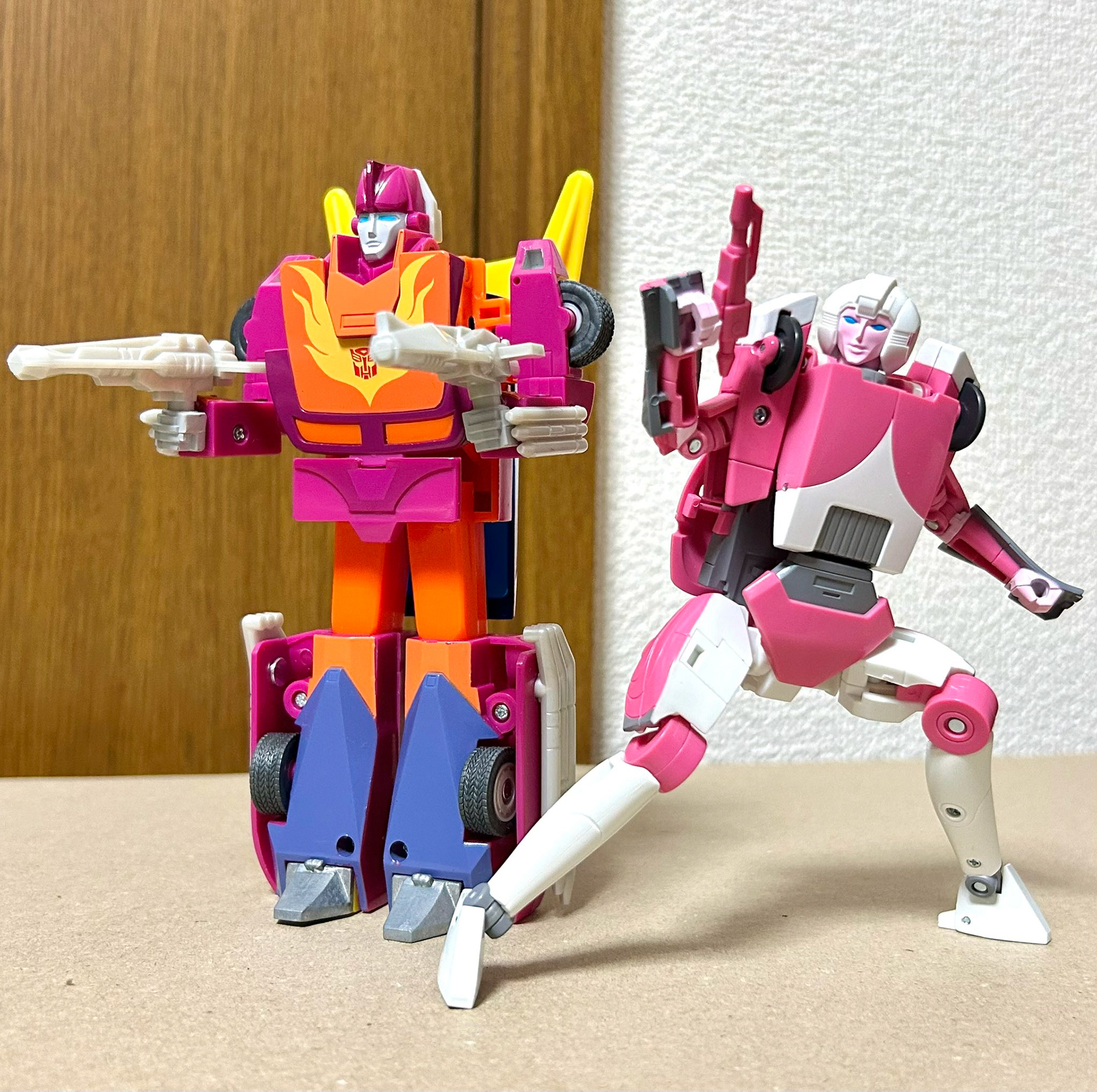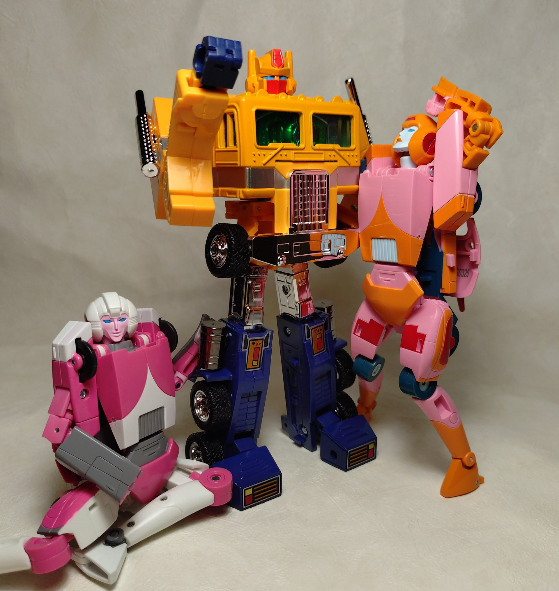 Er duiken inmiddels wat foto's op van Missing Ling Arcee. Zo kunnen we mooi zien dat ze best goed samen gaat met G1 Hot Rod en Rodimus, zeker qua alt-mode. En ze heeft een indrukwekkend aantal gewrichten, al mist ze zo te zien wel een middel gewricht. Wel valt op dat ze blijkbaar zonder helm van een motorfiets is afgevallen, want haar achterhoofd is wel erg plat, waarschijnlijk voor de Transformatie. Maar het ziet er wel naar uit dat we na een jaartje of 39 wachten we eindelijk eens een goed figuur van haar krijgen.